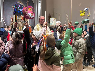 Am Sonntag, 9. November, feierten wir in unserer Pfarrei das traditionelle St. Martinsfest. Die Schülerinnen und Schüler der 5. und 6. Klasse haben gemeinsam mit ihren Religionslehrpersonen tagsüber das St. Martinsspiel einstudiert. Mit viel Engagement und Freude brachten sie die Geschichte des Heiligen Martins im Rahmen der Familienmesse um 18 Uhr in der Marienkirche zur Aufführung.