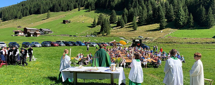 Am Sonntag, 24. August 2025, wird um 11.00 Uhr die traditionelle Alpmesse inmitten der herrlichen Davoser Berglandschaft auf der Alp Boden im Dischma gefeiert. Die Alpmesse wird von Dekan Susak und Vikar Niederberger zelebriert und musikalisch von den «Akkordeonfägern Davos» begleitet. Nach Erteilung des Alpsegens organisiert die Alpgemeinschaft der Altstätter Alp eine Festwirtschaft. Für das leibliche Wohl ist also bestens gesorgt. Der VBD Bus (Linie B312) fährt um 10.15 Uhr ab Bahnhof Dorf. Wer zur Alpmesse gemeinsam zu Fuss pilgern möchte, trifft sich um 09.00 Uhr bei der Duchli.