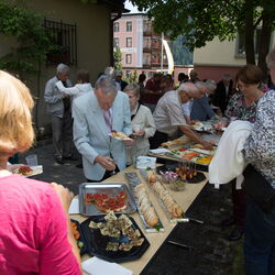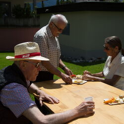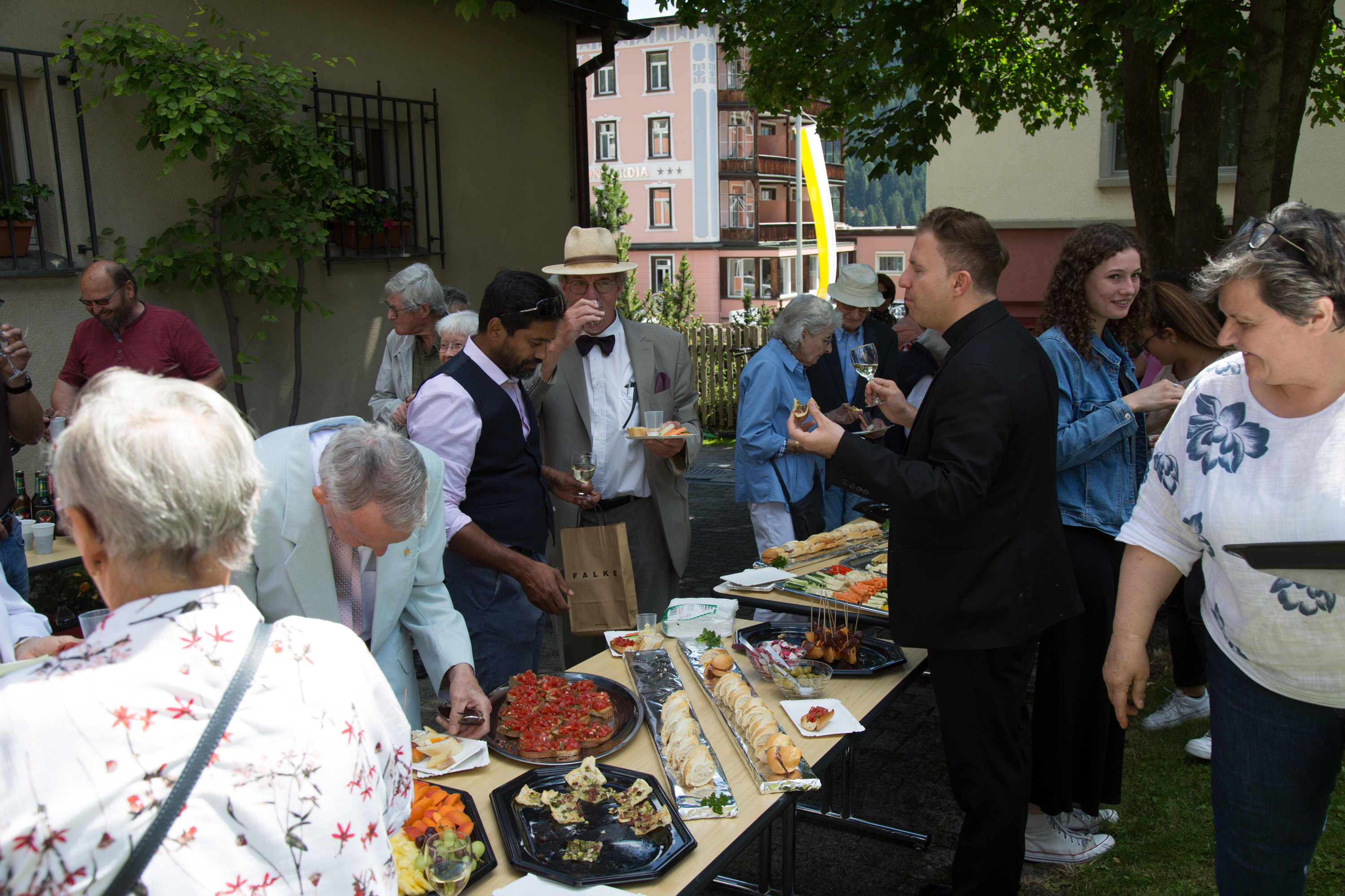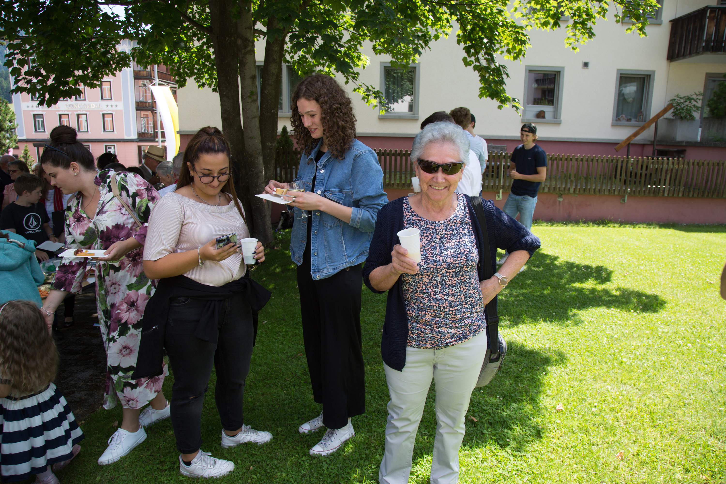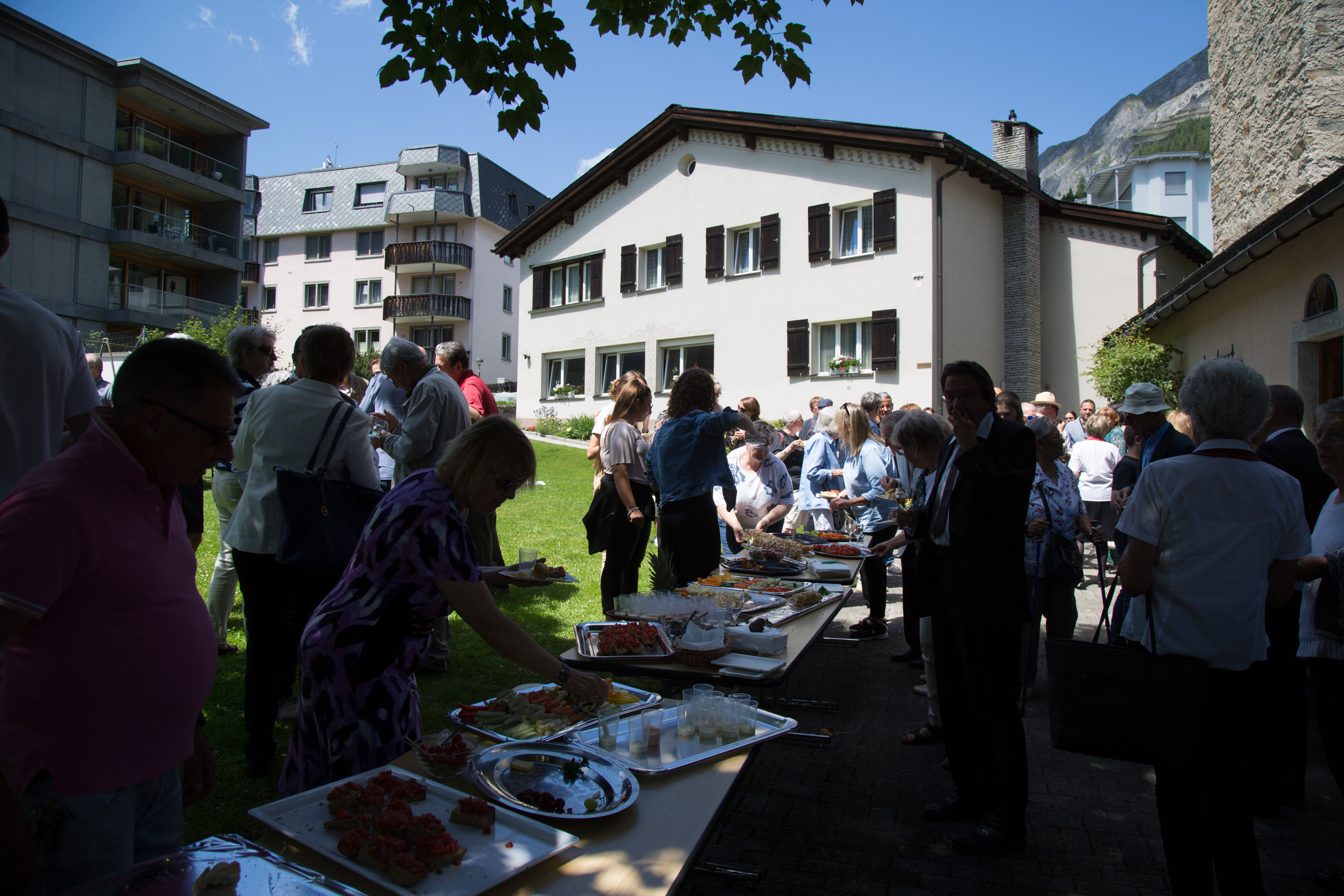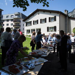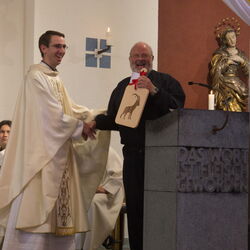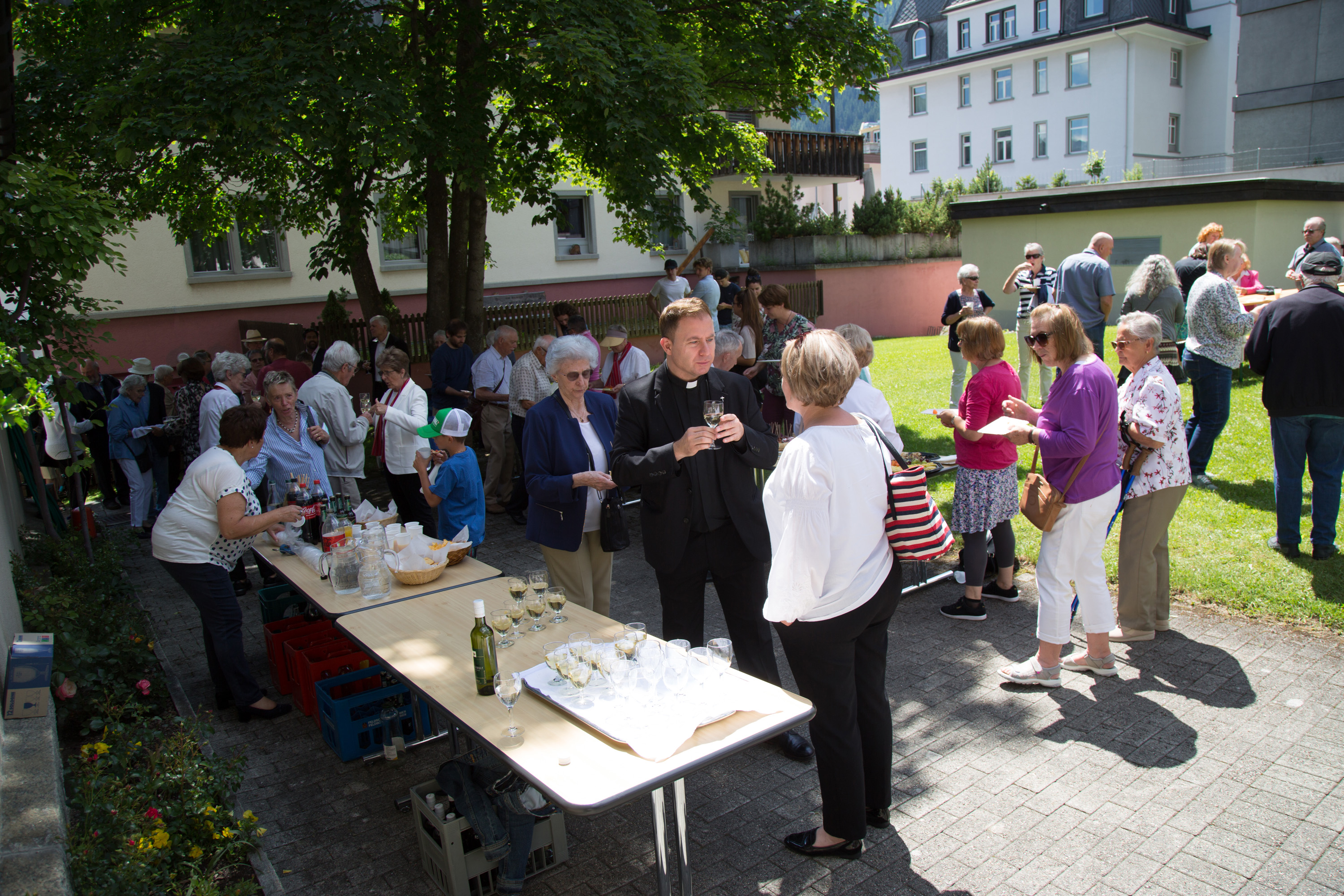 Vizepräsidentin Beate Rückert, Pfarreiratspräsident Simone Bonvissuto sowie Sozialdiakon Christian Pfeiffer von den reformierten Kirchgemeinden, drückten in ihren berührenden Grussworten ihre Dankbarkeit und Verbundenheit mit Pius Betschart aus. Der Kirchenchor umrahmte das Hochamt zum Patrozinium der Herz-Jesu-Kirche im Dorf unter der bewährten Leitung von Jürg Wasescha und Daniel Wioland an der Orgel, mit einer festlich dargebotenen lateinischen Messe. Als Dekan Susak zum Schluss treffende Dankworte des Abschieds fand, die sich im Lied «Bhüat di Gott, Pius» ausdrückten, wurde die Stimmung recht berührend. «Es wird nicht lange dauern, bis wir dich in Flims besuchen», meinte Susak, sichtlich gerührt. Mit einem grünen seidenbestickten Messgewand als Abschiedsgeschenk der Pfarrei, das dem neuen Pfarrer Pius Betschart unter grossem Applaus überreicht wurde, wurde deutlich, Priester kommen und gehen, Menschen kommen und gehen, aber einer bleibt: Jesus Christus. Nach dem Schlusssegen ging es zum reichhaltigen Apéro auf die Pfarrwiese, den Messmerin Ida Agnello und Hedy Oettgen mit Team vorbereiteten hatten. Ernst Niederberger, der sein Pastoraljahr mittlerweile erfolgreich abgeschlossen hat, wird zunächst als Diakon und im nächsten Jahr als Neupriester, die Stelle als Davoser Vikar übernehmen. Bei bestem Wetter und einer herzlichen Stimmung ging ein denkwürdiger Tag im Leben der Davoser Pfarrei zu Ende.