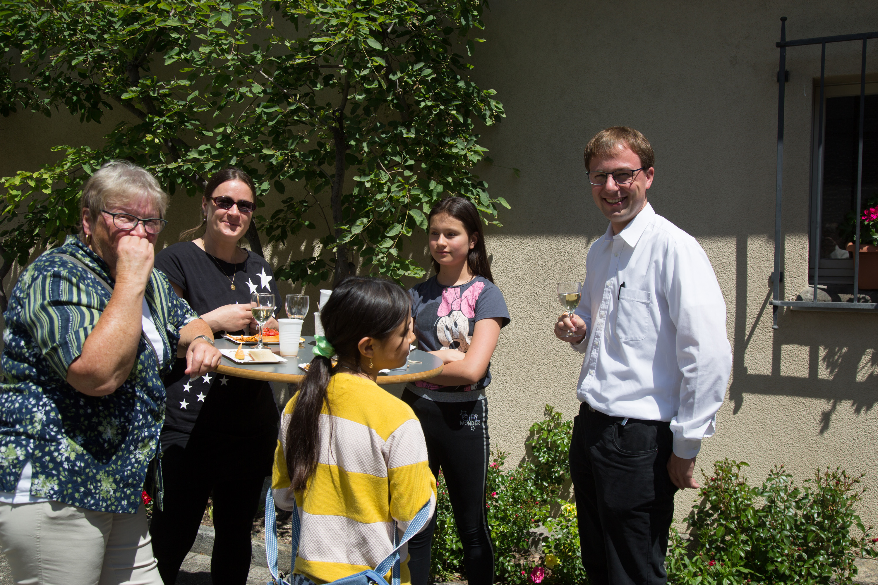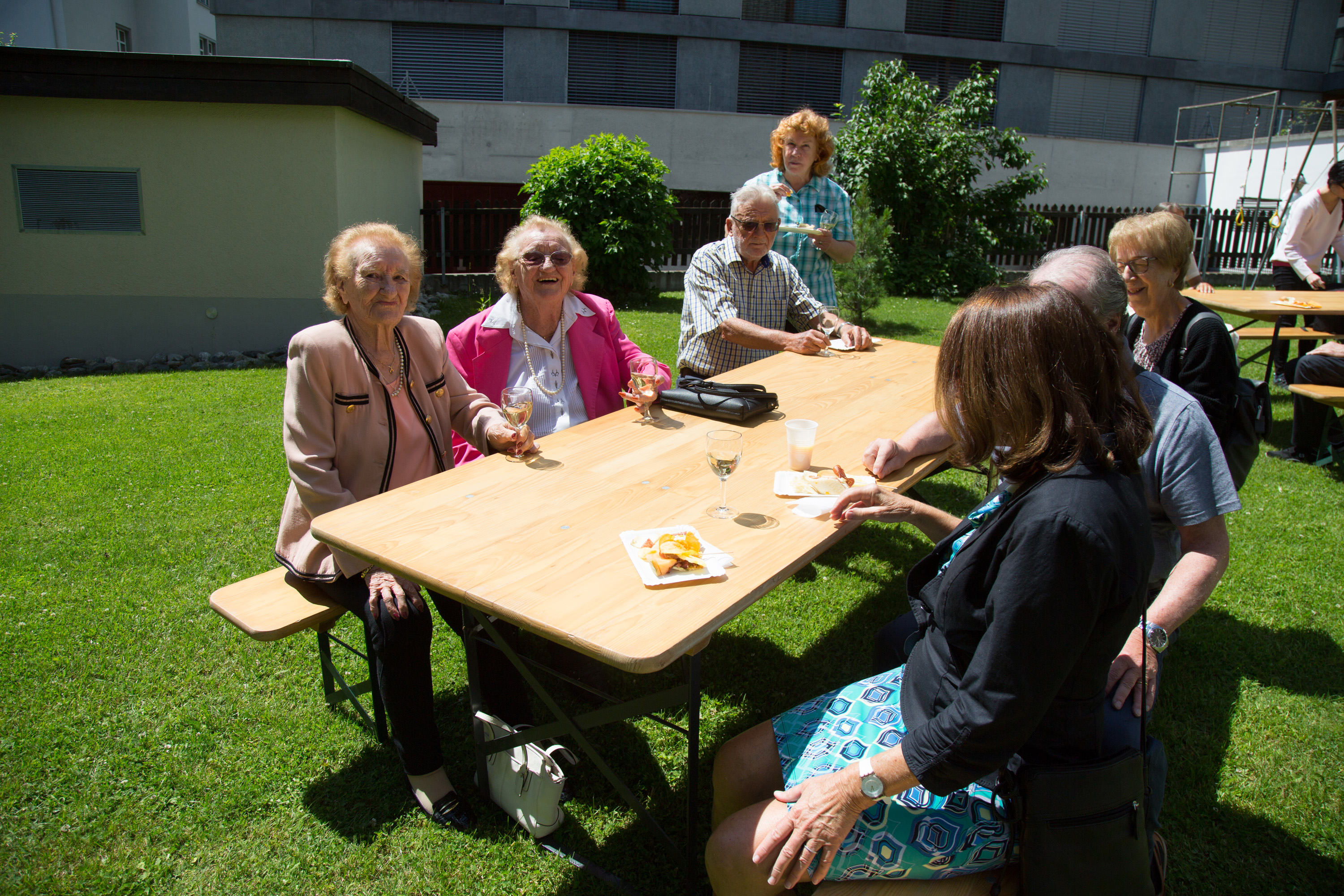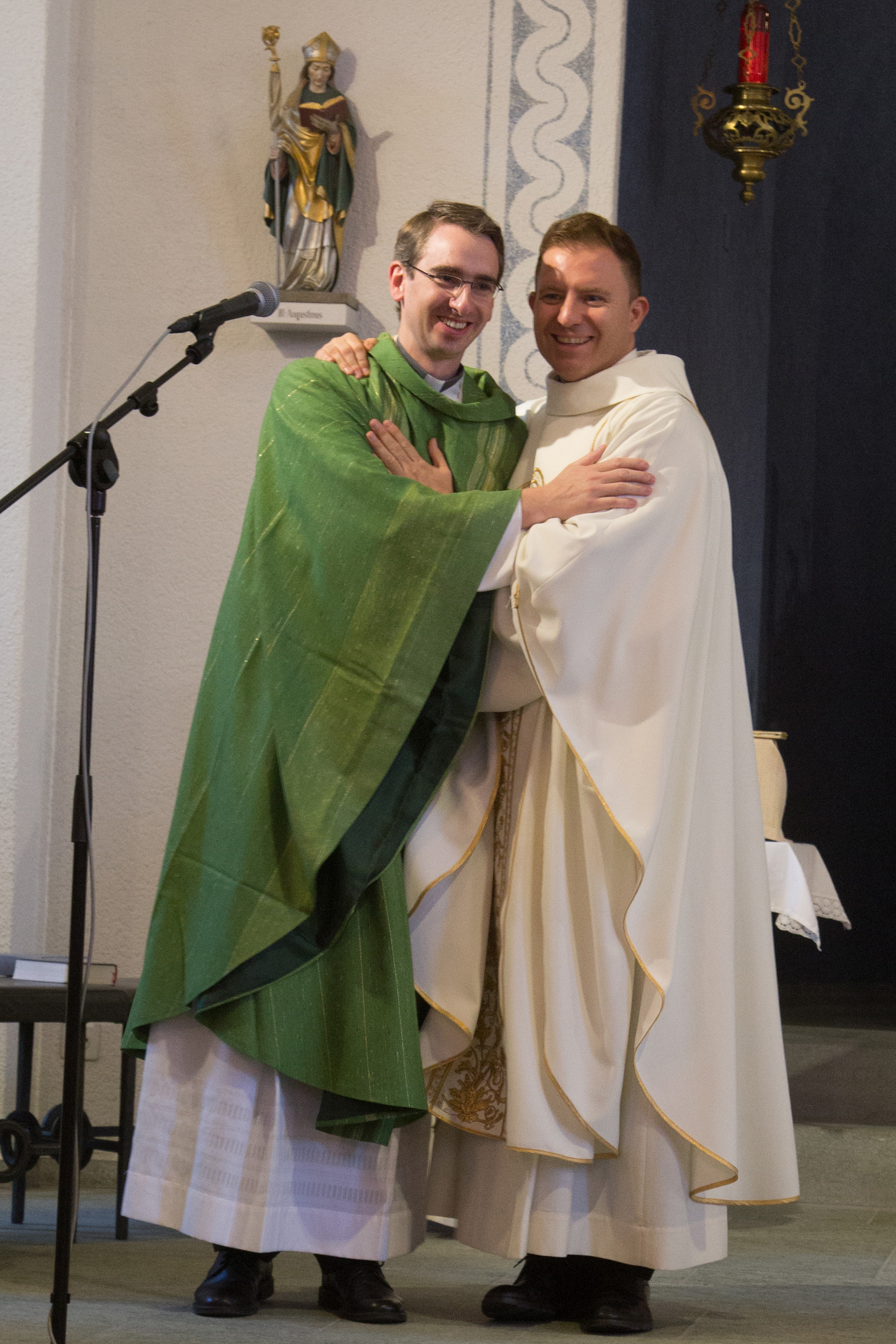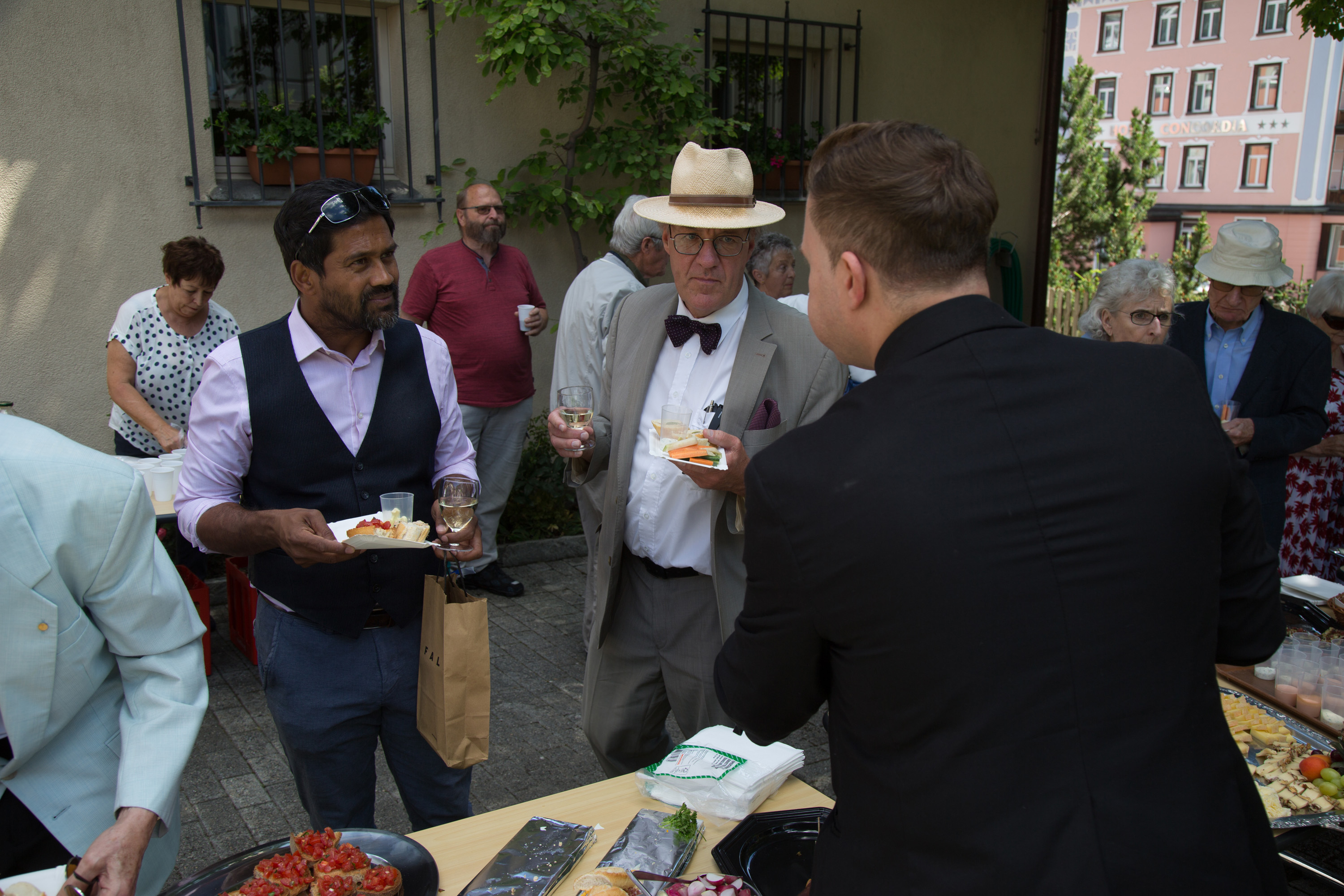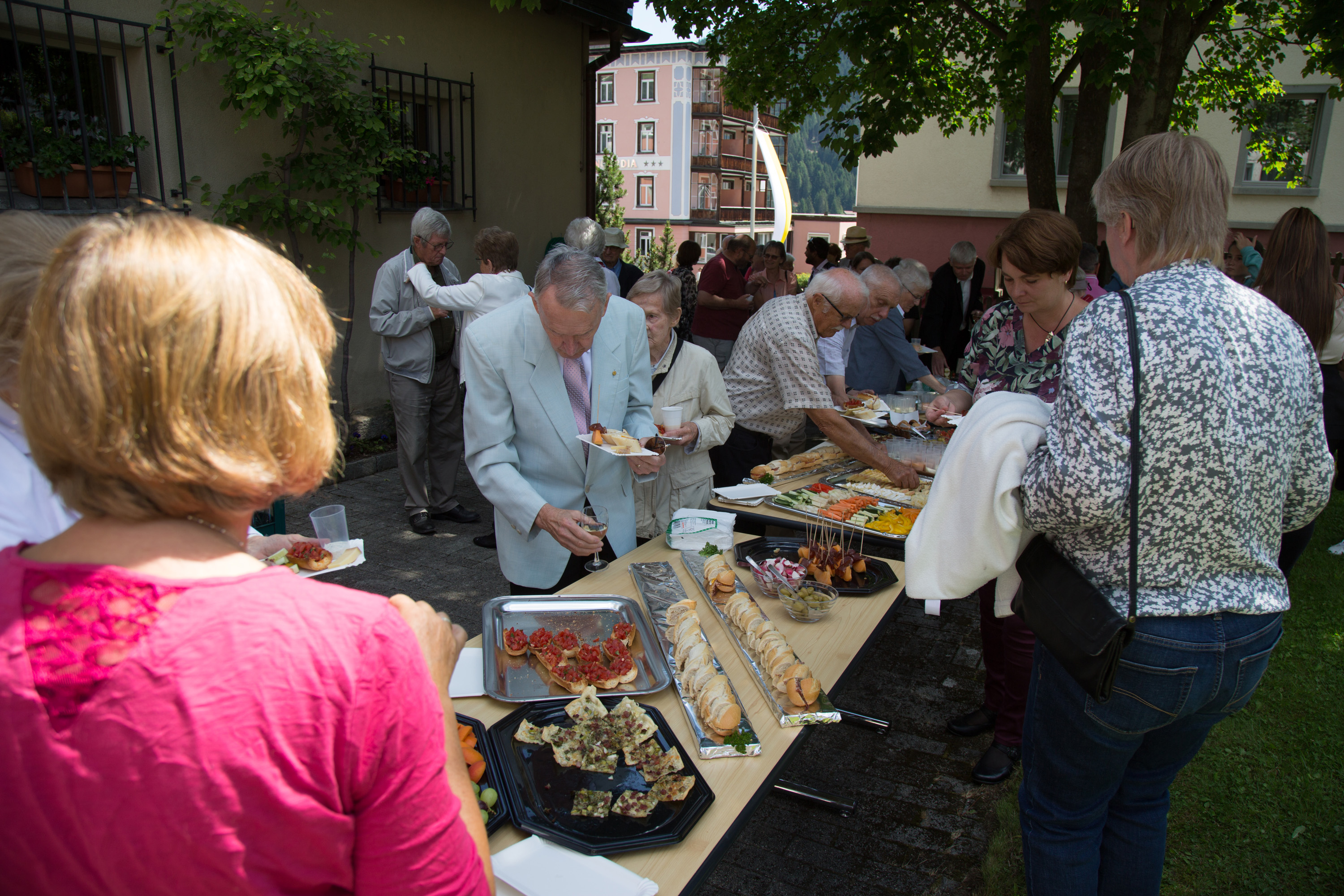 Vizepräsidentin Beate Rückert, Pfarreiratspräsident Simone Bonvissuto sowie Sozialdiakon Christian Pfeiffer von den reformierten Kirchgemeinden, drückten in ihren berührenden Grussworten ihre Dankbarkeit und Verbundenheit mit Pius Betschart aus. Der Kirchenchor umrahmte das Hochamt zum Patrozinium der Herz-Jesu-Kirche im Dorf unter der bewährten Leitung von Jürg Wasescha und Daniel Wioland an der Orgel, mit einer festlich dargebotenen lateinischen Messe. Als Dekan Susak zum Schluss treffende Dankworte des Abschieds fand, die sich im Lied «Bhüat di Gott, Pius» ausdrückten, wurde die Stimmung recht berührend. «Es wird nicht lange dauern, bis wir dich in Flims besuchen», meinte Susak, sichtlich gerührt. Mit einem grünen seidenbestickten Messgewand als Abschiedsgeschenk der Pfarrei, das dem neuen Pfarrer Pius Betschart unter grossem Applaus überreicht wurde, wurde deutlich, Priester kommen und gehen, Menschen kommen und gehen, aber einer bleibt: Jesus Christus. Nach dem Schlusssegen ging es zum reichhaltigen Apéro auf die Pfarrwiese, den Messmerin Ida Agnello und Hedy Oettgen mit Team vorbereiteten hatten. Ernst Niederberger, der sein Pastoraljahr mittlerweile erfolgreich abgeschlossen hat, wird zunächst als Diakon und im nächsten Jahr als Neupriester, die Stelle als Davoser Vikar übernehmen. Bei bestem Wetter und einer herzlichen Stimmung ging ein denkwürdiger Tag im Leben der Davoser Pfarrei zu Ende.
