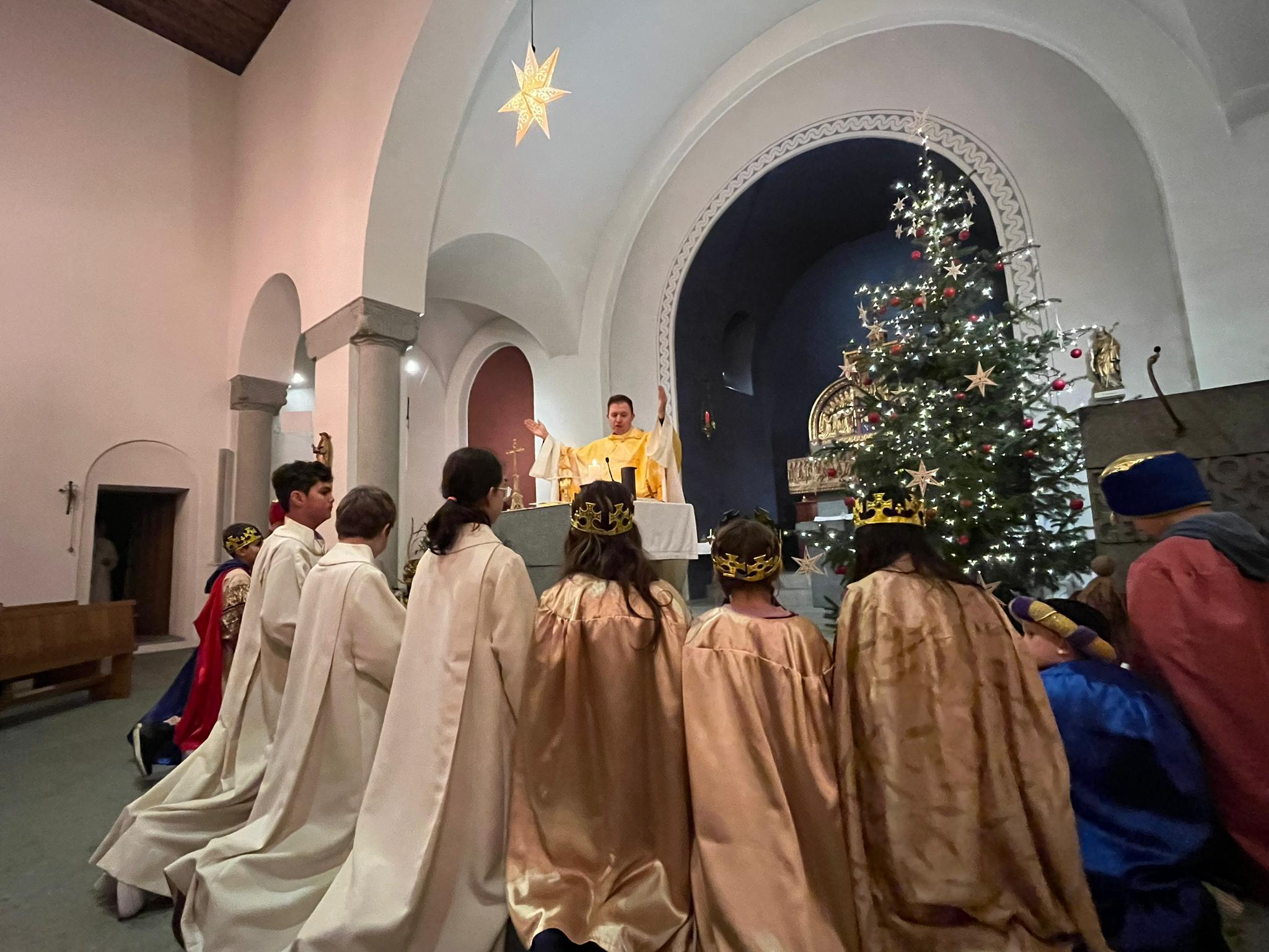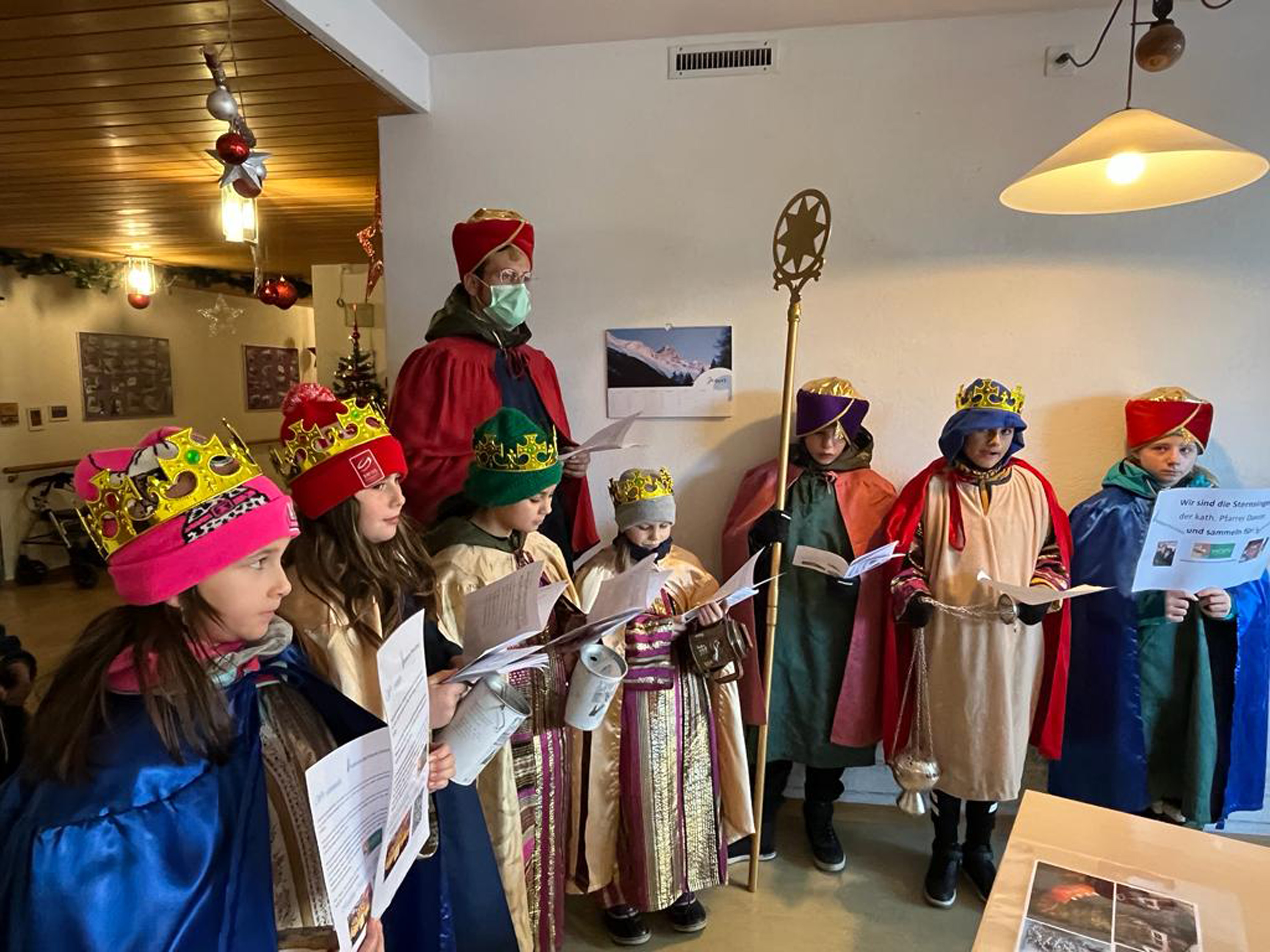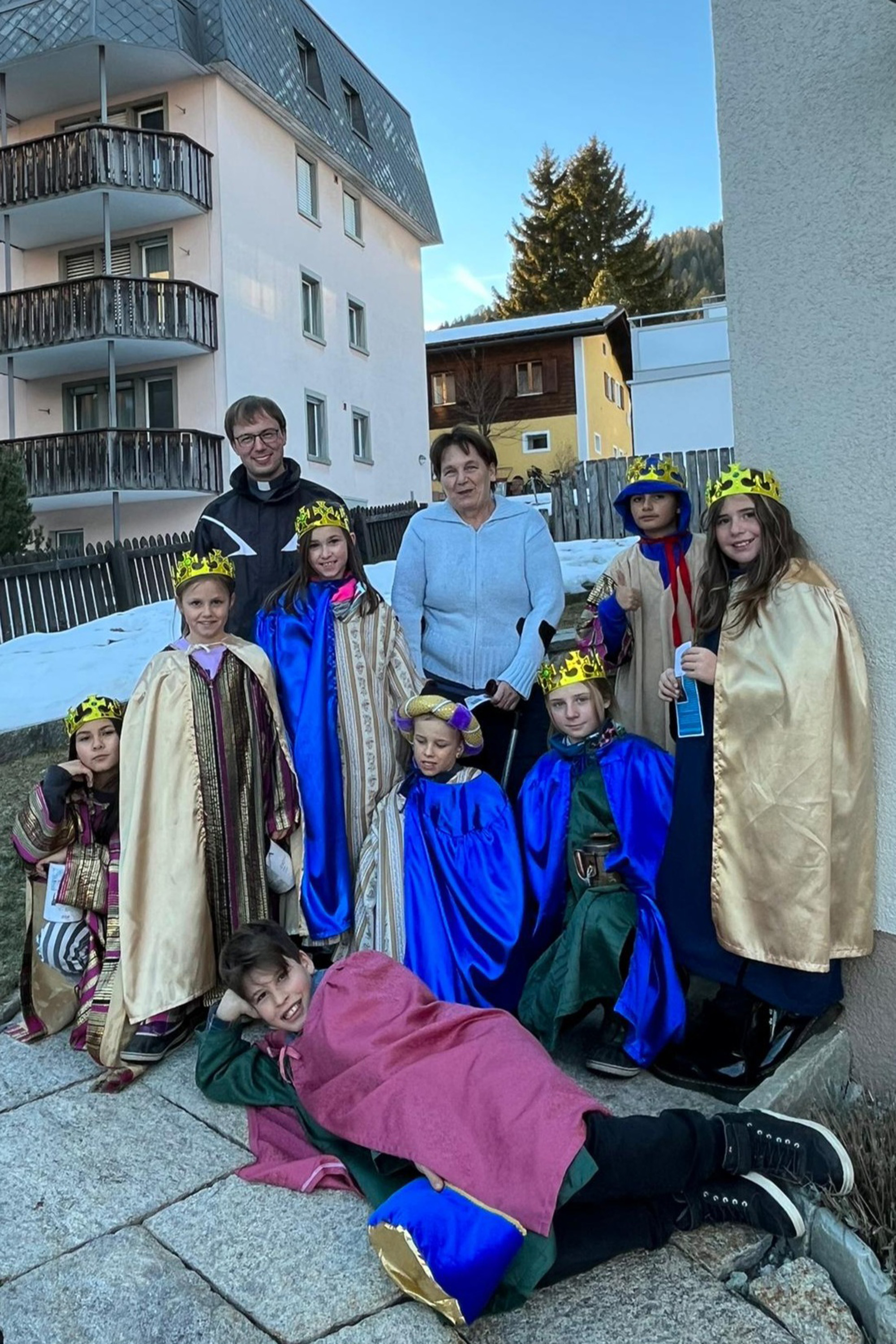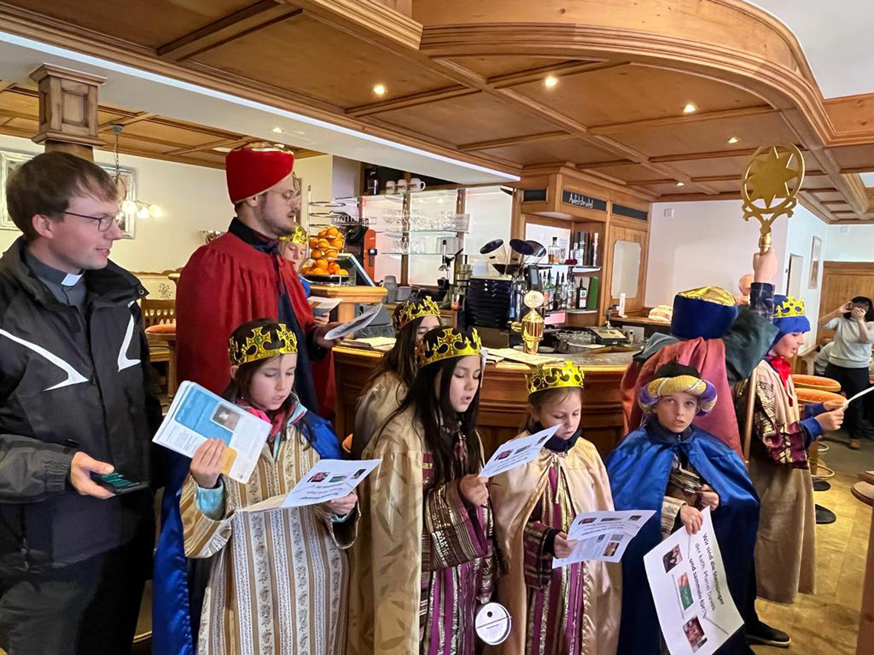 Am vergangenen Wochenende, dem 8.und 9. Januar 2023, beteiligten sich zahlreiche Kinder und Jugendliche der katholischen Pfarrei Davos, um bei der weltweit grössten Solidaritätsaktion unter dem Motto «Kinder helfen Kindern» dabei zu sein. Als Heilige Dreikönige «Caspar, Melchior und Balthasar» verkleidet, machten sich die eifrigen Sternsinger auf den Weg durch Davos, um mit Liedern und Gedichten Gottes Segen für ein gutes neues Jahr 2023 zu wünschen. Ob im Zentrum Guggerbach, im Pflegeheim oder Spital, in Geschäften, Hotels und auf öffentlichen Davoser Plätzen: überall wurde das Engagement der Sternsinger mit Freude aufgenommen. So verbreitete sich am Dreikönigsfest nochmals weihnachtliche Stimmung - auch bei den Festmessen in der Marien- u. Herz-Jesu-Kirche. Der schöne Spendenerlös von etwa CHF 2500 geht an die Kinderhilfe «Hope» Nepal. Gesegnete Segensaufkleber sowie Weihrauch und Dreikönigswasser können die kommenden Tage noch in den Kirchen mitgenommen werden. Ein herzliches Dankeschön gilt allen Spendern sowie den fleissigen Ministranten, die trotz Ferien etwas von ihrer Zeit für die gute Tat geschenkt haben.