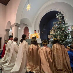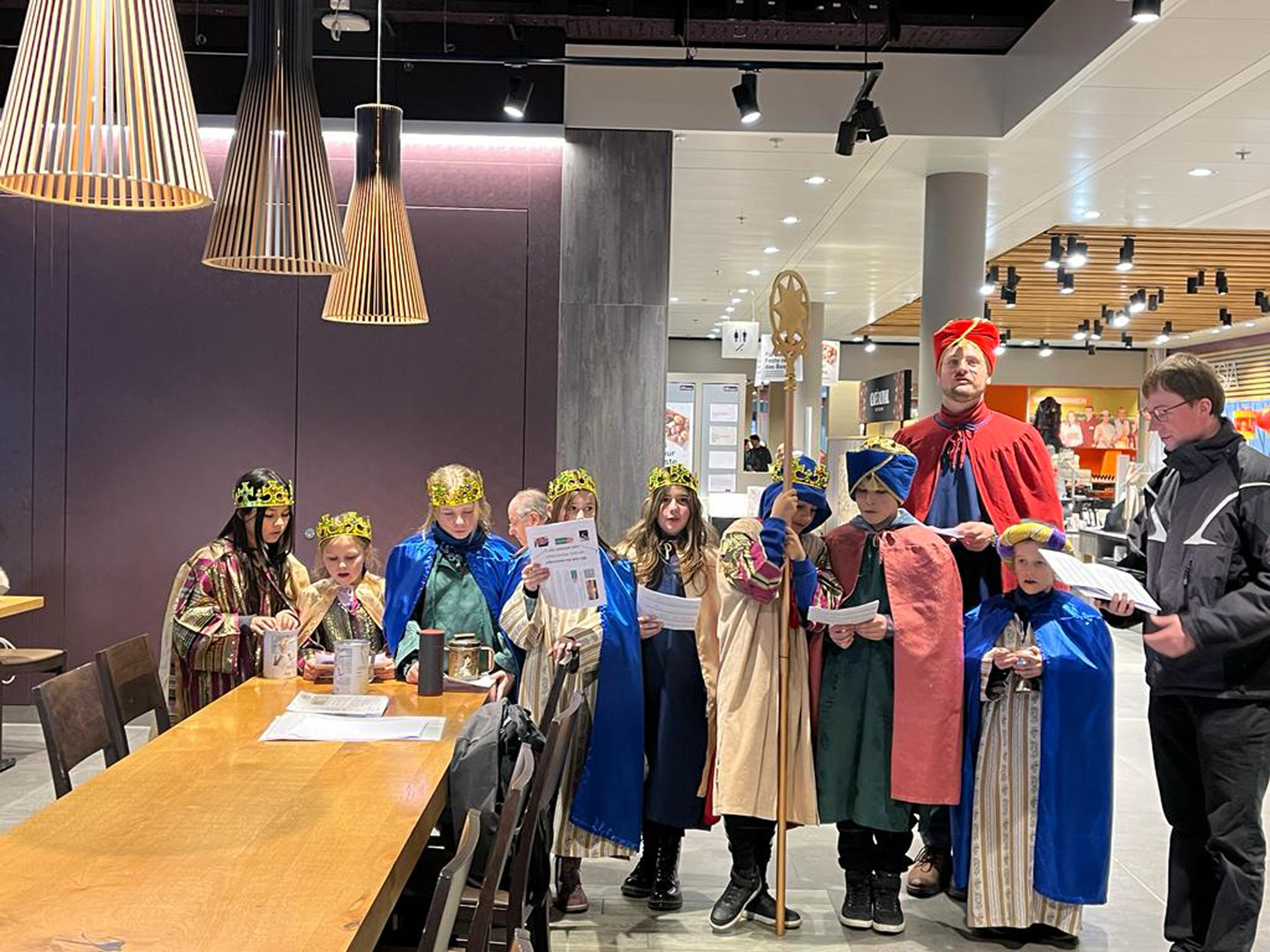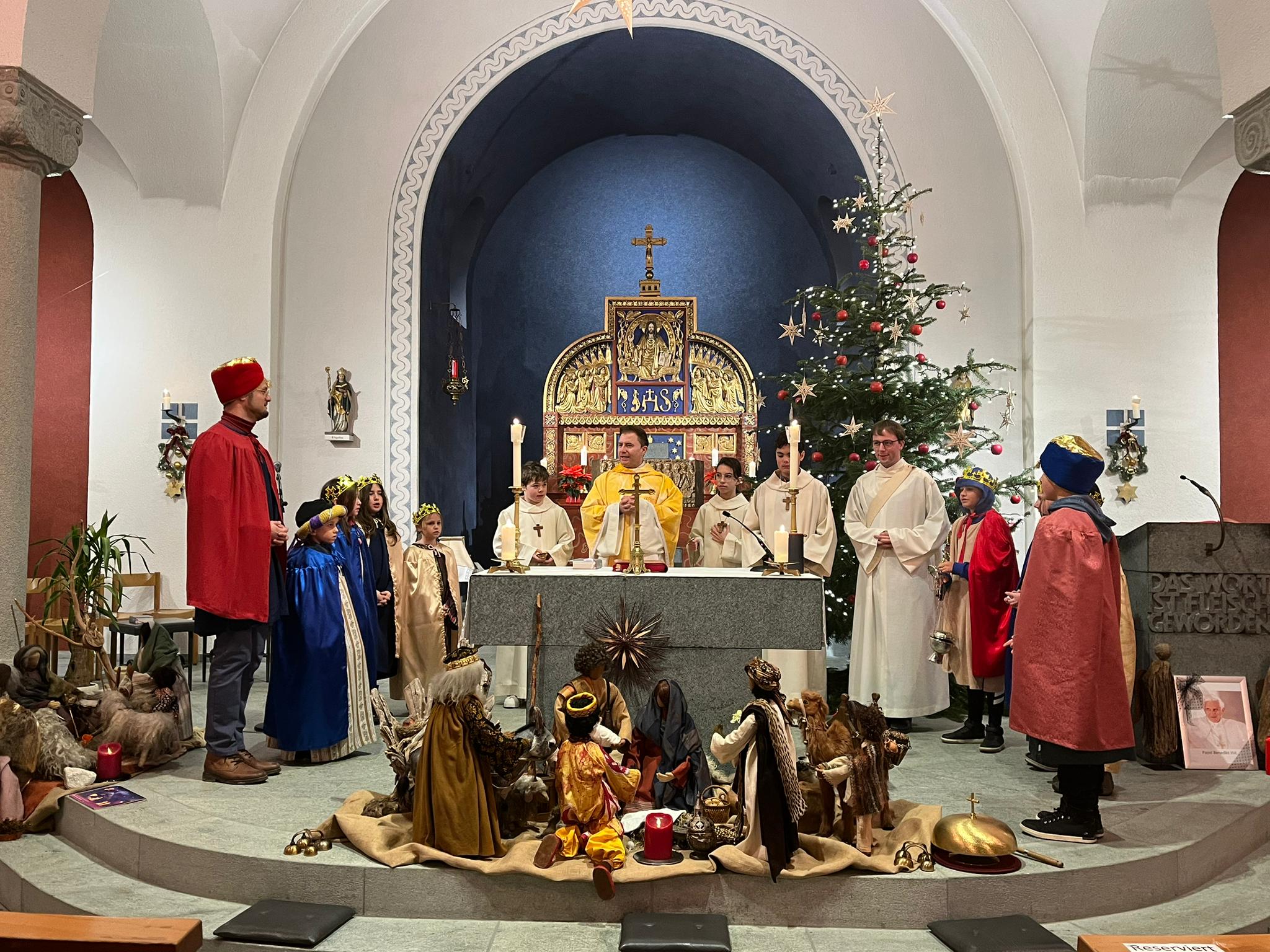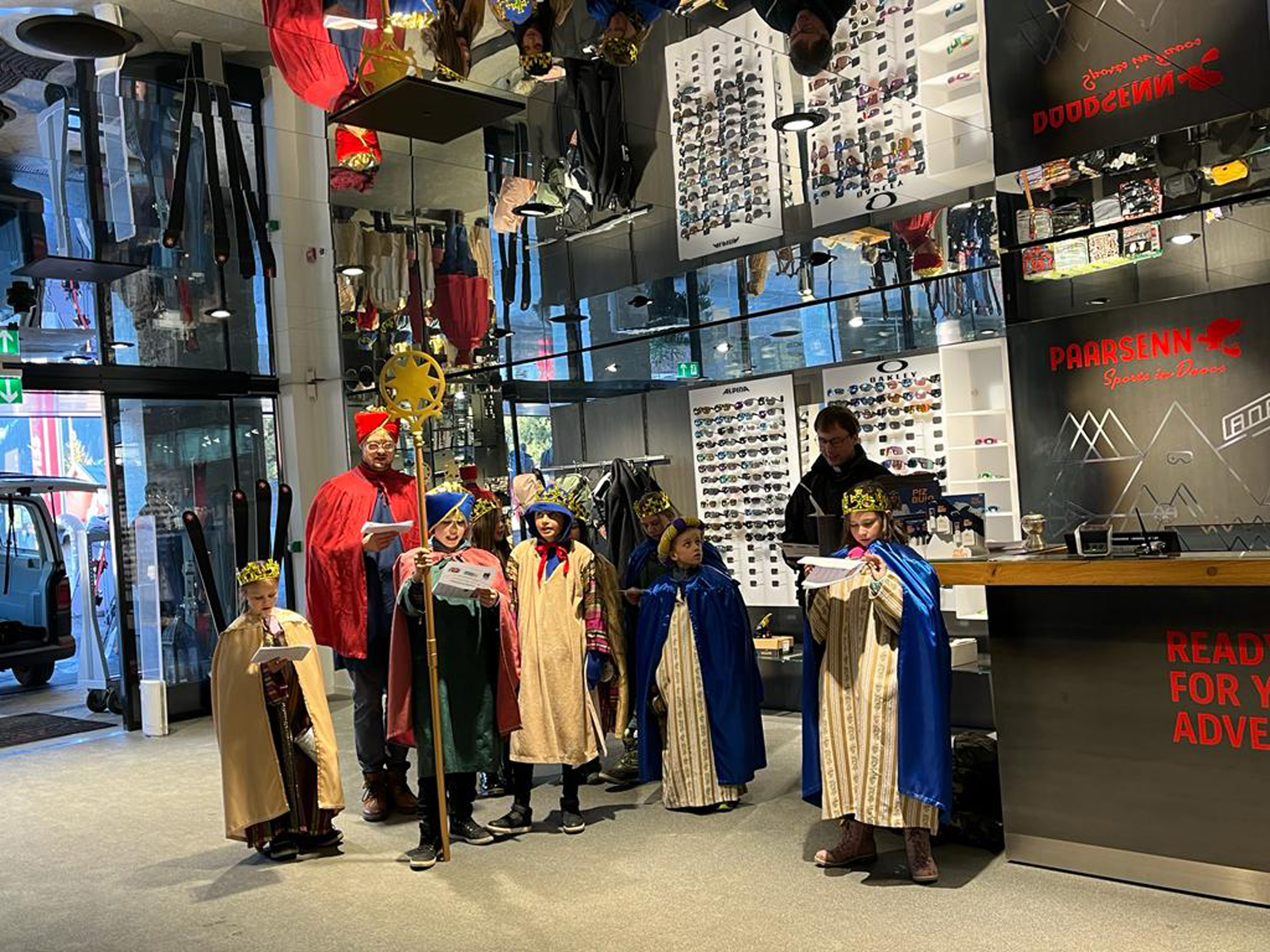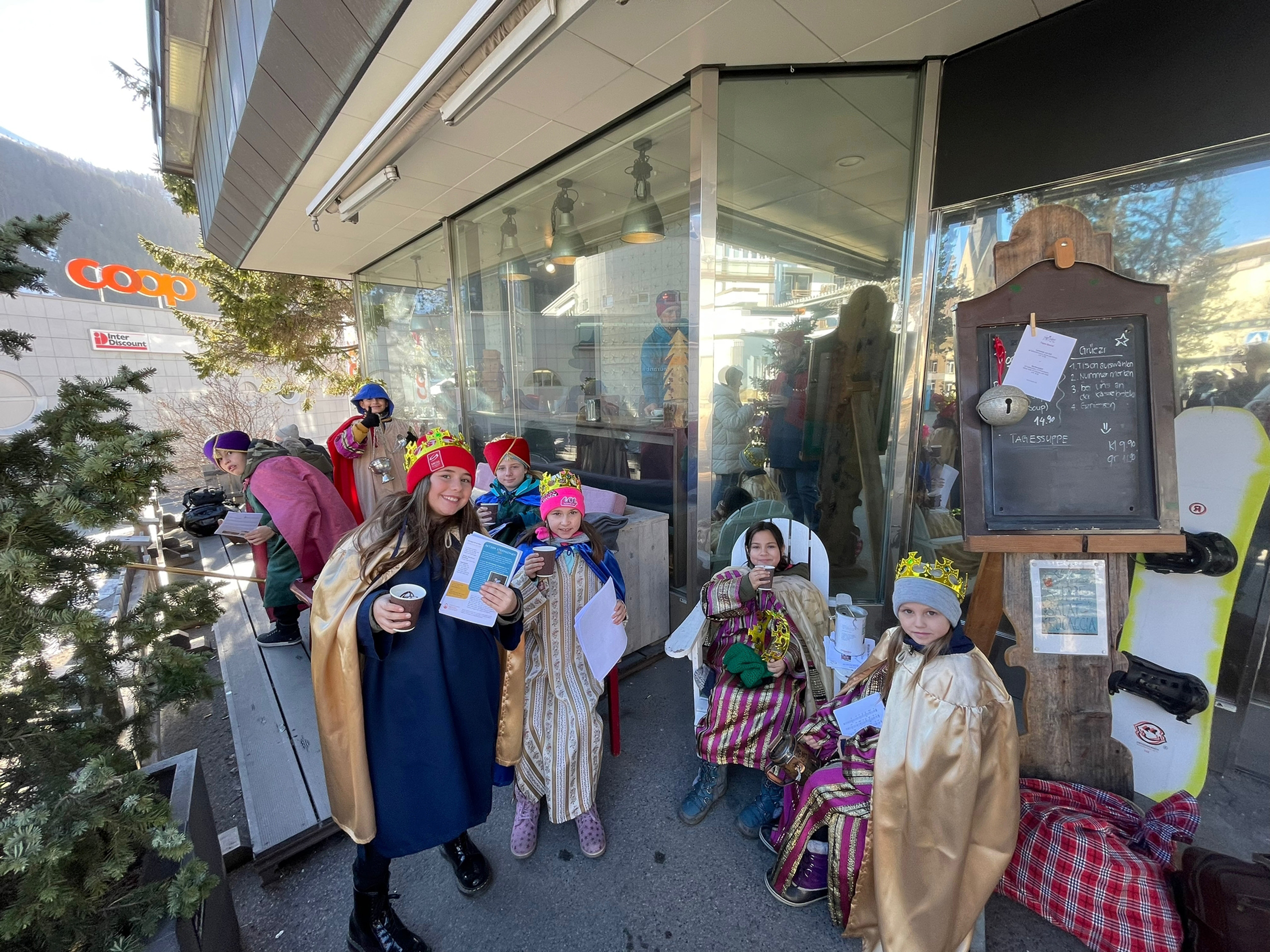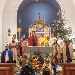Am vergangenen Wochenende, dem 8.und 9. Januar 2023, beteiligten sich zahlreiche Kinder und Jugendliche der katholischen Pfarrei Davos, um bei der weltweit grössten Solidaritätsaktion unter dem Motto «Kinder helfen Kindern» dabei zu sein. Als Heilige Dreikönige «Caspar, Melchior und Balthasar» verkleidet, machten sich die eifrigen Sternsinger auf den Weg durch Davos, um mit Liedern und Gedichten Gottes Segen für ein gutes neues Jahr 2023 zu wünschen. Ob im Zentrum Guggerbach, im Pflegeheim oder Spital, in Geschäften, Hotels und auf öffentlichen Davoser Plätzen: überall wurde das Engagement der Sternsinger mit Freude aufgenommen. So verbreitete sich am Dreikönigsfest nochmals weihnachtliche Stimmung - auch bei den Festmessen in der Marien- u. Herz-Jesu-Kirche. Der schöne Spendenerlös von etwa CHF 2500 geht an die Kinderhilfe «Hope» Nepal. Gesegnete Segensaufkleber sowie Weihrauch und Dreikönigswasser können die kommenden Tage noch in den Kirchen mitgenommen werden. Ein herzliches Dankeschön gilt allen Spendern sowie den fleissigen Ministranten, die trotz Ferien etwas von ihrer Zeit für die gute Tat geschenkt haben.