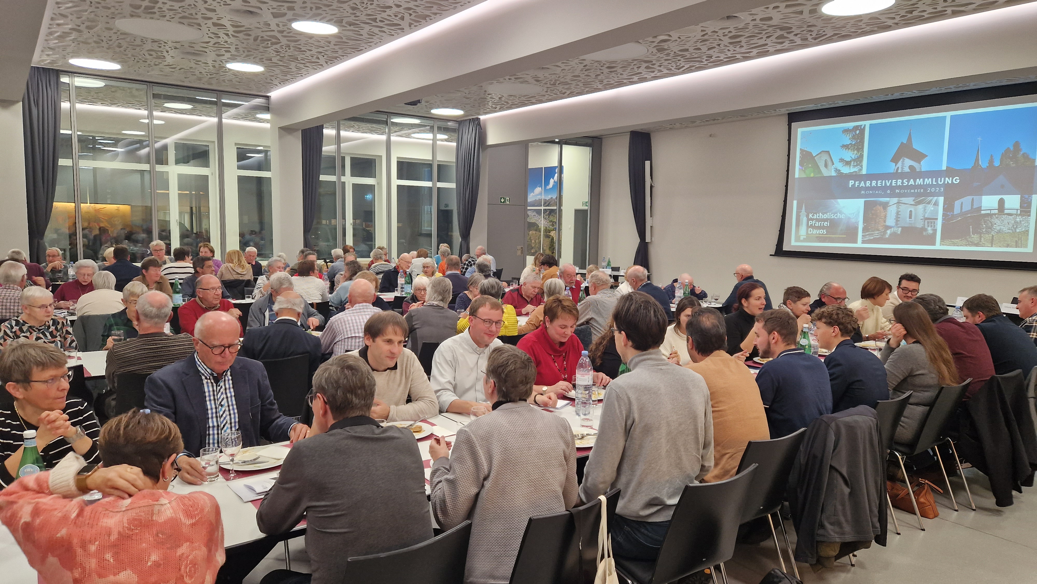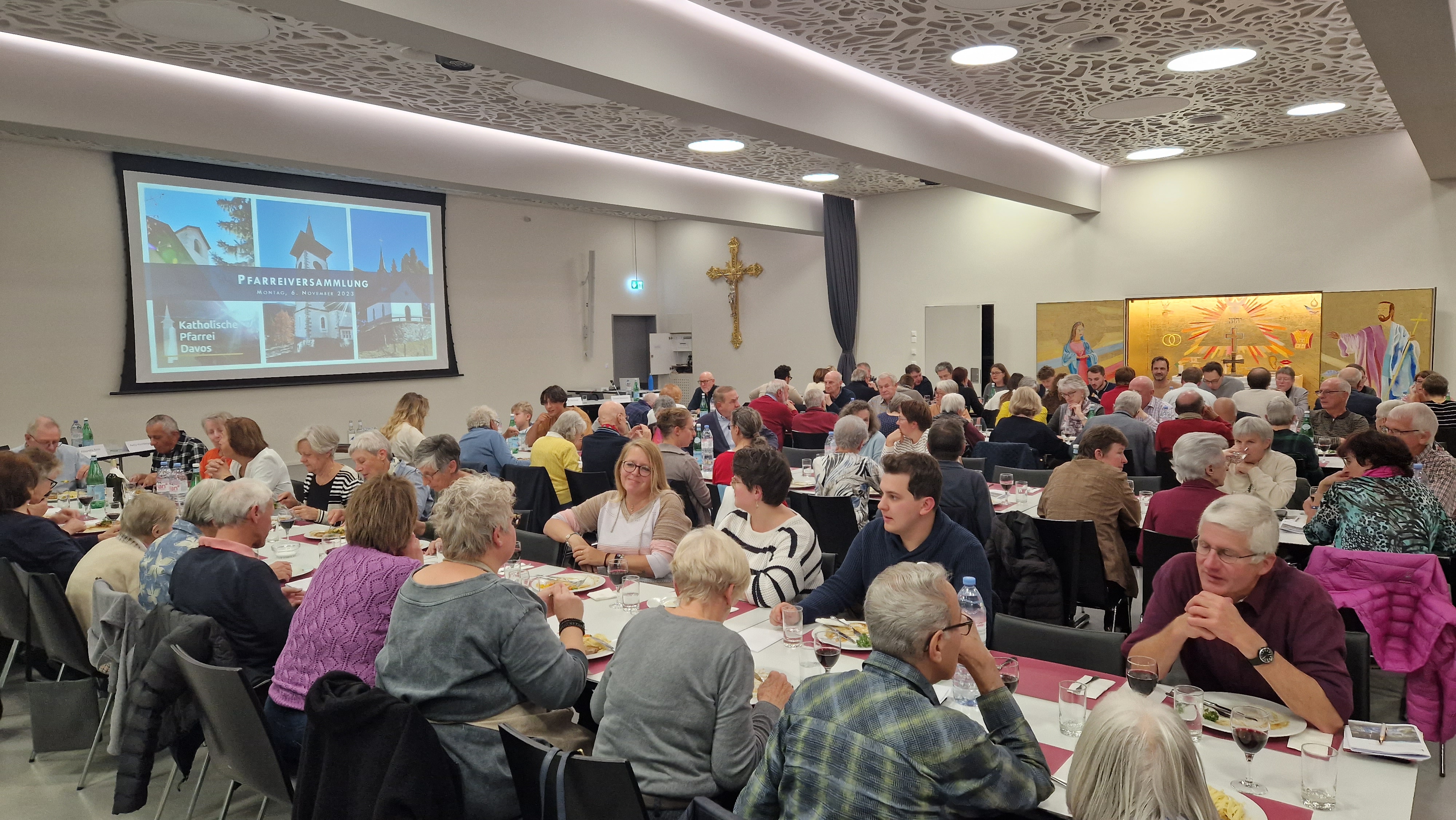 Am 6. November fand die ordentliche Versammlung von Pfarrei und Kirchgemeinde statt, die mit einem gemeinsamen Abendessen im Pfarreizentrum begann. Es war dabei erstaunlich zu sehen, wie viele Gemeindemitglieder gekommen waren und dass sich der Altersdurchschnitt der Anwesenden bunt gemischt zeigte. Dies zeugt vom breiten Interesse der Davoser Katholiken am Geschehen ihrer Kirche vor Ort. Zu verdanken ist dies sicherlich der guten Stimmung in der Pfarrei und dem allgemeinen Zuspruch zur Arbeit der Kath. Kirche in Davos - und, damit verbunden, den drei „Zugpferden“ katholischen Gemeindelebens: dem Pfarreiratspräsidenten Simone Bonvissuto, dem Kirchgemeindepräsidenten Dino Brazerol, sowie dem Pfarrer und Dekan Kurt Susak mit ihren jeweiligen Gremien, sowie dem tollen Engagement vieler aktiver Gläubigen, sei es haupt- oder ehrenamtlich. Allein zum „Dankeschön Abend“ im Advent sind etwa 220 freiwillige Mitarbeitende geladen, die durch ihr Engagement zur Lebendigkeit des Pfarreilebens wesentlich beitragen. Keine Selbstverständlichkeit in der aktuellen Situation der Kirche. Simone Bonvissuto liess mit einem bunten Fotorückblick das vergangene Jahr Revue passieren. Dabei zeigte sich wieder einmal, wie vielfältig die Aktivitäten im Pfarreileben waren und sind, und wie viele Davoser bereit sind mitzumachen. Dekan Kurt Susak ging anschliessend auf den weltweiten synodalen Prozess ein, der von Papst Franziskus eingeleitet worden war und erklärte, was die dringend notwendige „Frischzellenkur“ für die Davoser Pfarrei und für die Kirche Schweiz bedeutet. Er dankte allen ausdrücklich für das gegenseitige Vertrauen und das exzellente Miteinander. Das sei ein Hoffnungszeichen. Manchmal komme ihm Davos wie ein Gegenentwurf zur allgemeinen Kirchenmüdigkeit vor. Erfreuliche Verstärkung gab es bei Neuwahlen in den Pfarreirat. Vorgeschlagen wurden vier Kandidaten aus ganz unter[1]schiedlichen Lebensbereichen: Miguel Aus unserer Gemeinde Pfarrei- und Kirchgemeindeversammlung. Aus unserer Gemeinde Angelo Barroso Rodrigues (Schüler am Gymnasium), Ladina Paredes (Spitalangestellte), Andreia dos Santos Goncalves (Supermarktangestellte) und Peter Varga (Forscher an der AO). Alle wurde einstimmig ins Gremium gewählt, zudem wurde die ehemalige Landratspräsidentin Alexandra Bossi, zur Vizepräsidentin des Pfarreirates bestimmt. Mit 17 engagierten Mitgliedern kann der Pfarreirat seine kirchlichen Angebote weiter ausbauen. Durch den zweiten Teil des Abends führte Kirchgemeindepräsident Dino Brazerol – und dies zum zweitletzten Mal. Er kündigte an, zusammen mit Vizepräsidentin Beate Rückert (beide sind pensioniert) im nächsten Jahr zurückzutreten. In seine arbeitsintensive Ära fielen sehr viele bauliche Massnahmen an den Sakralgebäuden oder beim Neubau des Pfarreizentrums mit betreutem Wohnen. Die Rechnung zum jüngsten dieser Projekte – die Aussenrenovation der Marienkirche samt Kirchturm und neuem Turmkreuz – wurde an der Versammlung genauer vorgestellt. Auch über die Arbeiten an der Tschuggenkapelle wurde informiert, da diese wegen ihres instabilen Untergrundes Risse im Gemäuer bekam. Nachdem die Rechnungen angenommen, der Steuersatz bestimmt sowie eine kleine Statutenänderung genehmigt waren, ging es zum Traktandum «Wahlen». Während viele Kirchgemeinden oft lange Zeit nach neuen Mitgliedern in ihr Vorstandsgremium suchen müssen, zeigt sich dies in der katholischen Kirchgemeinde anders: mit Michael Buchmüller (Projektleiter bei Caviezel AG) und Luca Aversa (Leiter Private Banking bei der Graubündner Kantonalbank) konnten gleich zwei neue Mitglieder für den Kirchgemeindevorstand gewonnen werden. Sie werden nun ein Jahr vom «alten» Vorstand eingearbeitet, um nächstes Jahr einen «Generationenwechsel» zu vollziehen. Als neue Revisorin wurde Daniela Balzer (Stv. Leiterin Finanzen bei Destination Davos Klosters) gewählt. So aufgestellt kann die katholische Kirche Davos in eine weiterhin gute Zukunft gehen. Würde Kirche in Rom und Chur nur annähernd so reibungslos und verlässlich funktionieren, die Sorgen und Probleme bezüglich ihrer Glaubwürdigkeit wären vielleicht fast behoben.