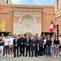 Negativschlagzeilen über die Kirche oder Nachwuchssorgen gibt es bei der katholischen Pfarrei Davos nicht. Das Gegenteil ist der Fall! Ob der schulische Religionsunterricht in Verbindung mit beliebten ausserschulischen Projektanlässen, ob Pfarrei- u. Klassenlager, Exkursionen, Projekte wie das vielbeachtete Passionsspiel am Palmsonntag, ob soziale Anlässe, Gottesdienste, Gebetsabende im Jugendraum «Angelz» sowie die Einbindung der Jugend bei Pfarrei- u. Gemeinschaftsanlässen: die seit Jahren mit viel Herzblut kontinuierlich umgesetzte kirchliche Jugendarbeit, zeigt Früchte und schafft Zukunft für die katholische Kirchgemeinde. Dass so viele Kinder, Jugendliche und Eltern mitmachen und ihr Interesse am Pfarreileben kundtun, befördert gegenseitiges Vertrauen und Motivation. Ein besonderes Highlight ist dabei die jährliche Firmreise nach Rom, die mittlerweile Kultstatus geniesst. Erwartungsvolle Firmlinge, ein bestens motiviertes Begleiterteam des Jugend-Pfarreirat und Dekan Pfarrer Kurt Susak – der wie immer die Leitung und Organisation inne hatte – machten sich während der Frühlingsferien auf den Weg zur Lagerwoche in die ewige Stadt. Neben all den historischen Sehenswürdigkeiten Roms und dem Vatikan, stand die Auseinandersetzung mit persönlichen Glaubenserfahrungen und die frohe Gemeinschaft als Kirche im Zentrum. Die Generalaudienz mit Papst Franziskus auf dem Petersplatz oder ein Besuch am Meer sowie der päpstlichen Schweizer Garde mit den Davoser Gardisten, all dies vermittelte, was Weltkirche bedeutet. Den katholischen Glauben unkonventionell, frei und bejahend in den Alltag zu integrieren schafft Sinn und vermittelt Grundwerte. Mit dem Konzept einer ganzheitlichen Entwicklung und Begleitung der heranwachsenden Jugendlichen, leisten die Verantwortlichen der katholischen Kirche Davos einen wertvollen Beitrag für eine soziale, christliche und werteorientierte Gesellschaft. Ein solches Engagement muss bei all den gesellschaftlichen Herausforderungen heutzutage nur gewürdigt werden. Weiter so!