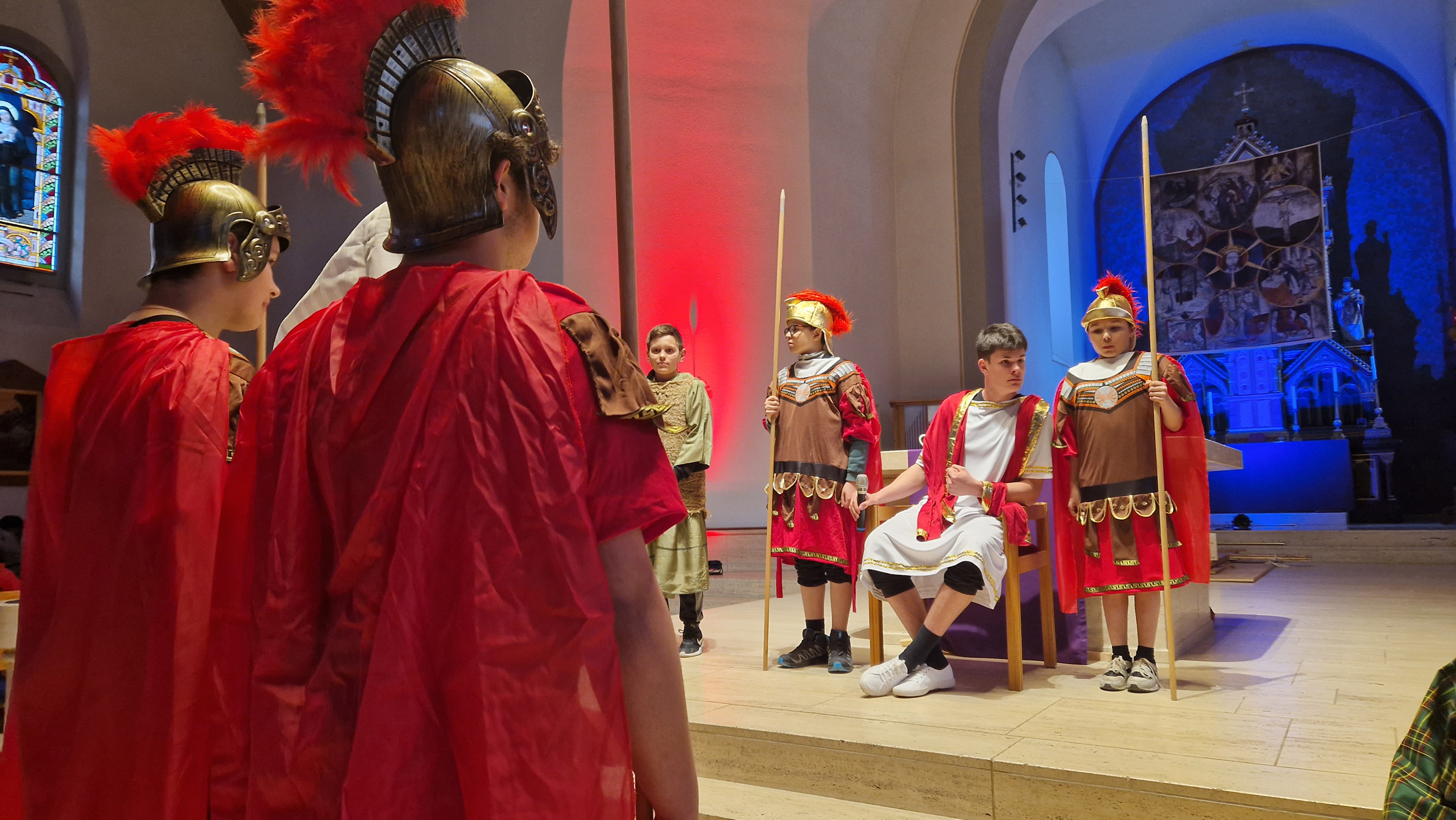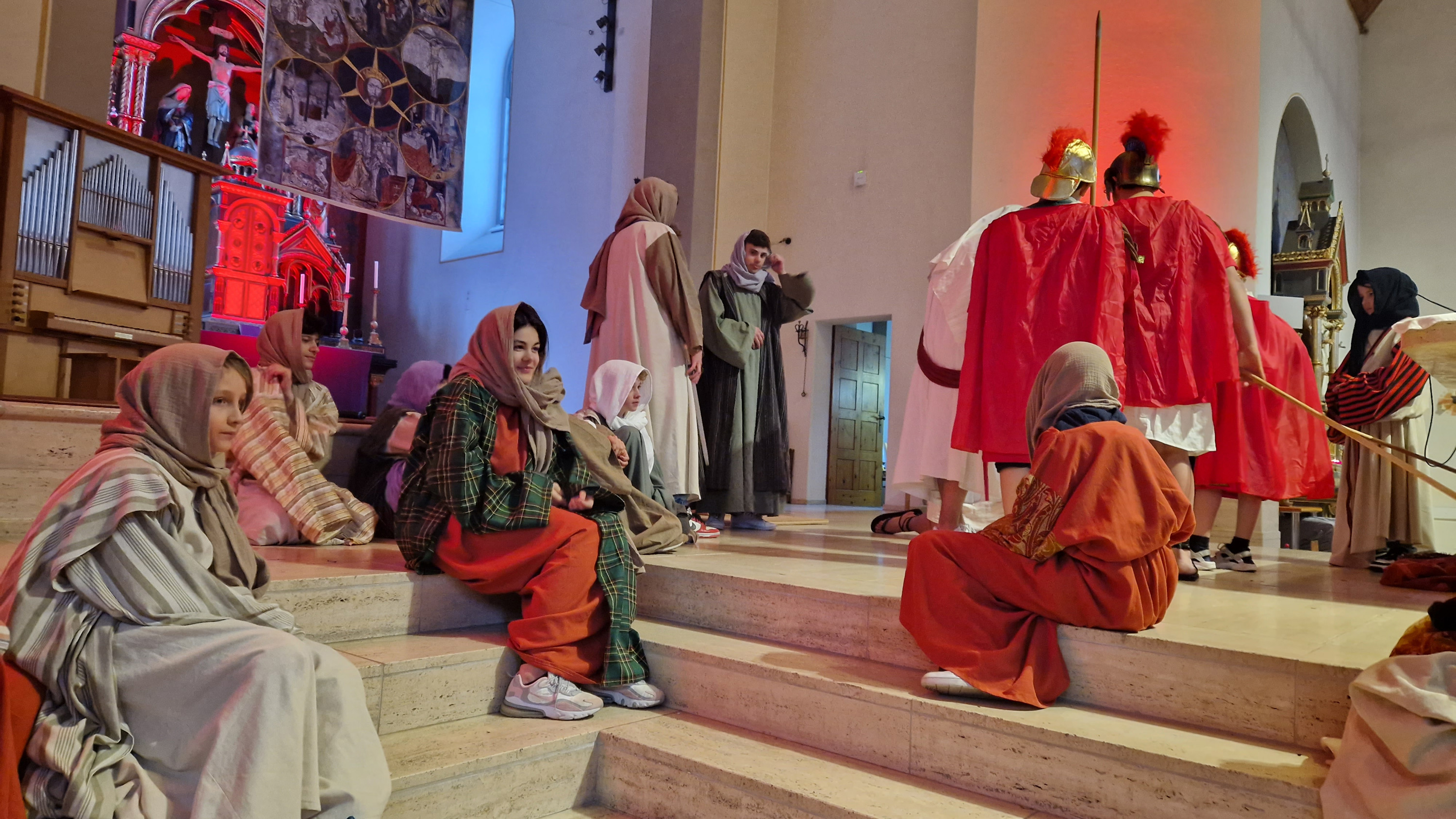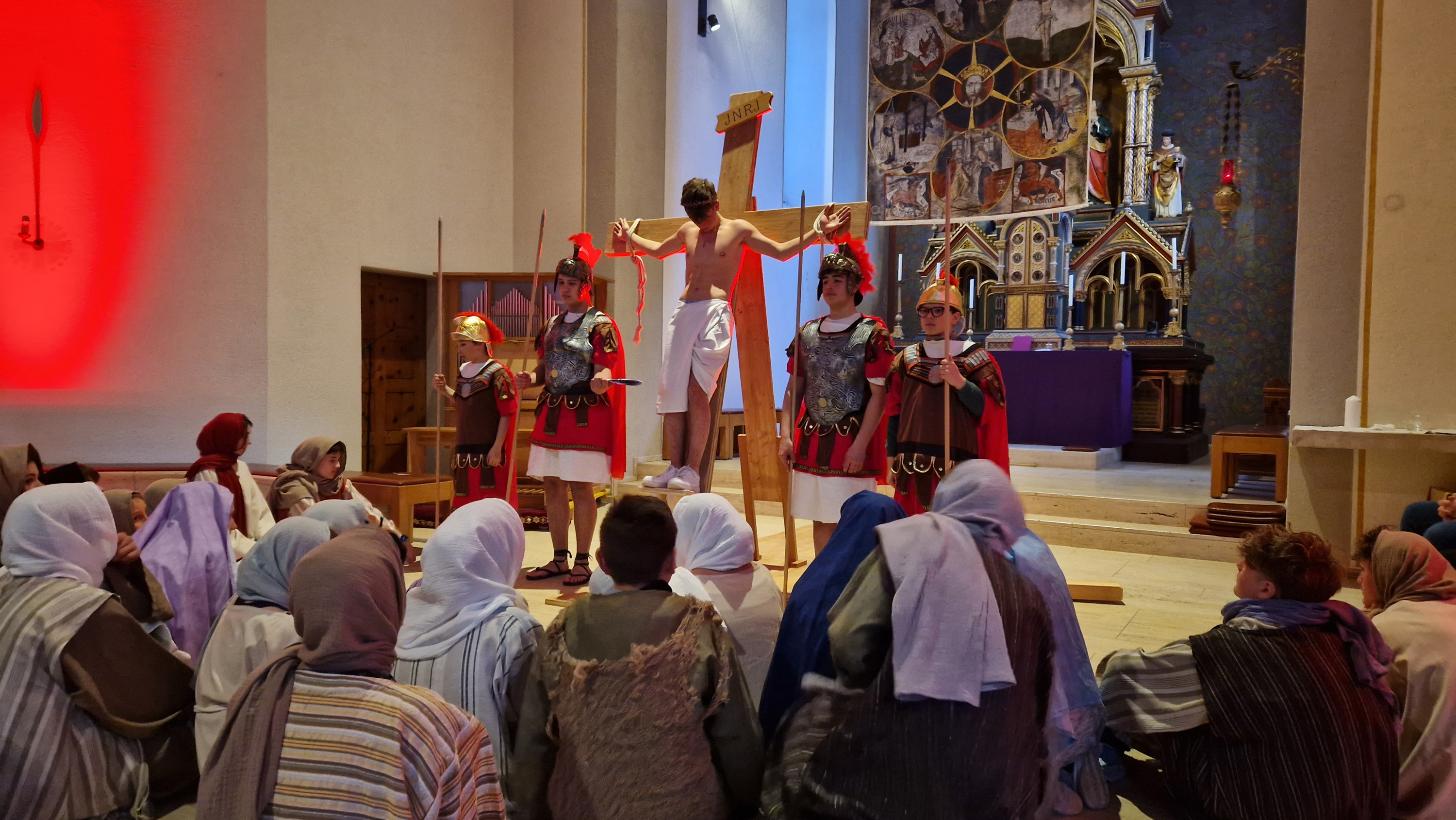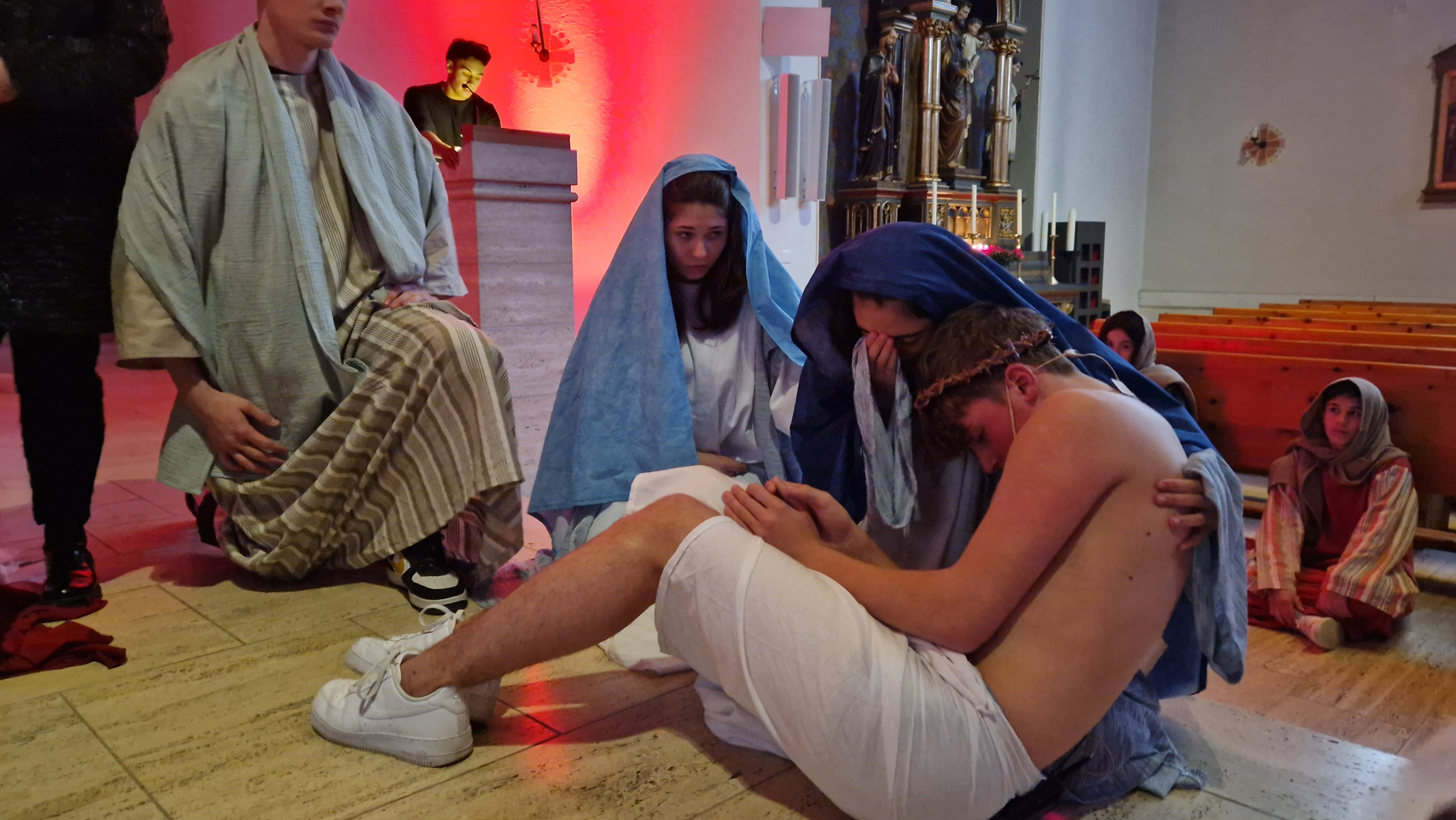Zahlreiche Kinder, Jugendliche, Familien, Einheimische und Gäste nahmen bei der farbenfrohen Palmprozession teil, die von zwei herzigen Eseli mit Clemens Niederee als Jesusdarsteller angeführt wurde und zur Familienmesse in die übervolle Marienkirche führte. Am Abend führten 40 Jugendliche nochmals das ergreifende Passionsspiel auf, dass die Besucher inspirierend und bewundernswert auf Ostern einstimmte. So vorbereitet kann Ostern kommen.