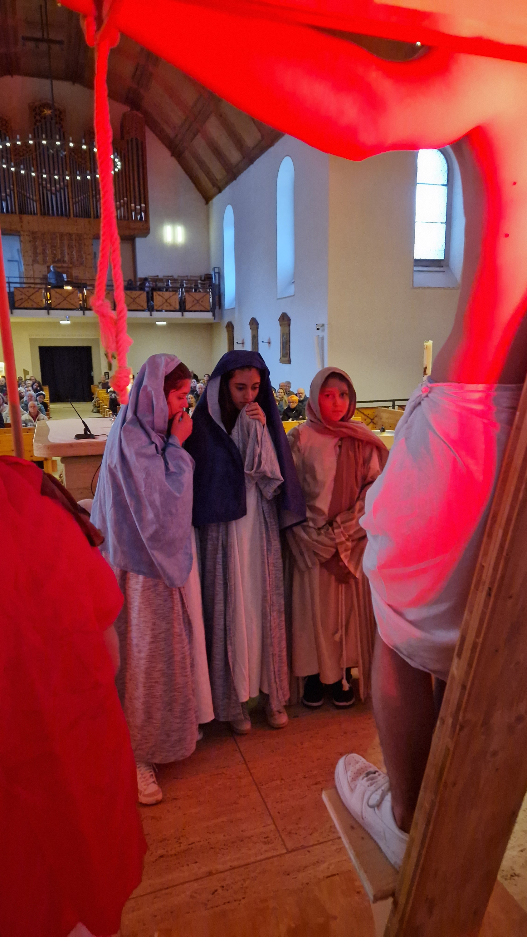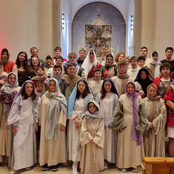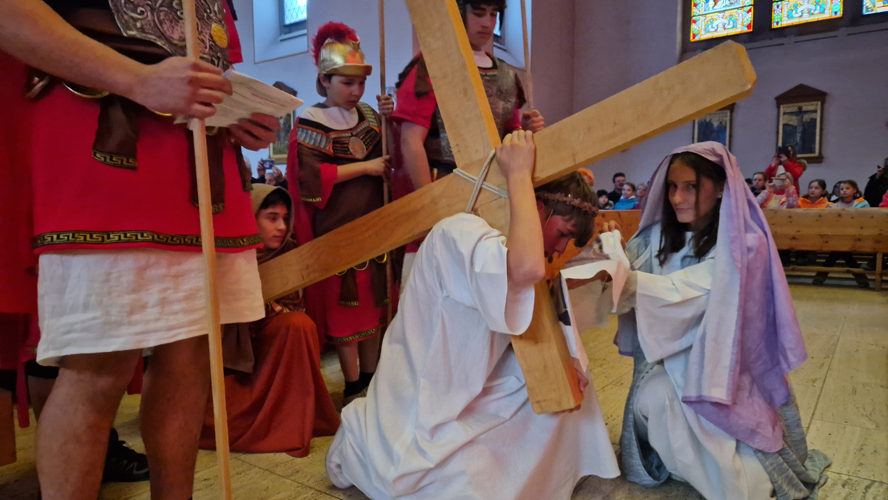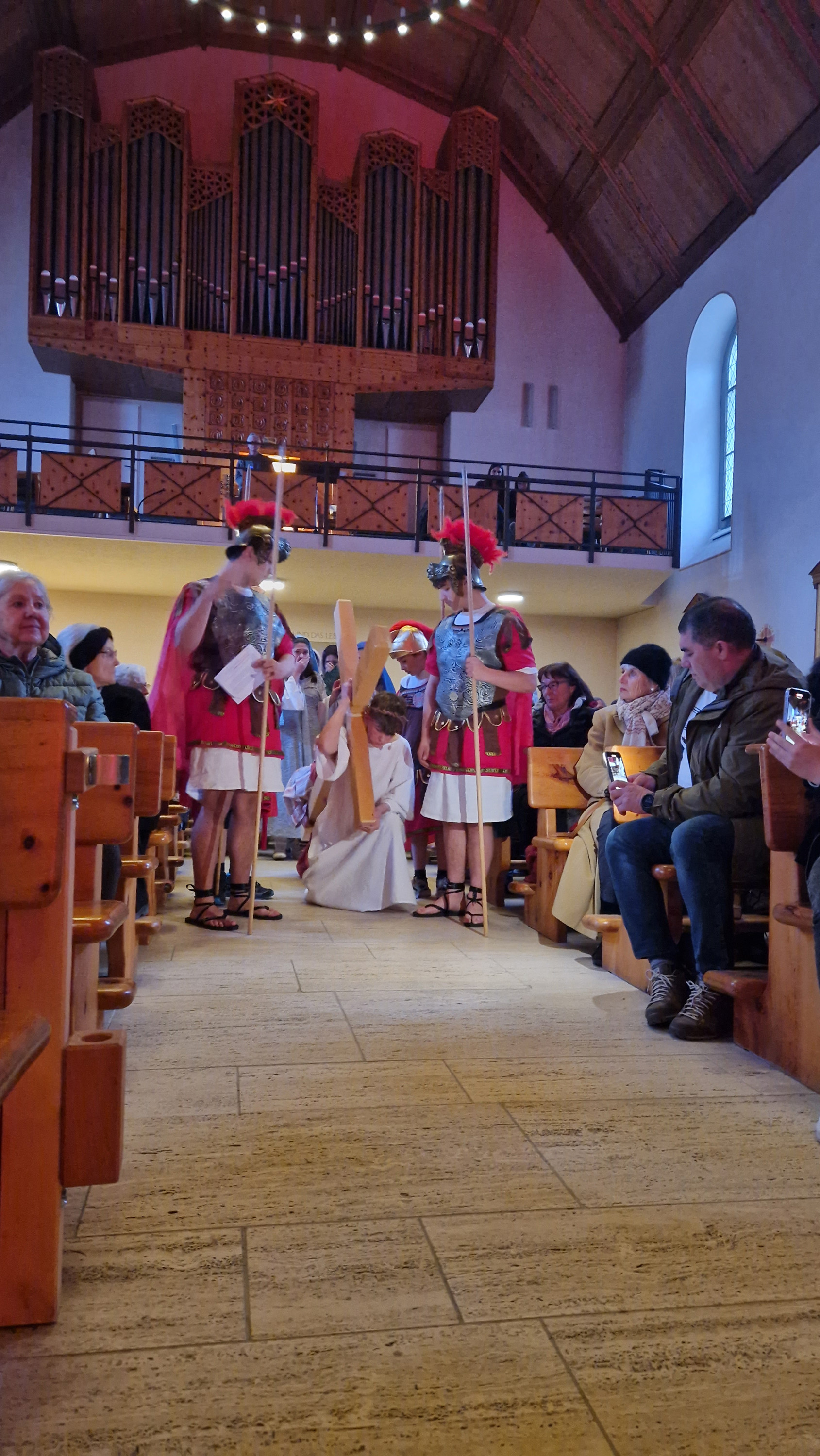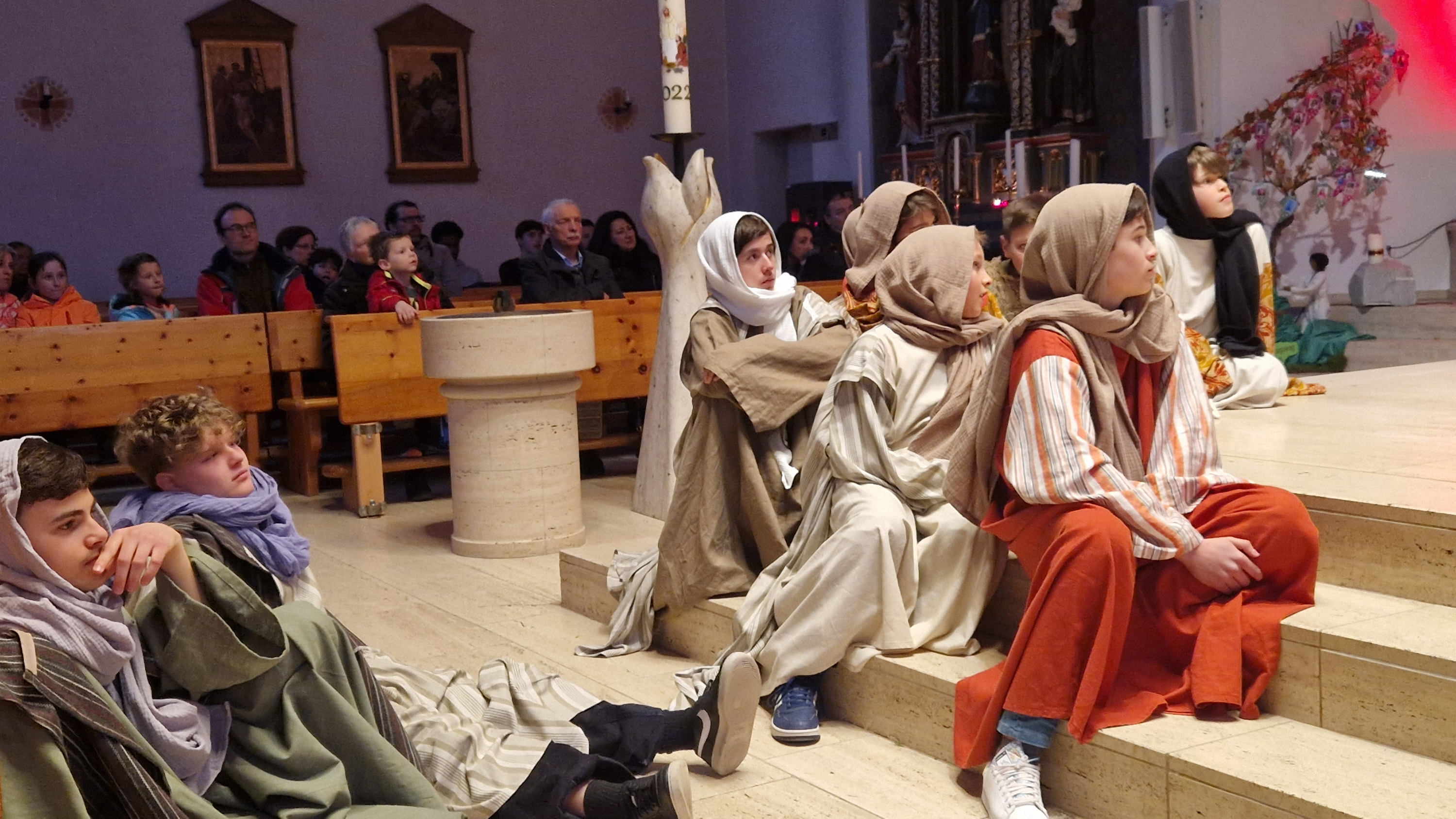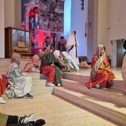 Zahlreiche Kinder, Jugendliche, Familien, Einheimische und Gäste nahmen bei der farbenfrohen Palmprozession teil, die von zwei herzigen Eseli mit Clemens Niederee als Jesusdarsteller angeführt wurde und zur Familienmesse in die übervolle Marienkirche führte. Am Abend führten 40 Jugendliche nochmals das ergreifende Passionsspiel auf, dass die Besucher inspirierend und bewundernswert auf Ostern einstimmte. So vorbereitet kann Ostern kommen.