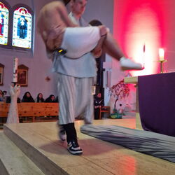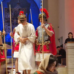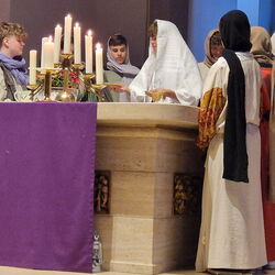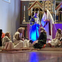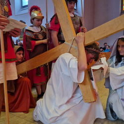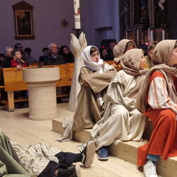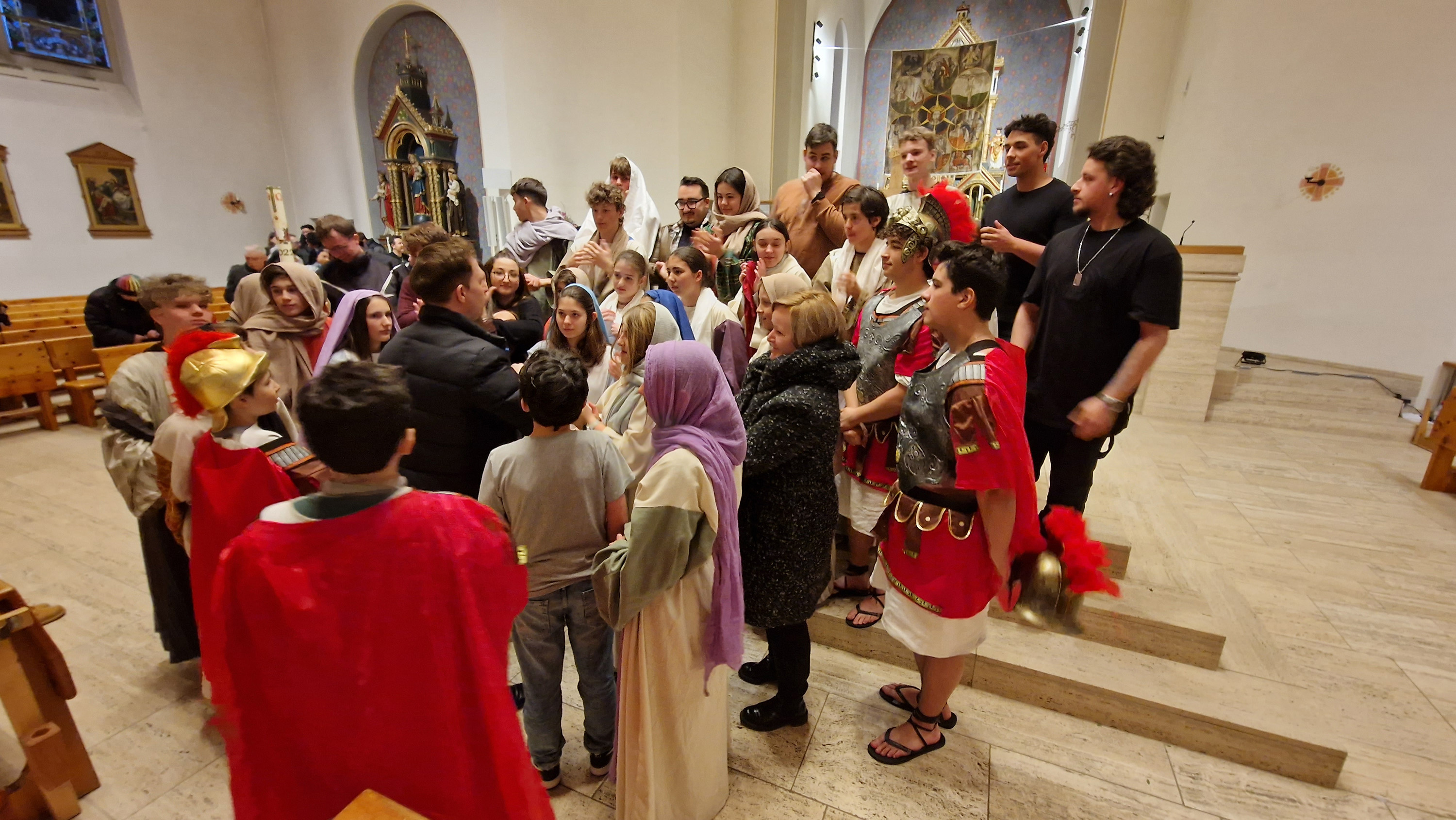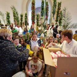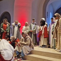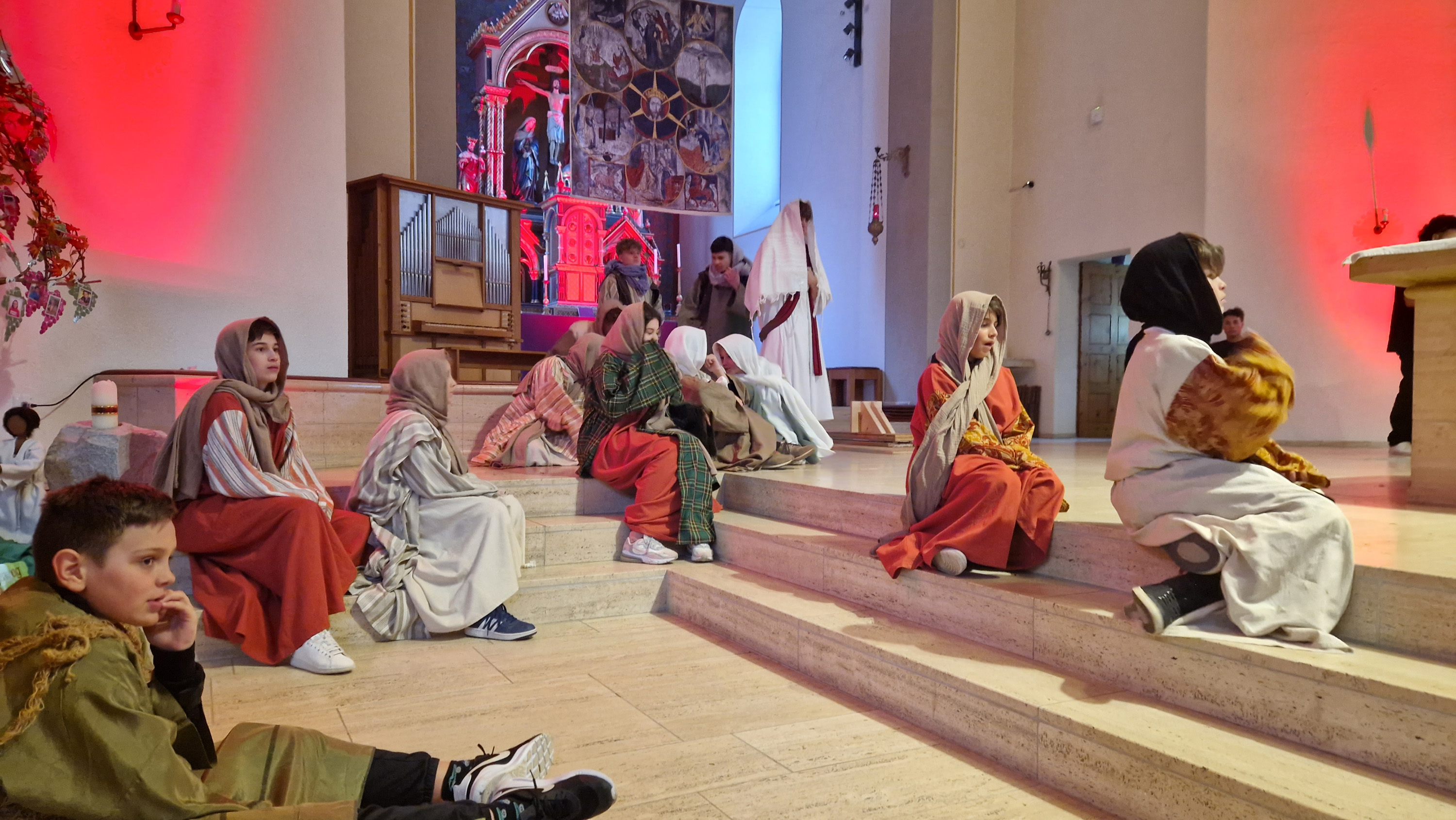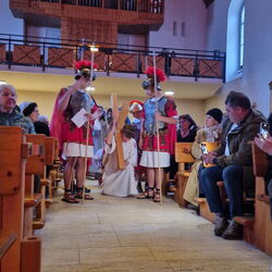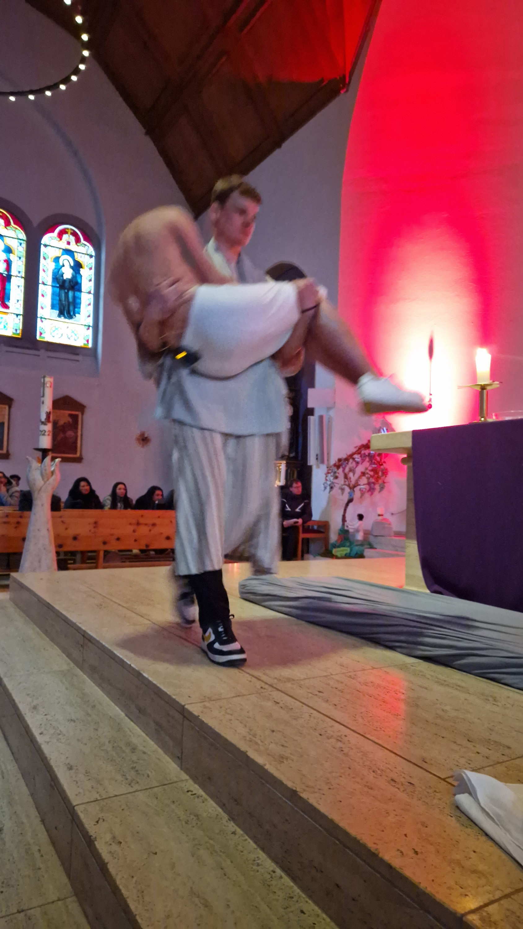 Zahlreiche Kinder, Jugendliche, Familien, Einheimische und Gäste nahmen bei der farbenfrohen Palmprozession teil, die von zwei herzigen Eseli mit Clemens Niederee als Jesusdarsteller angeführt wurde und zur Familienmesse in die übervolle Marienkirche führte. Am Abend führten 40 Jugendliche nochmals das ergreifende Passionsspiel auf, dass die Besucher inspirierend und bewundernswert auf Ostern einstimmte. So vorbereitet kann Ostern kommen.