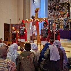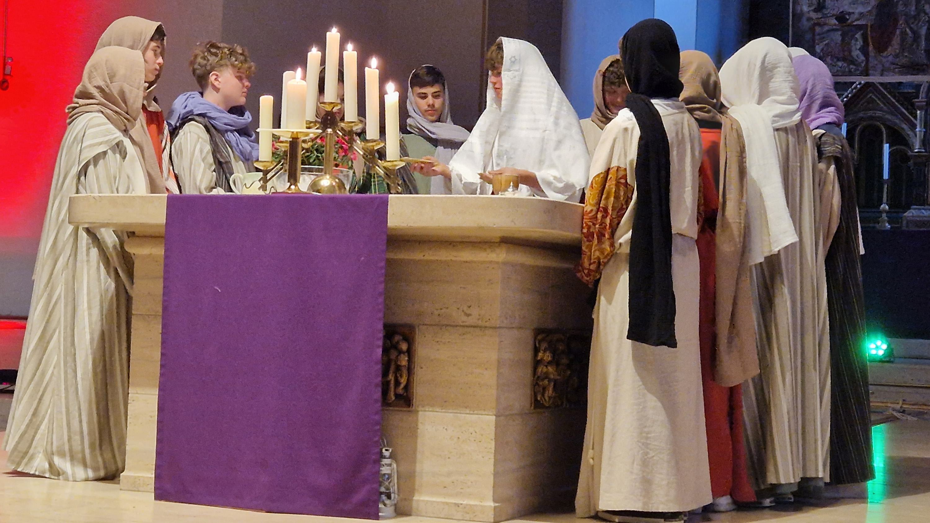 Am Gründonnerstag, 6. April 2023, wird um 18.30 Uhr in der Marienkirche mit der Festmesse vom letzten Abendmahl die «Drei-Tage-Feier» des «Österlichen Triduums» eröffnet. Mit der Fusswaschung, der Kommunion unter beiderlei Gestalten und der Altarentblössung, verbreitet dieser Gottesdienst eine ganz besondere Stimmung. Von 20.00 bis 23.00 Uhr findet die «Passionsnacht» mit einer «Nacht der offenen Marienkirche» statt. Hier sind alle eingeladen, in der Leidensnacht Jesu am Ölberg zu wachen und zu beten. Ob beim gestalteten Gebet beim Hochaltar, einer Feuerschale vor der Kirche, beim Atelier auf der Empore «Mein Kreuz basteln und malen», mit einer Kreuzwegmeditation und dem Abend der Versöhnung (Beichtgelegenheit), soll ein besonderer Gebetsakzent in der illuminierten Marienkirche gesetzt werden. Dabei kann jeder kommen und gehen, wie es die Zeit zulässt. Am Karfreitag werden um 10.30 Uhr in Herz-Jesu und um 17.00 Uhr in der Marienkirche die Liturgien vom Leiden und Sterben Jesu gefeiert.