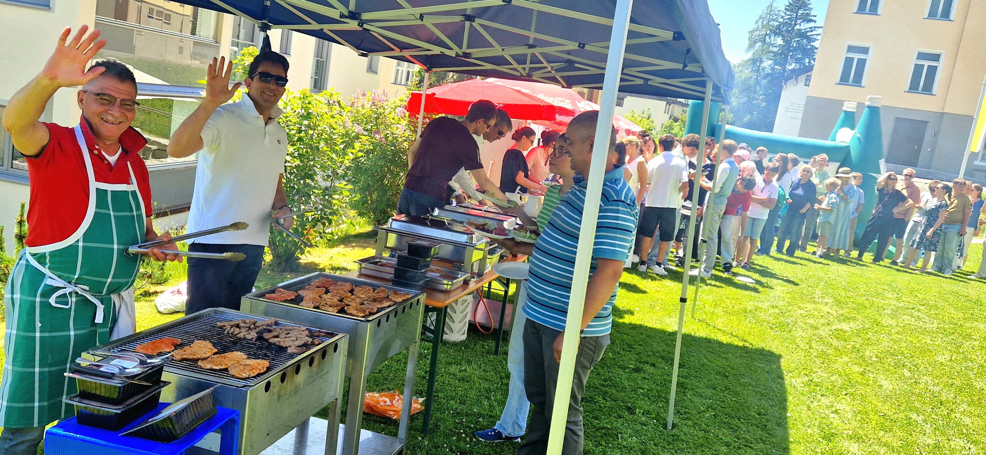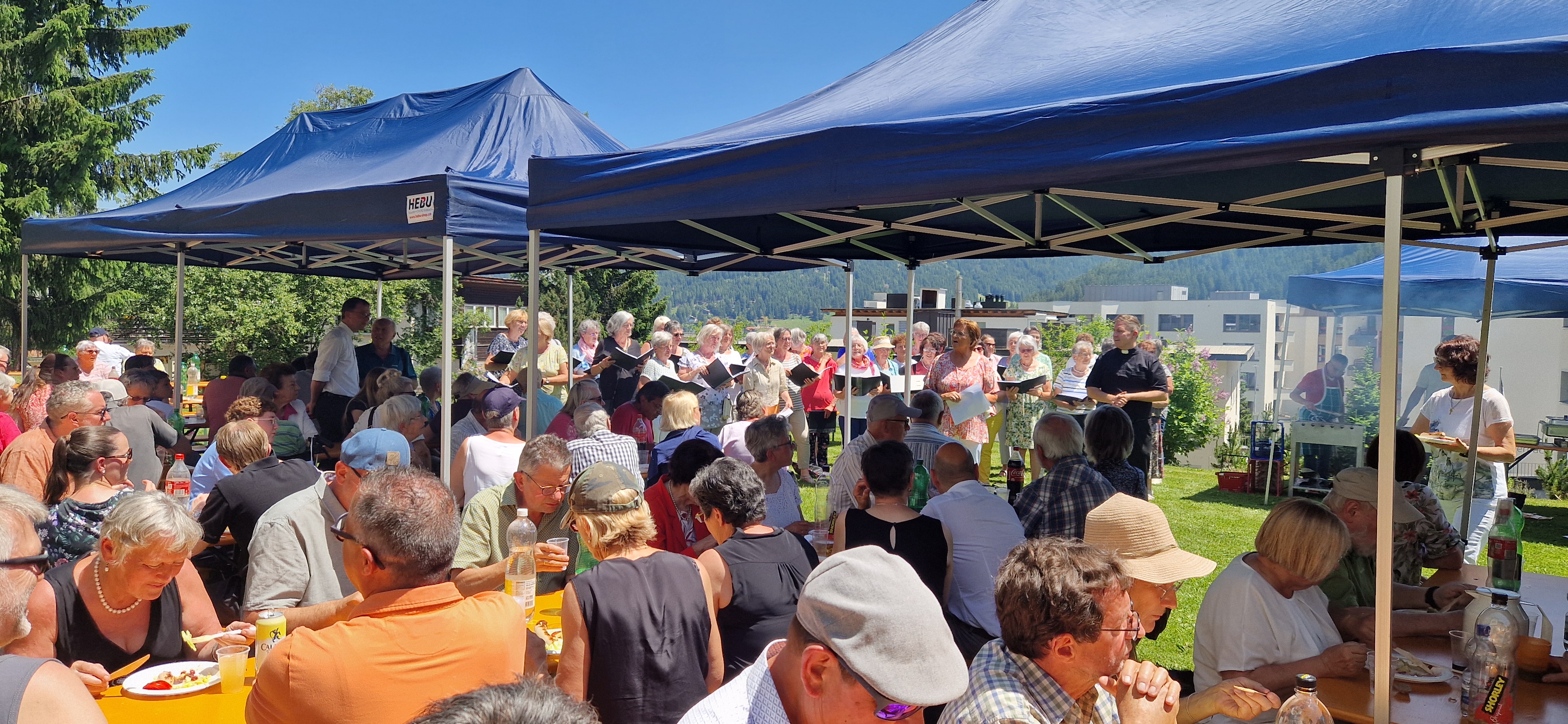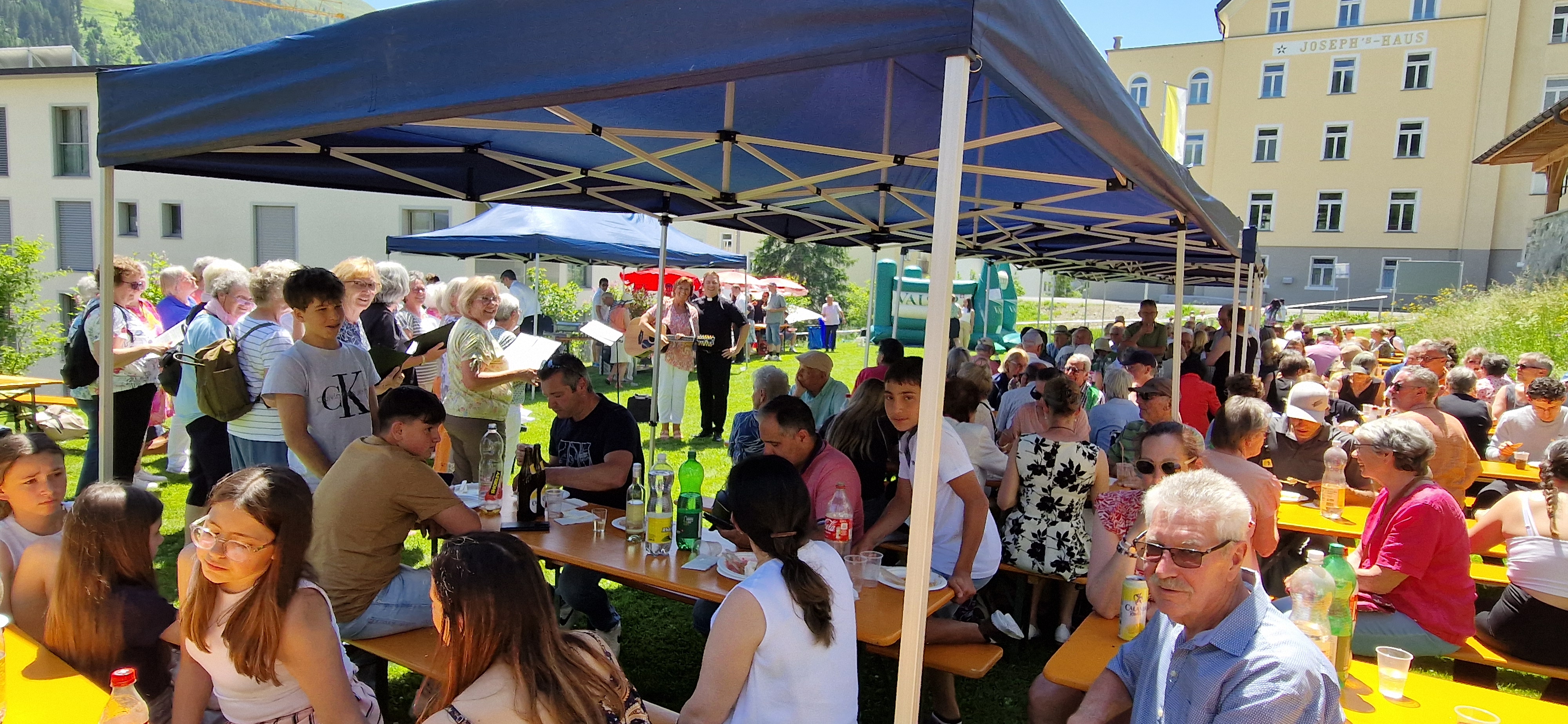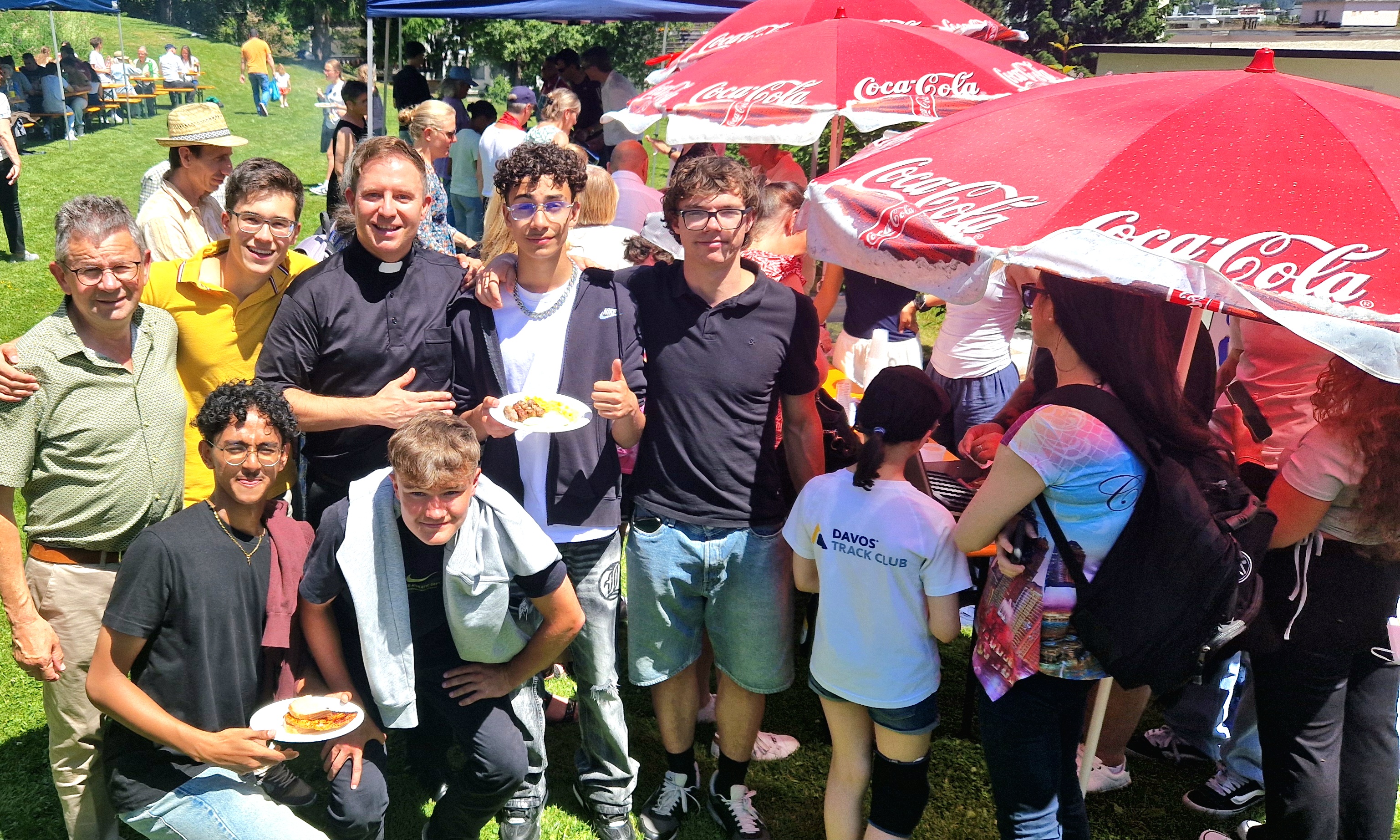 Beim Pfarreifest auf der Pfarrwiese sorgten Grilladen, Kuchen und ein tolles Kinderprogramm für beste Stimmung. Das bunte Gemeindefest zeigte eindrucksvoll: Die katholische Kirche in Davos verbindet Generationen.