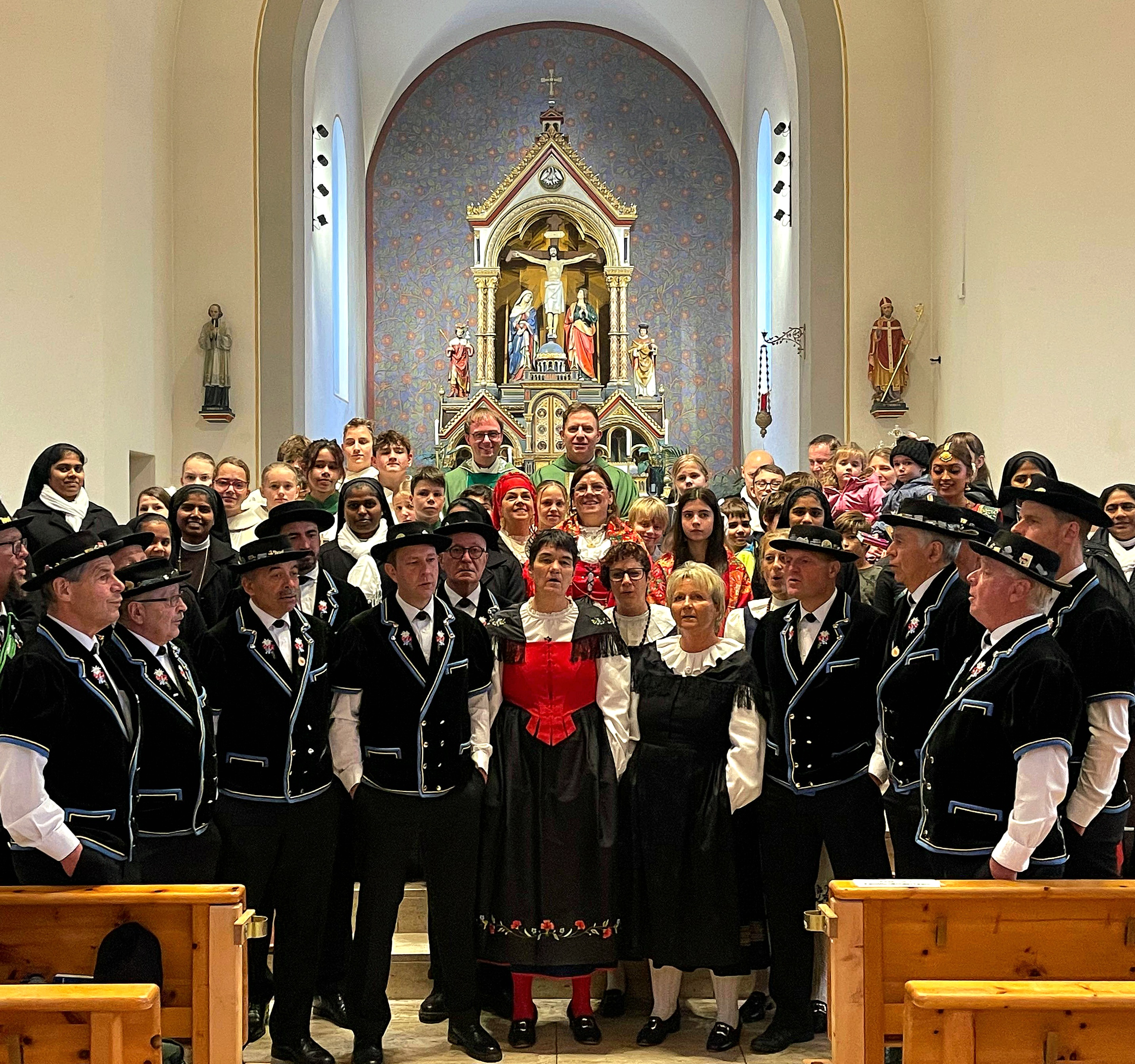 Die Festmesse am Tag der Völker in der voll besetzten Marienkirche bot einen würdigen und bewegenden Auftakt zu einem Festtag von Davos für Davos. Unter dem Leitgedanken der Einheit in Vielfalt als gemeinsame «Pilger der Hoffnung», einem zentralen Motto der Weltkirche im Heiligen Jahr, wurde die ganze Breite katholischer Gemeinschaft und kultureller Vielfalt sichtbar. Landestypische Trachten aus Portugal, Kroatien, Italien und der Schweiz, gekonnte Jodleresänge des Jodlerchörli Parsenn, schwungvolle Musik aus Kroatien sowie ein ansprechender liturgischer Tanz der Davoser Mädchengruppe aus Indien/Sri Lanka, verliehen der Eucharistiefeier ein internationales Flair und Gepräge. Jugendliche und Ordensschwestern wirkten als Lektoren sowie bei den Fürbitten mit. Dekan Susak gelang es mit einer kurzen, prägnanten Predigt, alle Anwesenden mitzunehmen und zu verbinden – als Schwestern und Brüder im Glauben, die in der katholische Kirche eine gemeinsame Heimat haben, egal wo sie leben. Da Leib und Seele zusammen gehören, führte der Weg nach der Festmesse unmittelbar ins Pfarreizentrum, wo die kulinarische Weltreise weiterging.