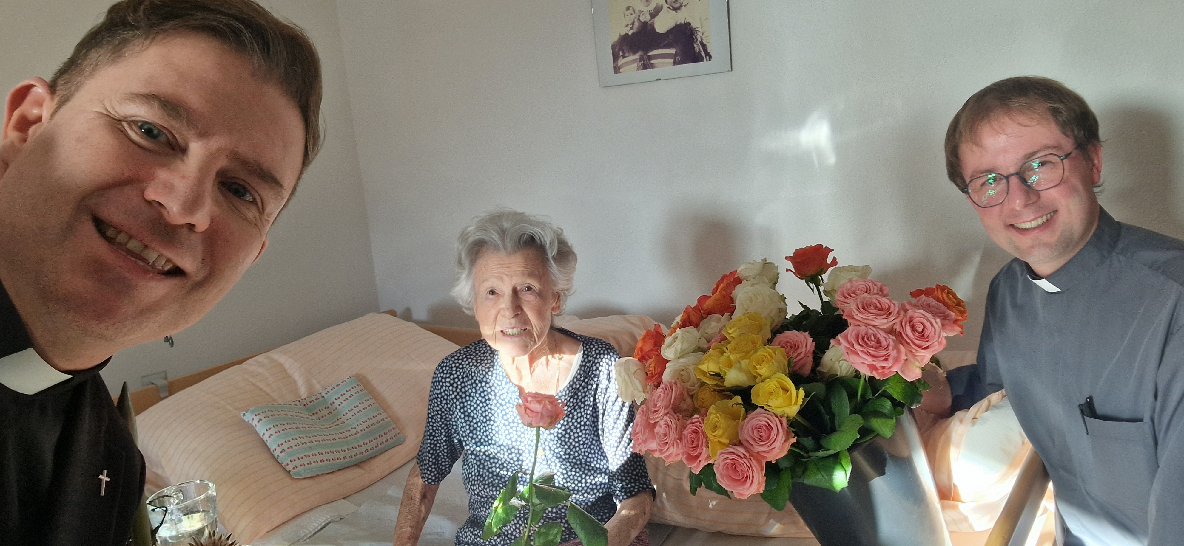 Kurz vor Weihnachten überbrachten Vikar Niederberger und Dekan Susak im Namen der Pfarrei einen farbenfrohen Rosengruss mit einem Weihnachtsbrief an über 70 Senioren.