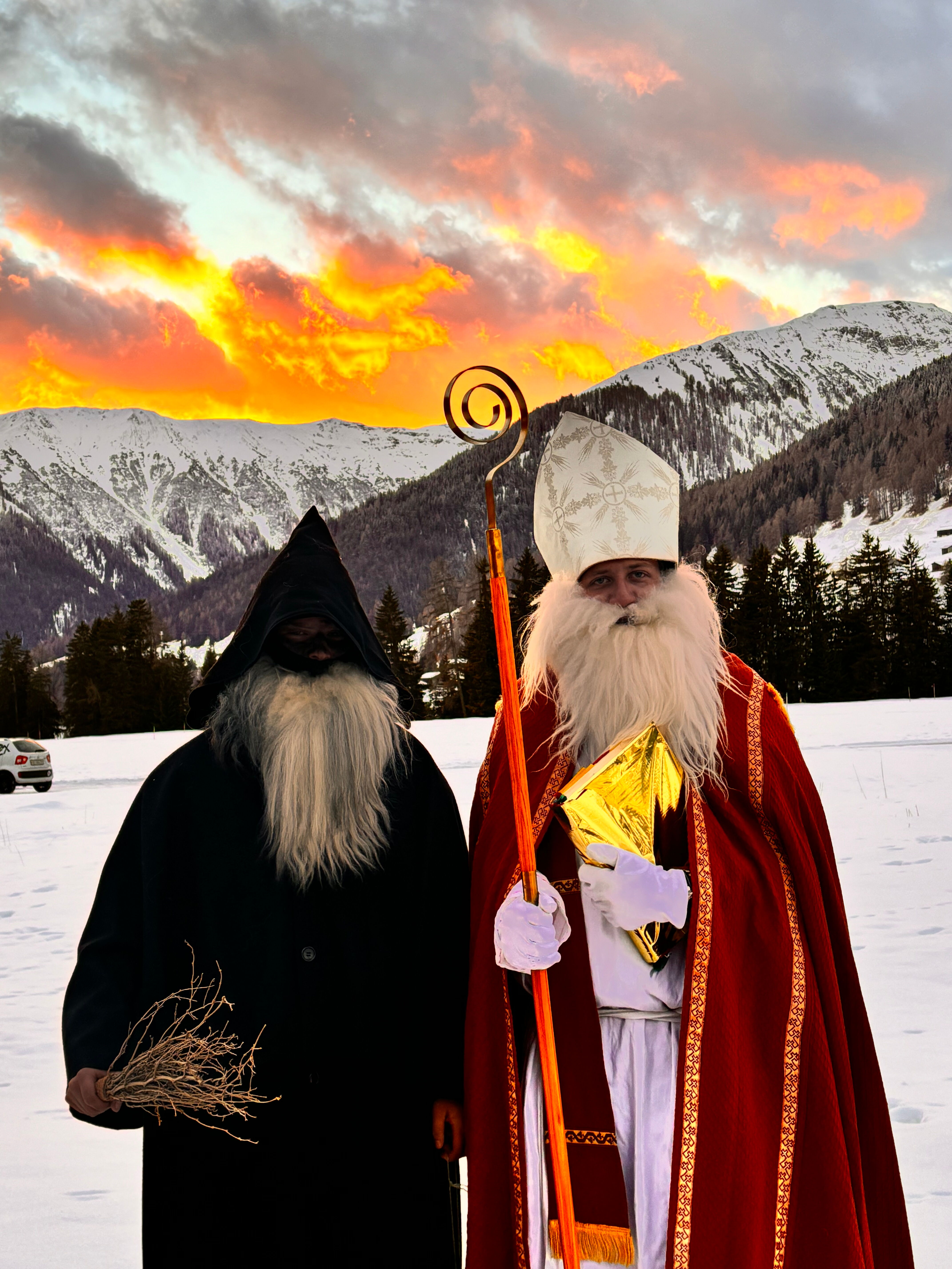 Am Samstag besuchen Samichlaus und Schmutzli um 17 Uhr die Familienmesse in der Herz-Jesu Kirche. Nach dem Gottesdienst warten sie draussen am Feuer auf die Kinder – mit warmem Punsch und feinem Stollen für einen gemütlichen Ausklang.