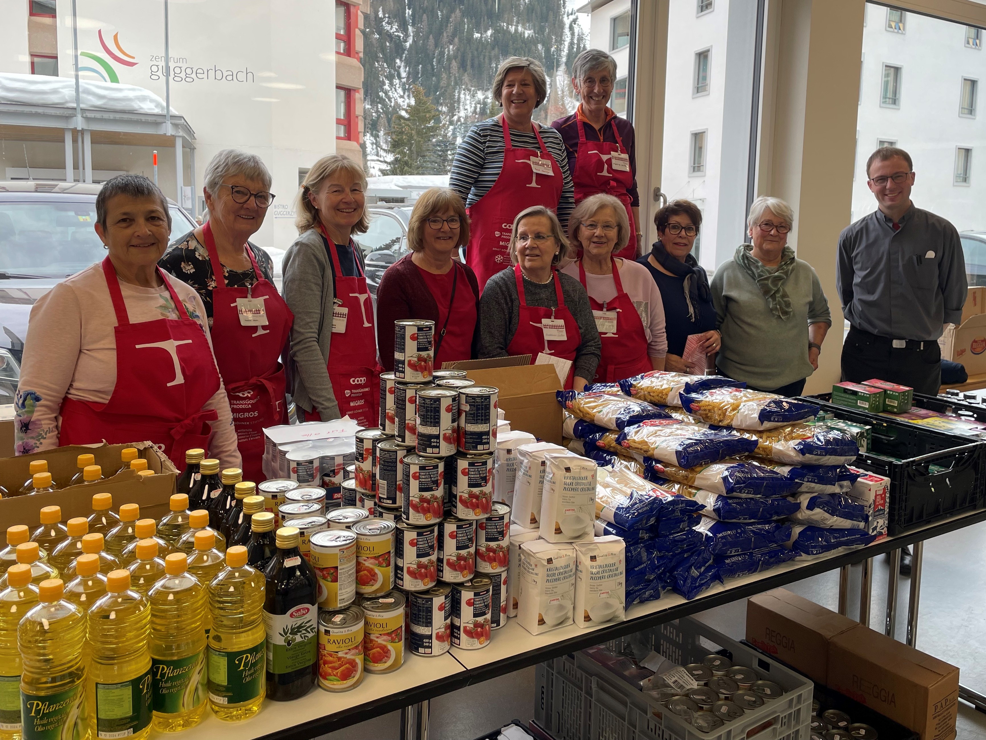 Zum Jubiläum sei ebenfalls der katholischen Pfarrei Davos für zehn Jahre kostenlose Bereitstellung von Räumen, Infrastruktur und personeller Ressourcen gedankt. Ebenso gedankt sei für ihren prägenden Einsatz in den letzten Jahren, den ehemaligen Verantwortlichen Rico Stocker, Roland Jenni, Vikar Pius Betschart, Rosalina Crameri und aktuell Vikar Ernst Niederberger, Bodo Näf und Monica Wioland. Ein grosser Dank gilt auch allen Spendenden und der katholischen Pfarreicaritas, die es ermöglichen, dass fehlende, lang haltbare Lebensmittel zugekauft und verteilt werden können. All dieser Einsatz ist ein Beispiel dafür, wie viel bewirkt werden kann, wenn Menschen gemeinsam Verantwortung übernehmen. Herzlichen Dank!