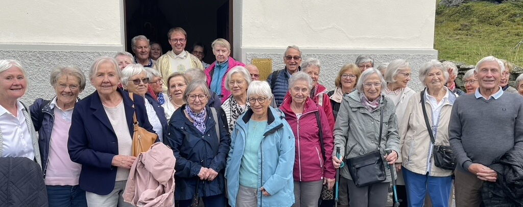 Mit unseren Seniorinnen und Senioren aus Davos durften wir am 20. August einen schönen Ausflug zur Tschuggen-Kapelle auf dem Flüelapass machen und in der Pilgerkapelle eine wohltuende Hl. Messe feiern. Anschliessend genossen über 35 Teilnehmende in der Schrämli`s Lengmatta ein feines Zvieri, das von Roswitha Bachmann grosszügig übernommen wurde. Dank der von Brigitte Segessenmann organisierten Fahrgemeinschaften war auch die An- und Rückreise bestens möglich. Es war ein wundervoller Tag mit schönsten Begegnungen und auf den mit Dankbarkeit zurückgeschaut werden darf.