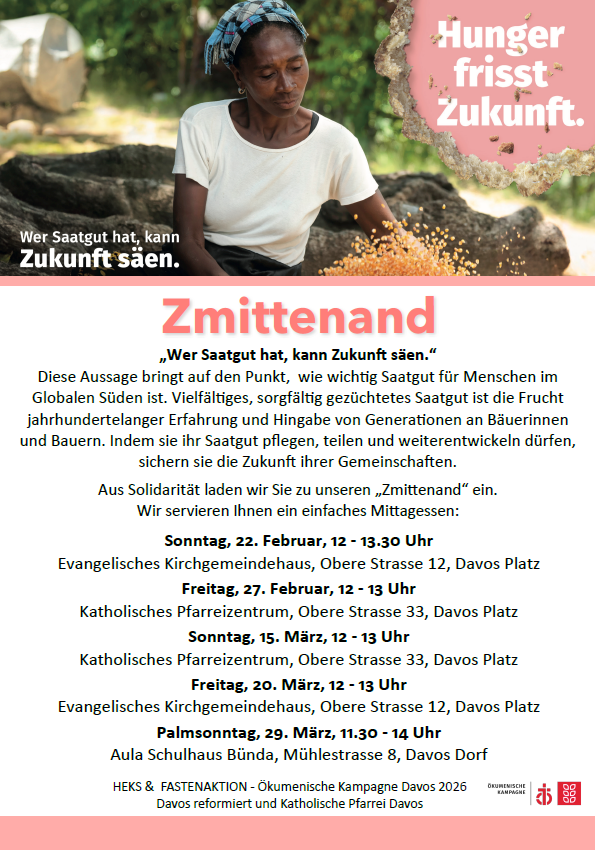 Am Sonntag, 8. März 2026, feiern die reformierten und katholischen Gemeinden um 10.00 Uhr in der Kirche Davos Wiesen einen ökumenischen Gottesdienst zur Fastenzeit.