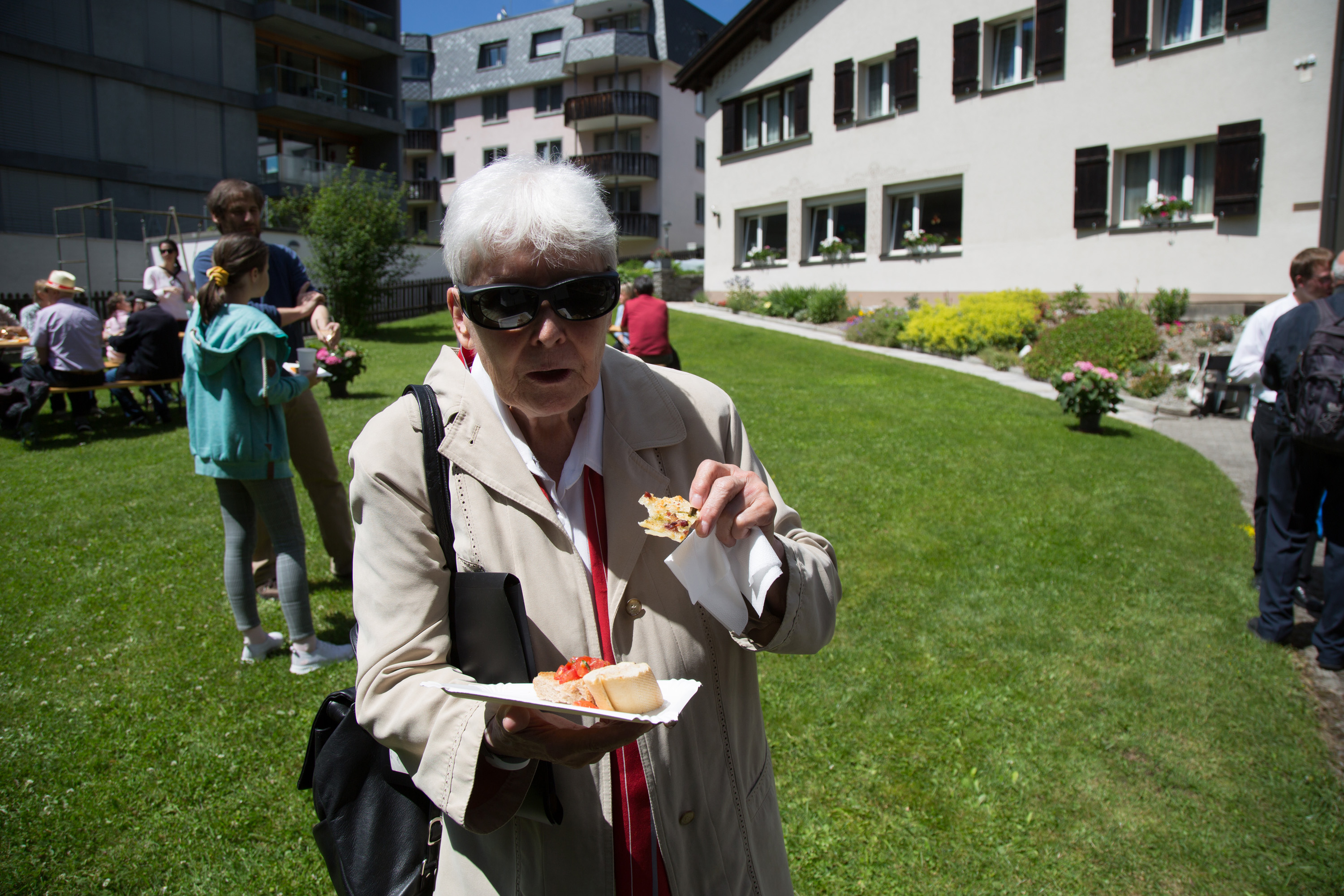 Vizepräsidentin Beate Rückert, Pfarreiratspräsident Simone Bonvissuto sowie Sozialdiakon Christian Pfeiffer von den reformierten Kirchgemeinden, drückten in ihren berührenden Grussworten ihre Dankbarkeit und Verbundenheit mit Pius Betschart aus. Der Kirchenchor umrahmte das Hochamt zum Patrozinium der Herz-Jesu-Kirche im Dorf unter der bewährten Leitung von Jürg Wasescha und Daniel Wioland an der Orgel, mit einer festlich dargebotenen lateinischen Messe. Als Dekan Susak zum Schluss treffende Dankworte des Abschieds fand, die sich im Lied «Bhüat di Gott, Pius» ausdrückten, wurde die Stimmung recht berührend. «Es wird nicht lange dauern, bis wir dich in Flims besuchen», meinte Susak, sichtlich gerührt. Mit einem grünen seidenbestickten Messgewand als Abschiedsgeschenk der Pfarrei, das dem neuen Pfarrer Pius Betschart unter grossem Applaus überreicht wurde, wurde deutlich, Priester kommen und gehen, Menschen kommen und gehen, aber einer bleibt: Jesus Christus. Nach dem Schlusssegen ging es zum reichhaltigen Apéro auf die Pfarrwiese, den Messmerin Ida Agnello und Hedy Oettgen mit Team vorbereiteten hatten. Ernst Niederberger, der sein Pastoraljahr mittlerweile erfolgreich abgeschlossen hat, wird zunächst als Diakon und im nächsten Jahr als Neupriester, die Stelle als Davoser Vikar übernehmen. Bei bestem Wetter und einer herzlichen Stimmung ging ein denkwürdiger Tag im Leben der Davoser Pfarrei zu Ende.