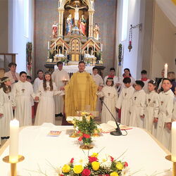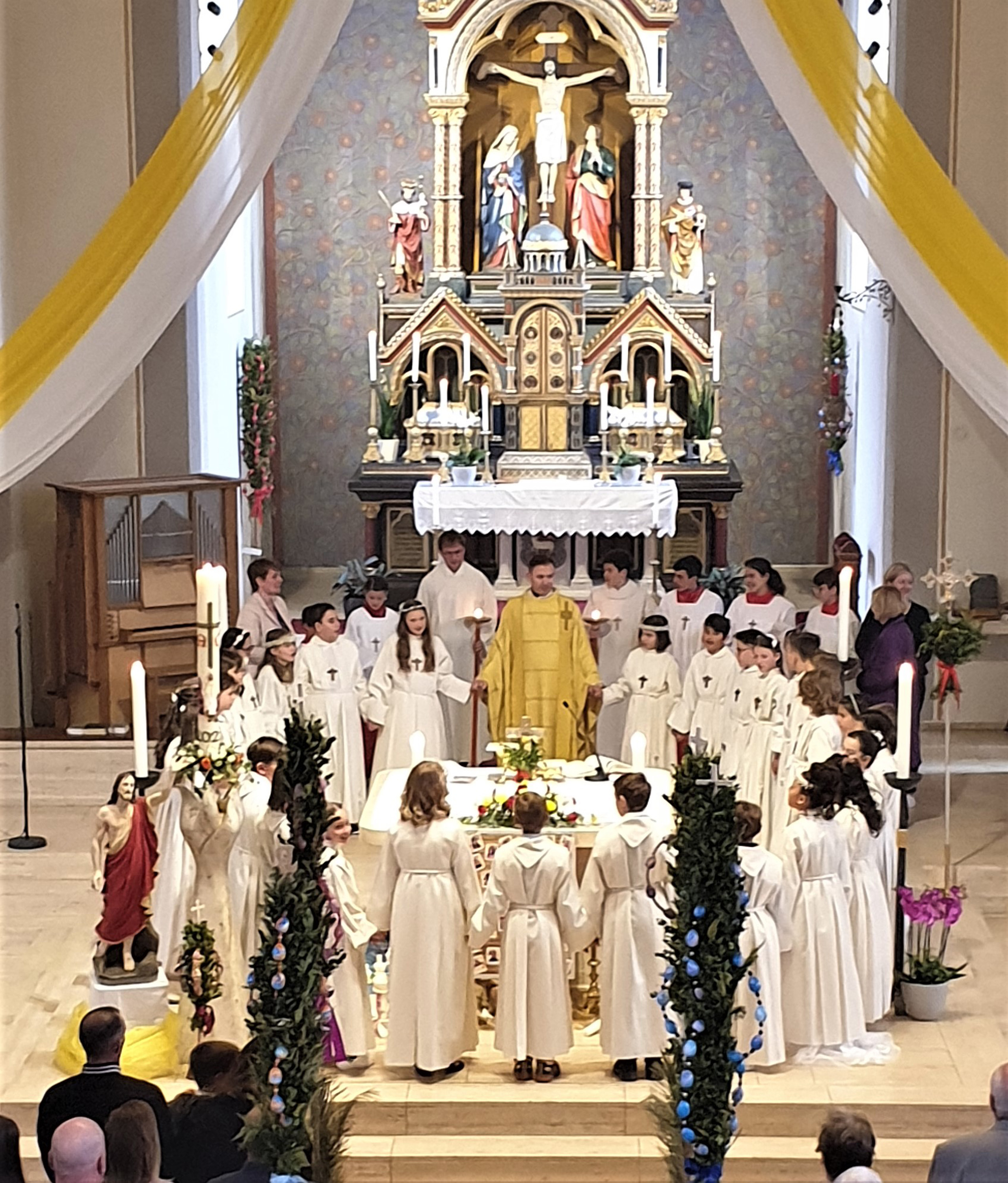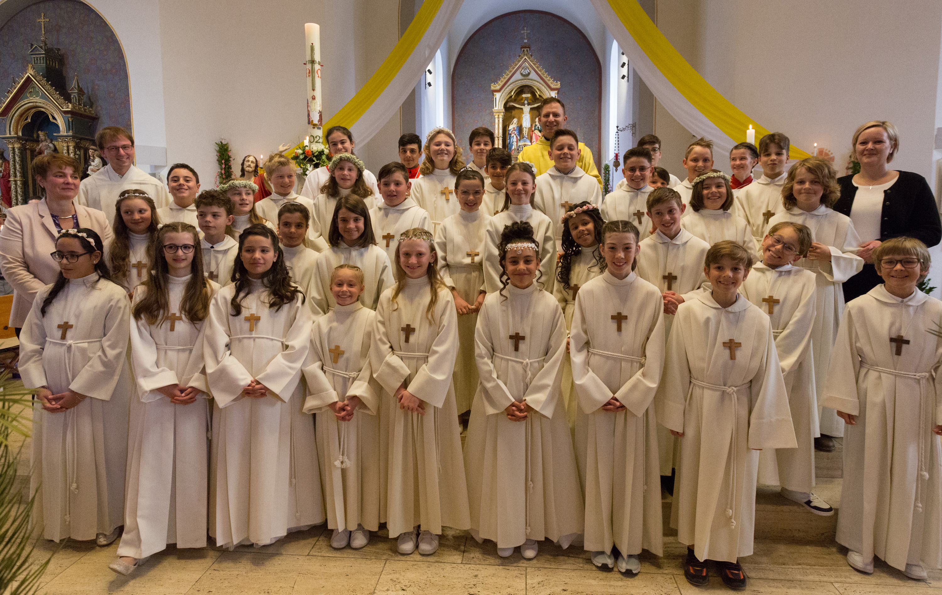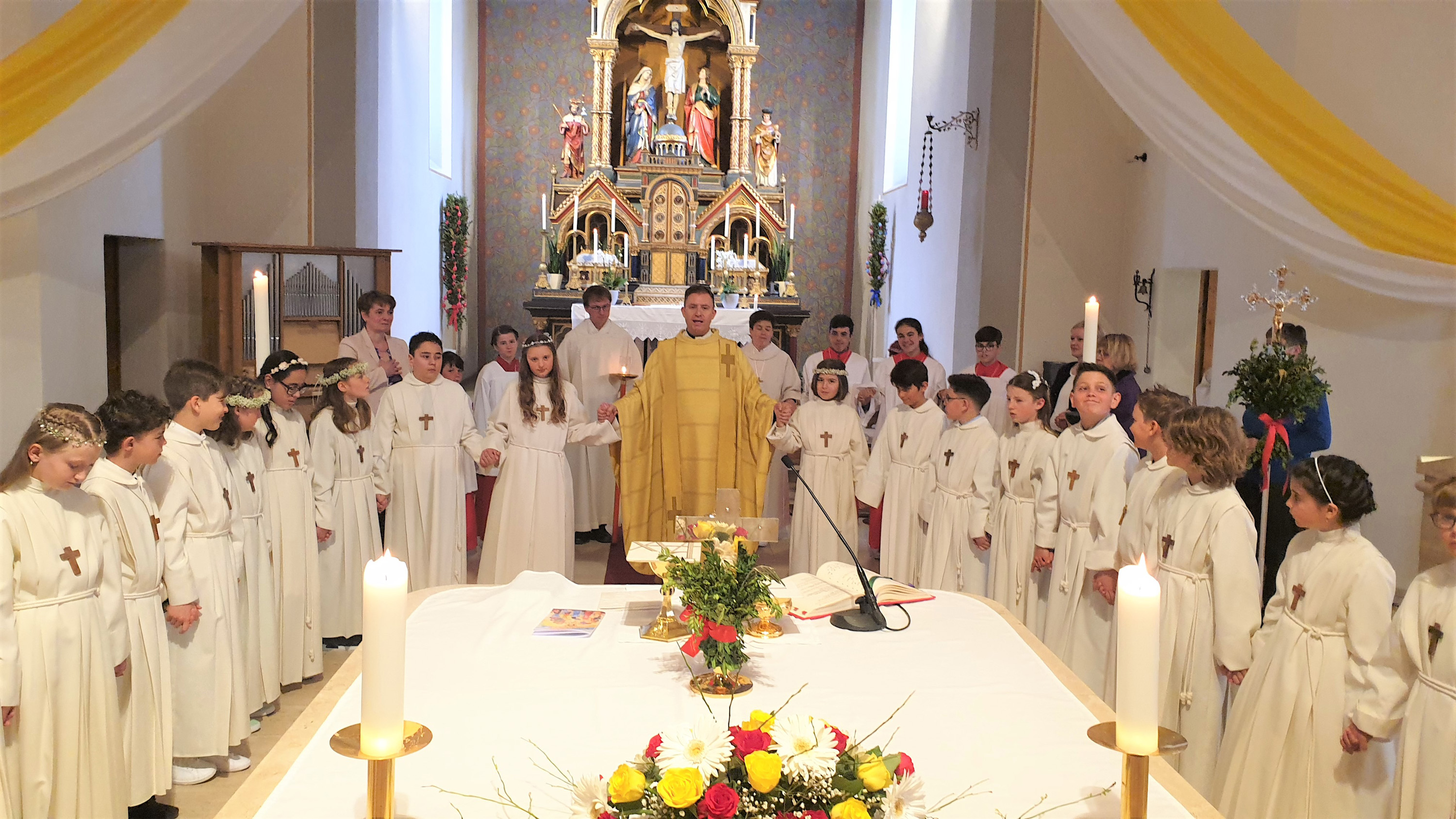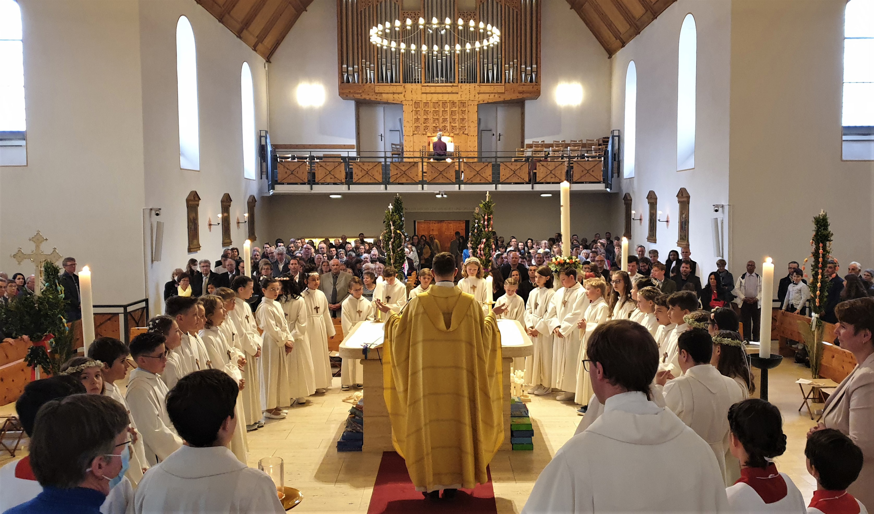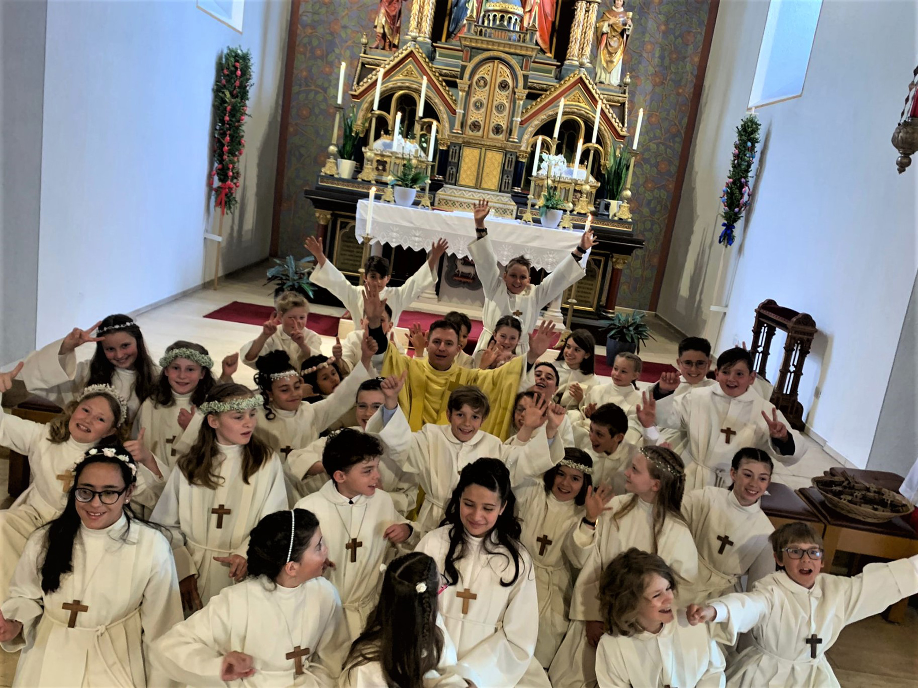 Neben dem Religionsunterricht und ausserschulischen Projektanlässen wie einem Weekend im Kloster Einsiedeln, Gruppenstunden im Pfarreizentrum sowie sozialem und kirchlichem Engagement, haben sich vor allem auch die Eltern und Familien während der Vorbereitungszeit rege engagiert und so das Pfarreileben generationsübergreifend bereichert. Entsprechend lebendig, würdig und berührend zugleich, konnte so eine Erstkommunion gefeiert werden, welche die Herzen aller in der übervoll besetzten Marienkirche berührte. Die Gebetstexte der Kinder und ihre frohmachenden Lieder bereiteten einen fruchtbaren Boden für das Geheimnis des Glaubens, den ersten Empfang des Sakramentes der Eucharistie. Das Team der katholischen Kirchgemeinde mit Sandra Schärli, Petra Homberger, Monica Wioland, Ernst Niederberger, Vikar Pius Betschart und Pfarrer Kurt Susak, verstand es wieder einmal mehr, den Fokus kirchlichen Tuns – trotz aller Herausforderungen – auf den zu richten, der die Quelle und das Fundament der Kirche ist: Jesus Christus. Durch solch ein Engagement wächst die Kirche und ist für alle sinnstiftend und einladend.