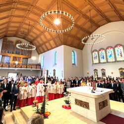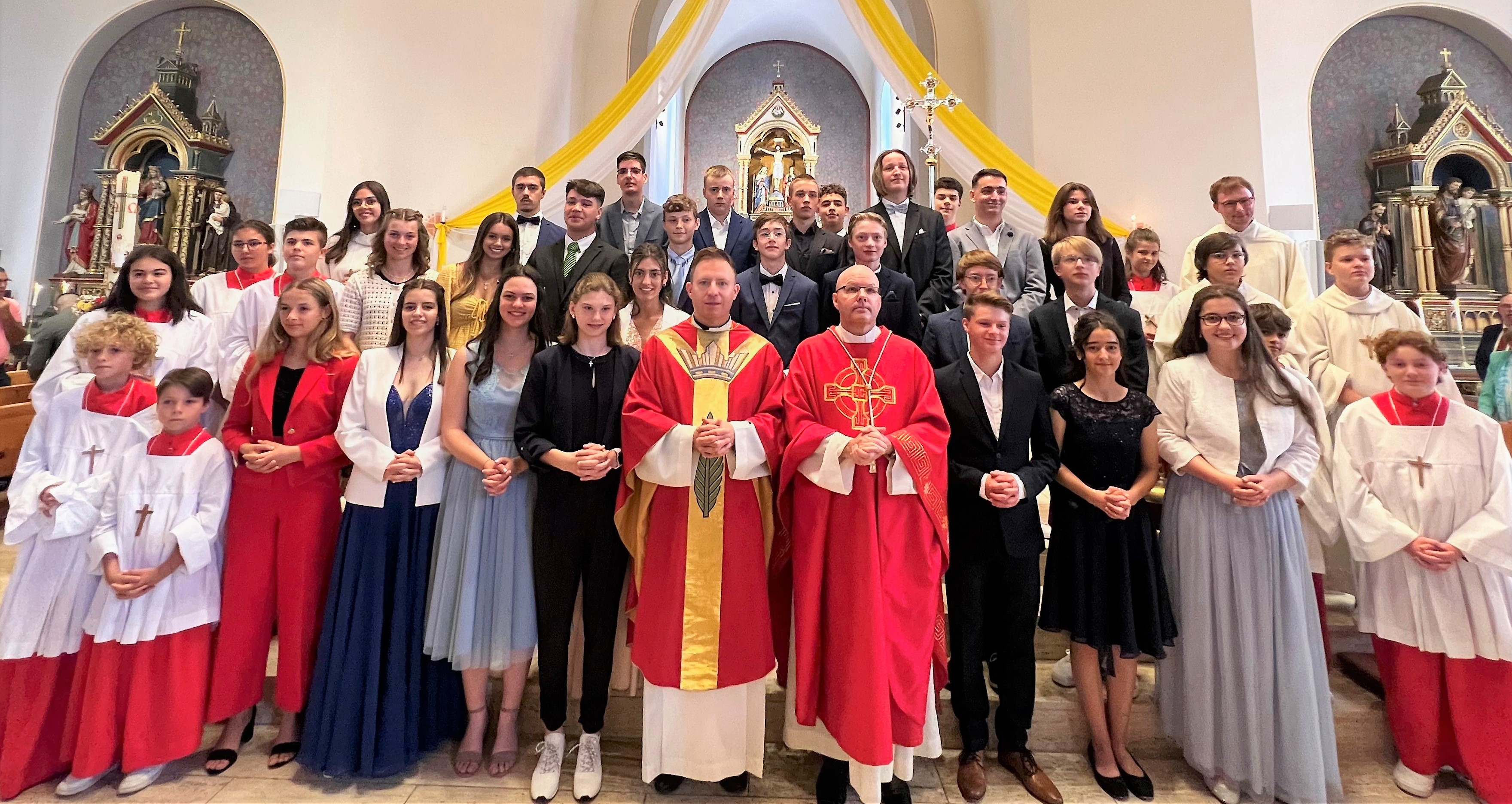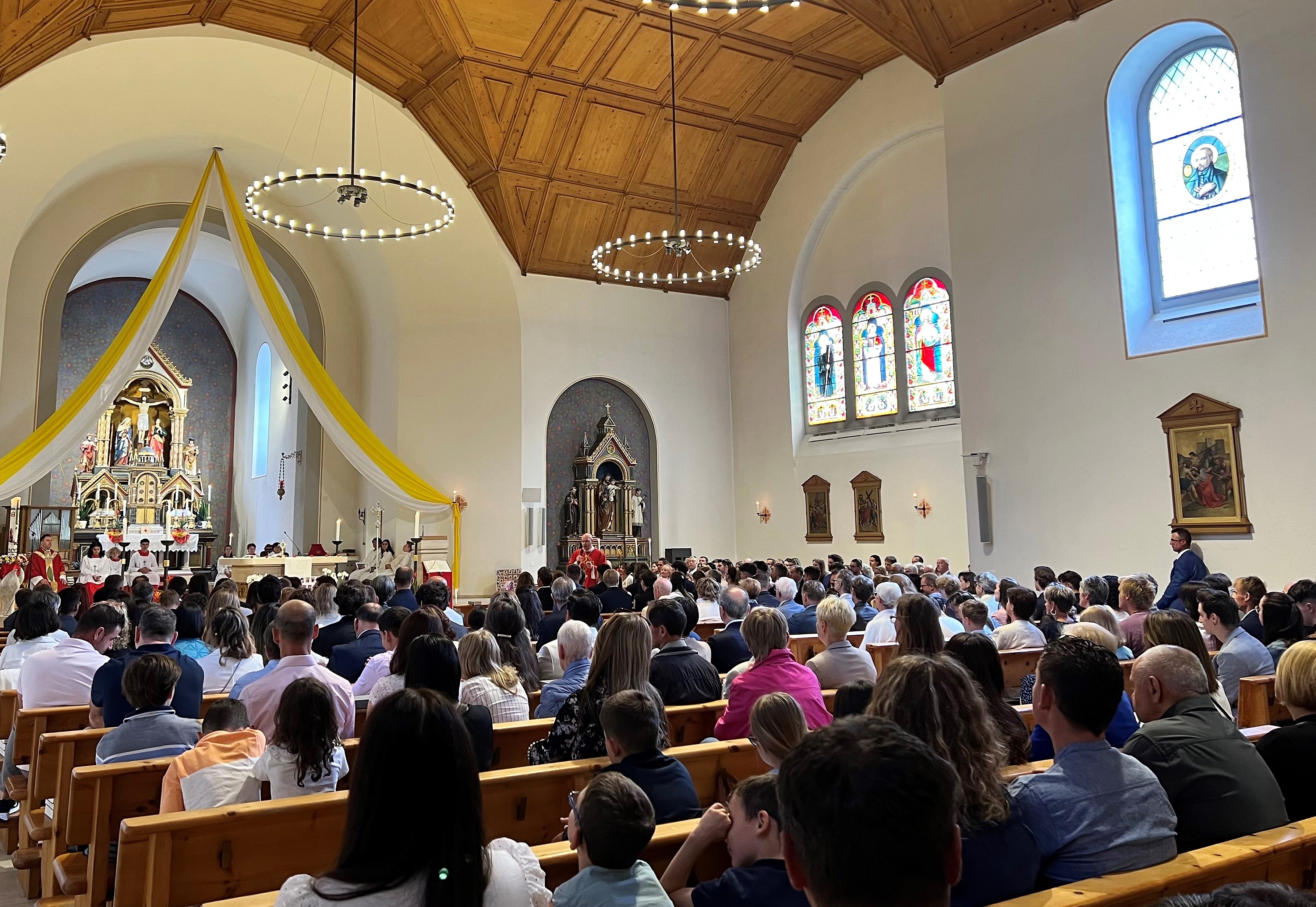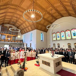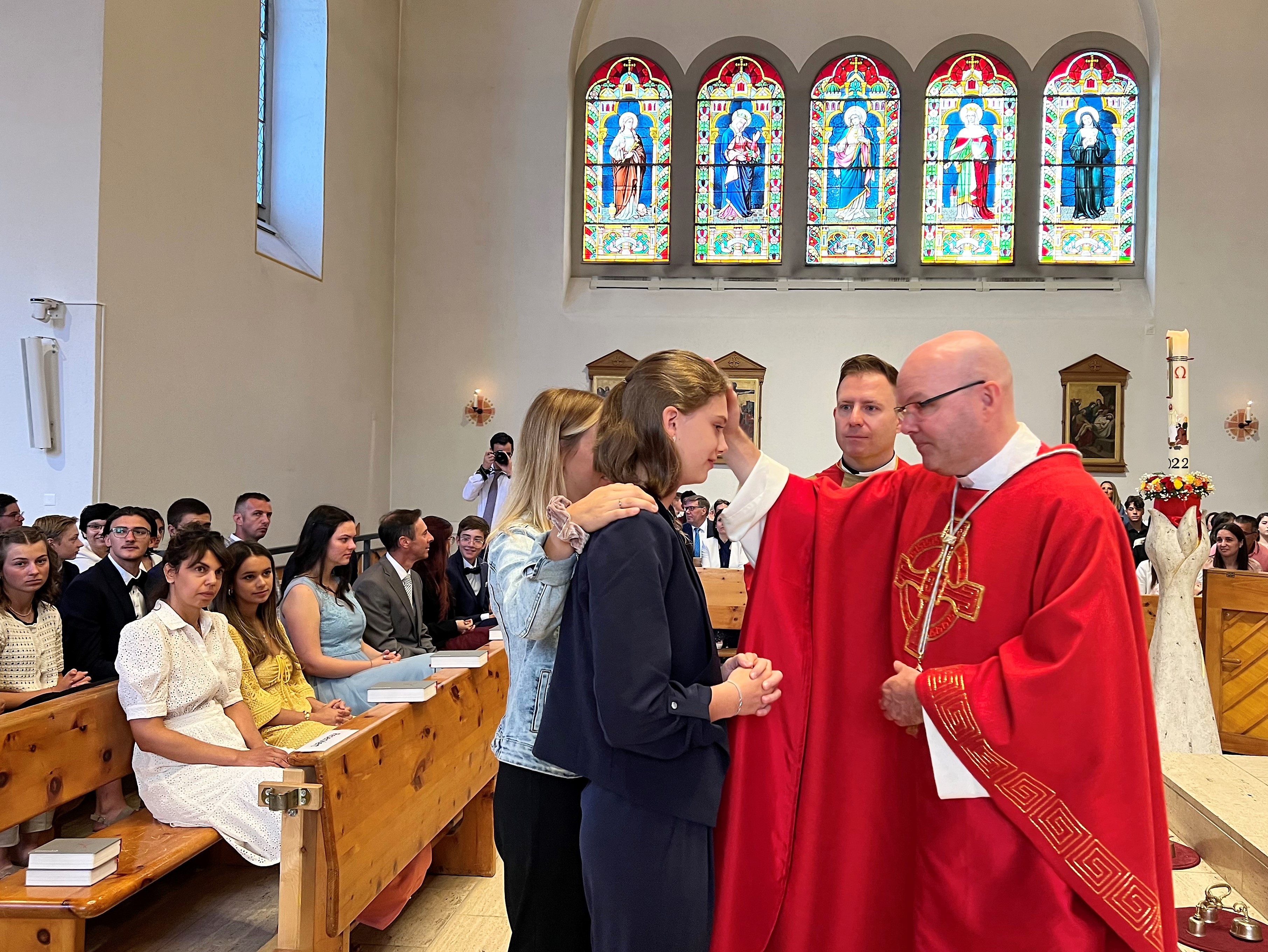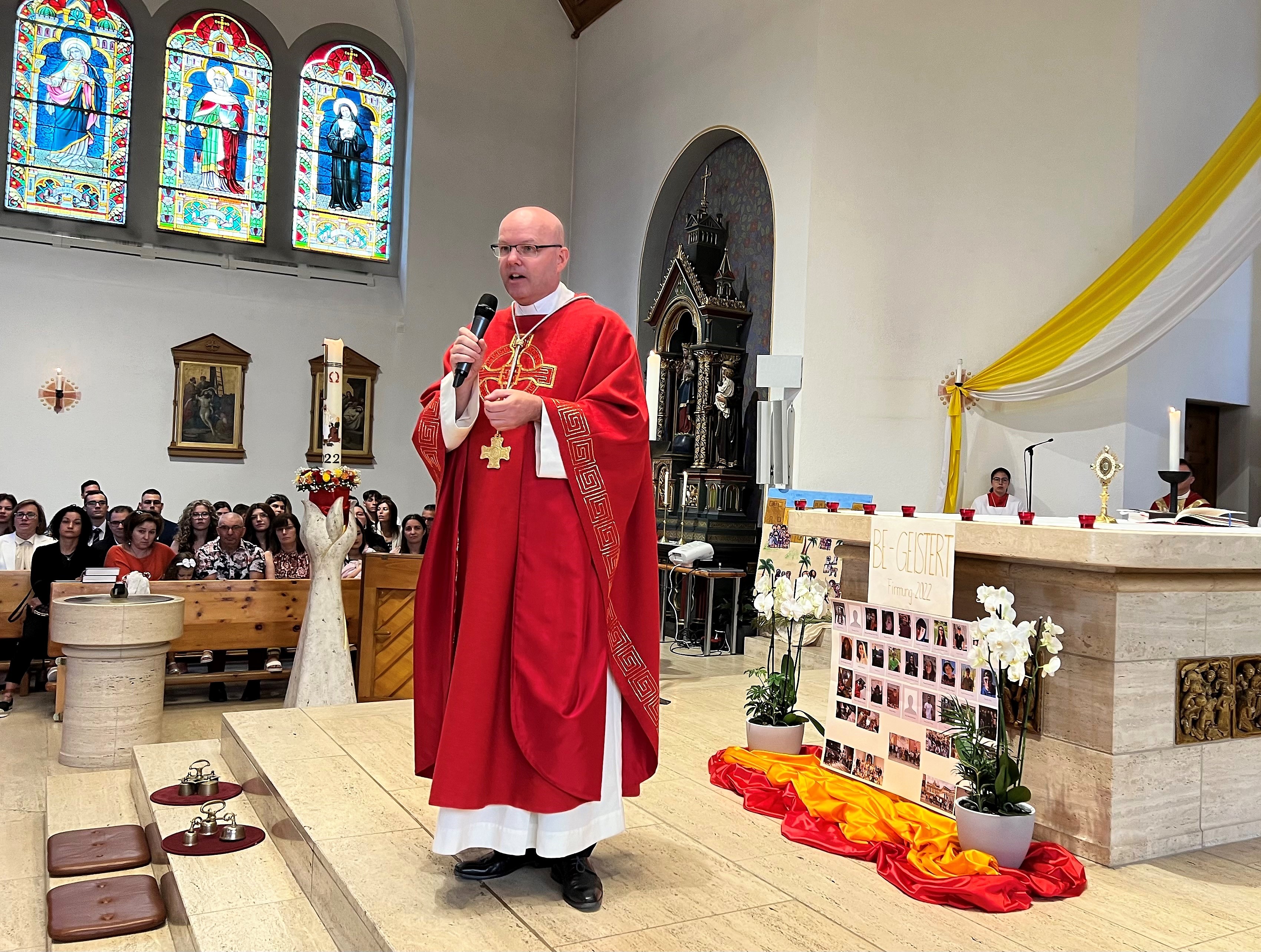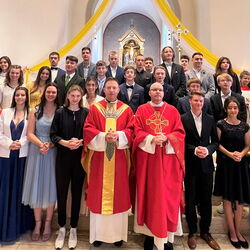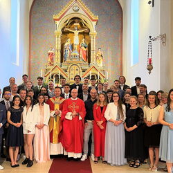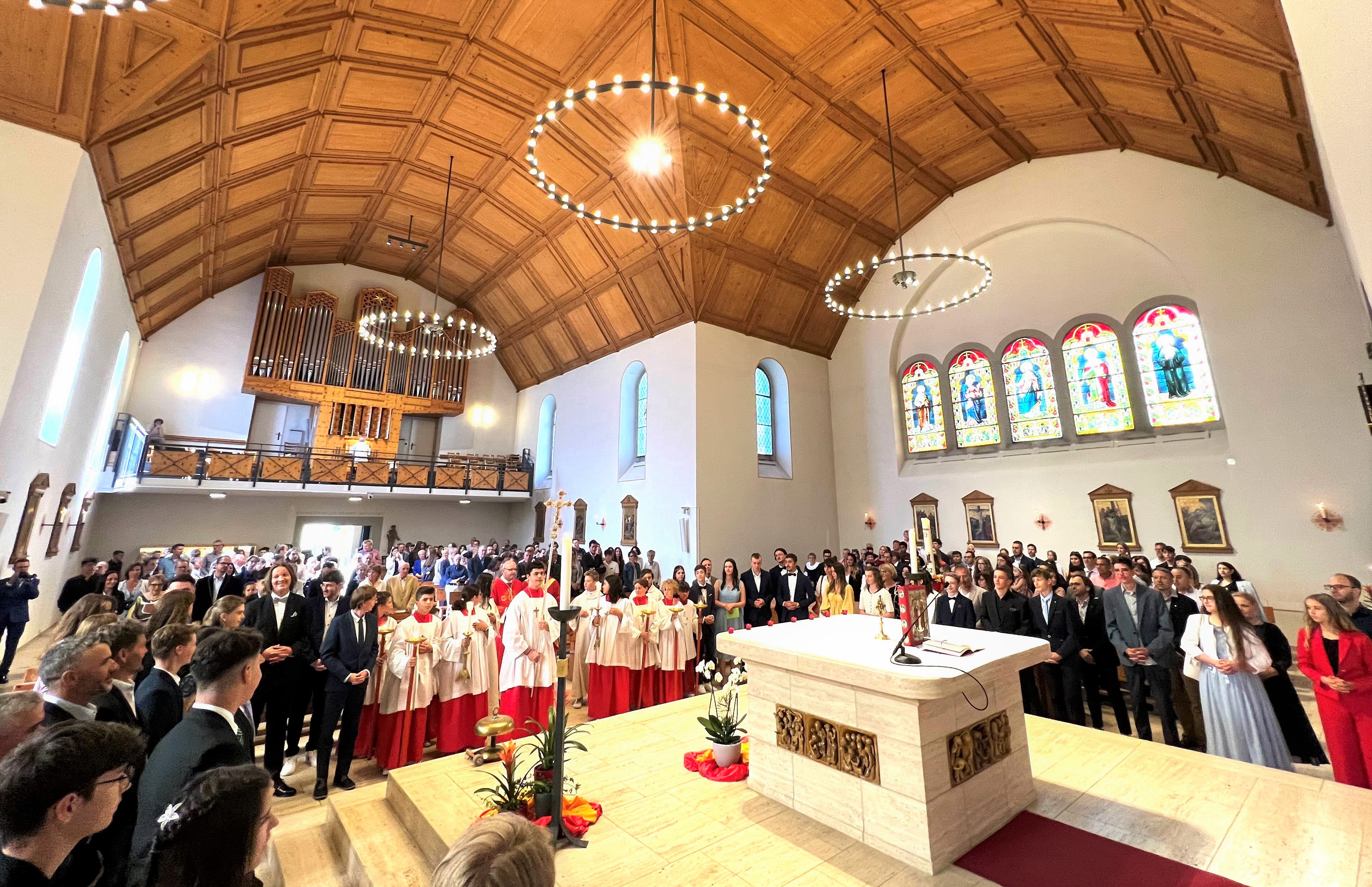 Unter dem Motto „Be-Geistert“ fand am vergangenen Sonntag eine begeisterte und begeisternde Firmung in der Marienkirche statt, bei der der Funke des Heiligen Geistes wahrhaft übersprang. Mit dem Empfang des Firmsakramentes durch den diesjährigen Firmspender Generalvikar Can. Jürg Stuker aus Chur, haben sich über 30 junge Mitchristen bewusst für den weiteren Lebensweg mit Gott und der Kirche entschieden. Es war ein besonders intensives Vorbereitungsjahr. Neben dem wöchentlichen Religionsunterricht, einem Lagerwochenende mit der Pfarreijugend, Gottesdiensten, Gebetstreffen, caritativen Projektanlässen, Filmabenden, intensiven Einzelgesprächen und der abschliessenden Firmbeichte, fand in den Frühlingsferien auch die beliebte Romreise statt. Zudem wartete der diesjährige Firmjahrgang mit etwas bisher in Davos Einmaligem auf: dem vielbeachteten Passionsspiel am Palmsonntag. Alleine dieses Engagement zeigt was „Be-Geisterung“ entfachen kann. Die Verantwortlichen der Kath. Pfarrei Davos investieren viel Zeit und Herz in die kirchliche Jugendarbeit. Das Konzept von Eigenverantwortung und Begeisterung im Glauben geht auf und zahlt sich aus. Nicht wenige Jugendliche bleiben der Kirchgemeinde verbunden und engagieren sich auch nach der Firmung weiterhin aktiv am Gemeindeleben. Wenn der Funke überspringt, die Vermittlung von Glaubensinhalten auf verbindliche und fortschrittliche Weise geschieht, wenn Sinn und Tiefgang das Geheimnis des Glaubens erschliessen, Freude und Spass nicht zu kurz kommen und der Dreifaltige Gott im Mittelpunkt steht, dann sind junge Christen die Zukunft der Kirche. Über 30 haben am vergangenen Sonntag mit der Firmung «JA» dazu gesagt. Eine Freude für die Kath. Pfarrei Davos!