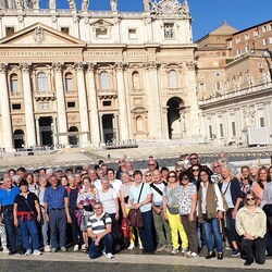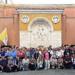 Ein abwechslungsreiches und bis ins Detail organisierte Programm erwartete die Davoser. Nach einem Zwischenhalt im weltbekannten Dorf Brescello von «Don Camillo und Peppone», lag am nächsten Tag bereits das Ziel vor Augen: Rom! Eine imposante Lasershow «Welcome to Rome» präsentierte das geschichtliche Werden der ewigen Stadt mitsamt den Orten, die im Laufe der Woche live besichtigt wurden. Fontana di Trevi, Piazza Navona, Engelsburg, Pantheon, Lateranbasilika, Scala Sancta, Santa Croce in Gerusalemme, Domitillakatakomben, Basilika St. Paul vor den Mauern, Vatikan, Petersdom und vieles mehr, begeisterten die grosse Pilgergruppe im Alter von 20 bis 88 Jahren. Eine professionelle Führung durch die vatikanischen Museen mit der Sixtinischen Kapelle waren Vorboten für die Papstaudienz am Mittwoch. Dank guter Kontakte durch Dekan Susak hatten die Bündner die bestmöglichen Plätze und konnten Papst Franziskus sowie die würdevolle Stimmung auf dem Petersplatz aus nächster Nähe erleben. Mit dem apostolischen Segen gestärkt ging es zu einer Spezialführung durch das Gardequartier, ermöglicht durch die drei aktiven Davoser Schweizergardisten.