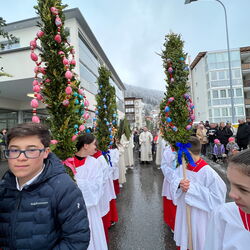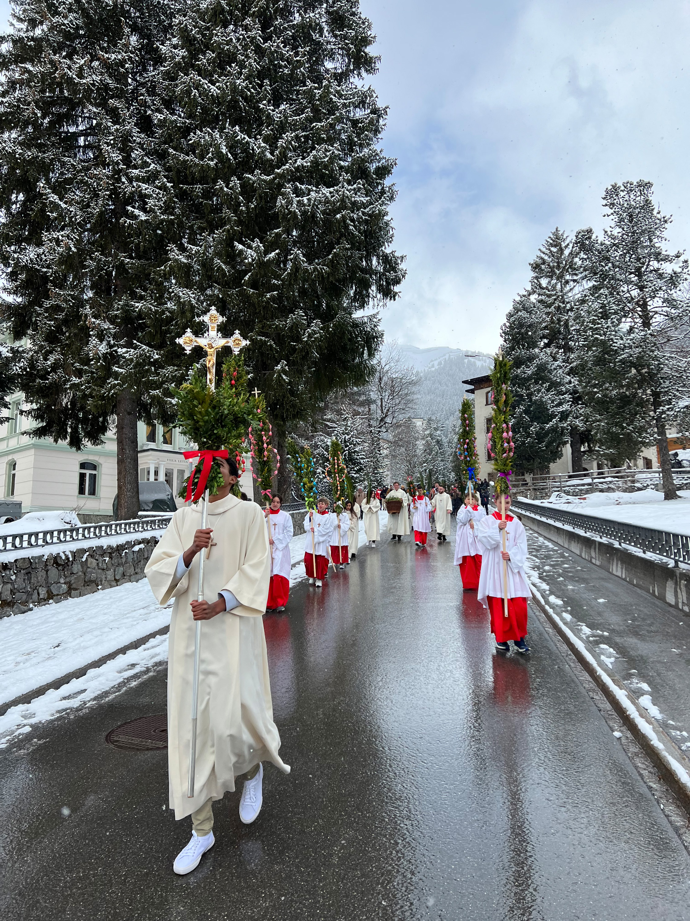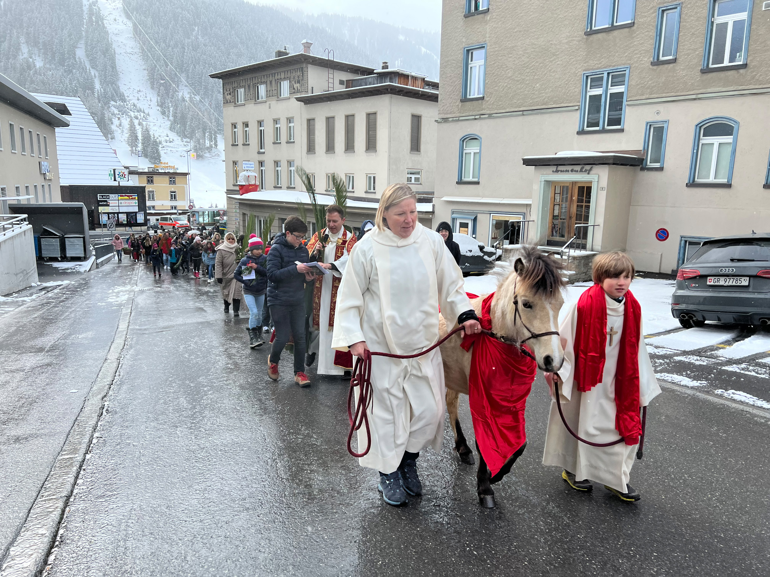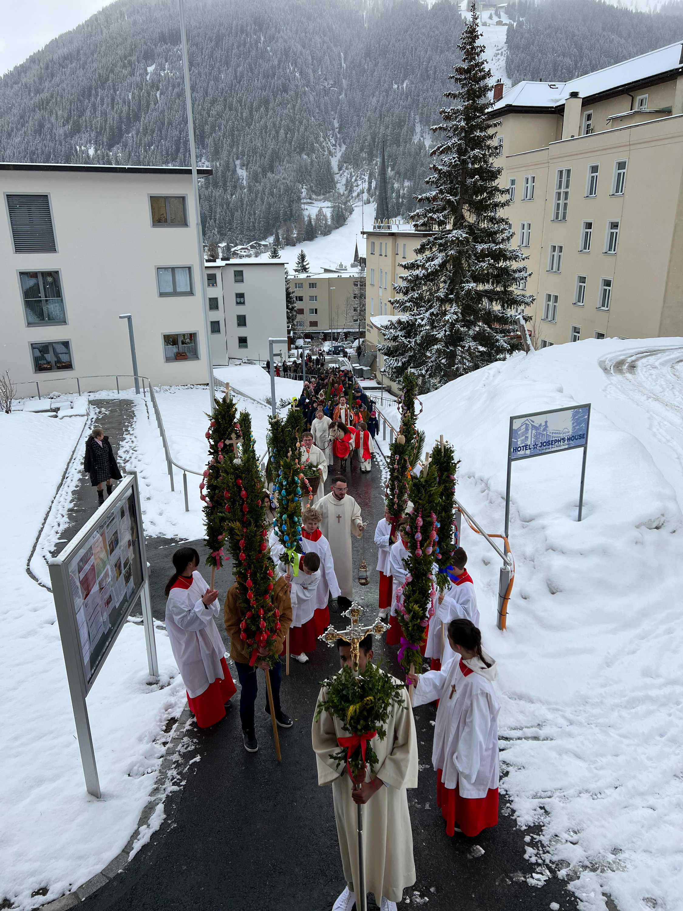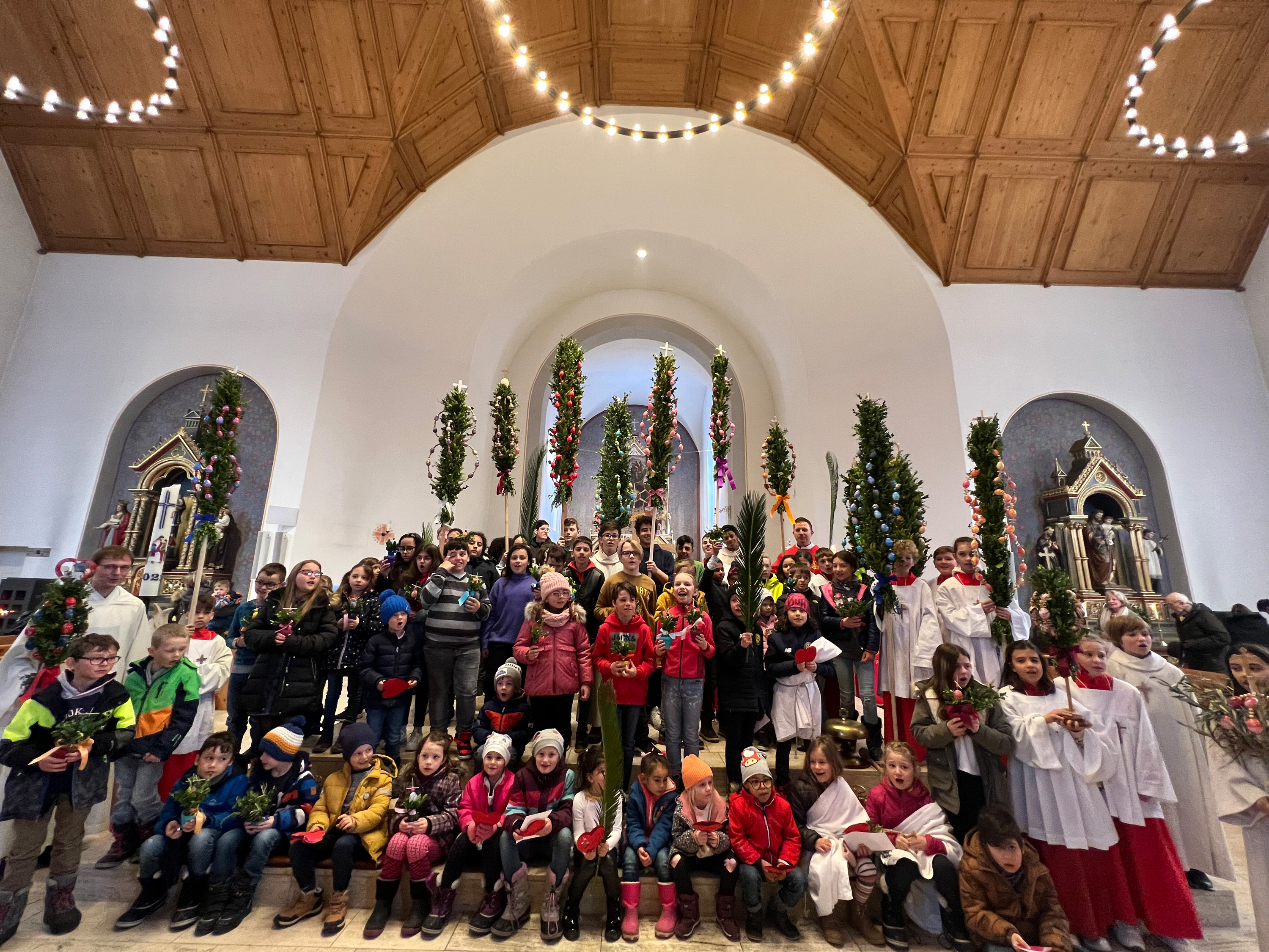 Farbenfrohe Palmgebinde, strahlende Gesichter, volle Kirchen: der Palmsonntag am vergangenen Wochenende lockte ausserordentlich viele Familien, Kinder, Jugendliche und Gläubige der katholischen Pfarrei Davos zur den drei Palmprozessionen und Festmessen. Alt und Jung konnten sich einstimmen auf das zentrale Geheimnis des christlichen Glaubens, das in der Heilige Woche mit dem Gründonnerstagabend, Karfreitag und Ostern (die Feier von Leiden, Tod und Auferstehung Jesu Christi) den Höhepunkt im Kirchenjahr erreicht.