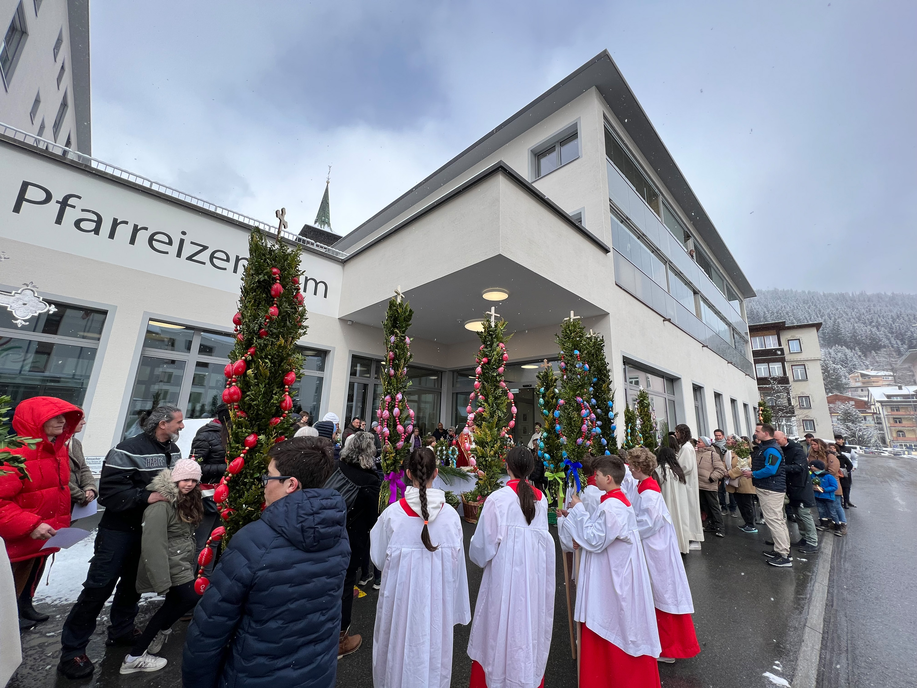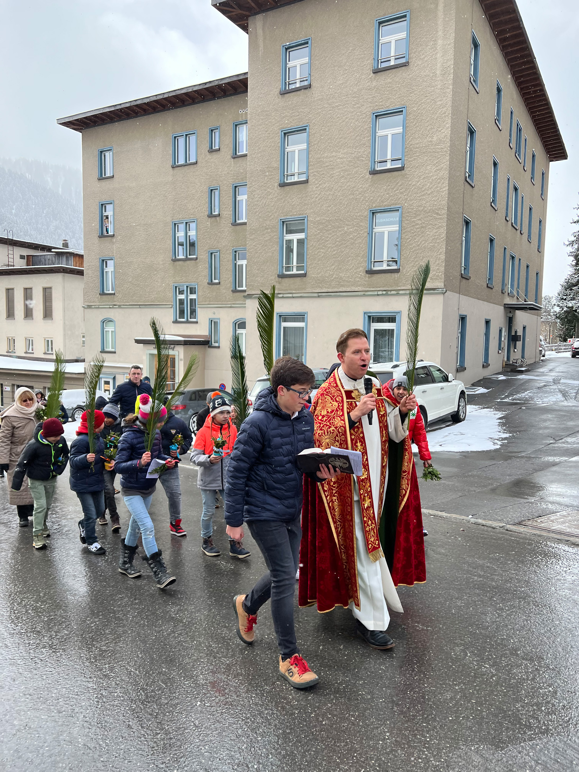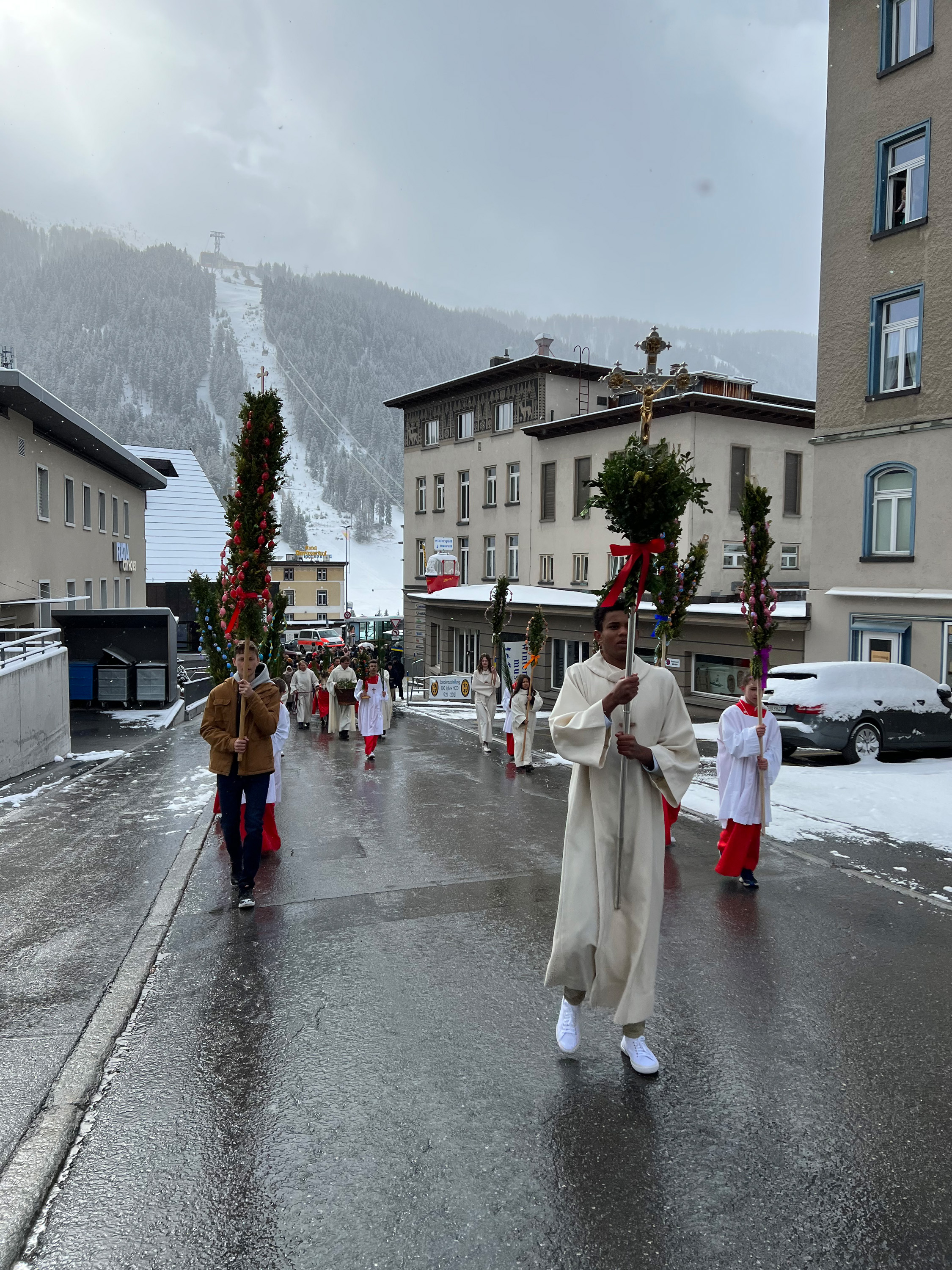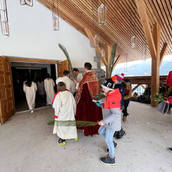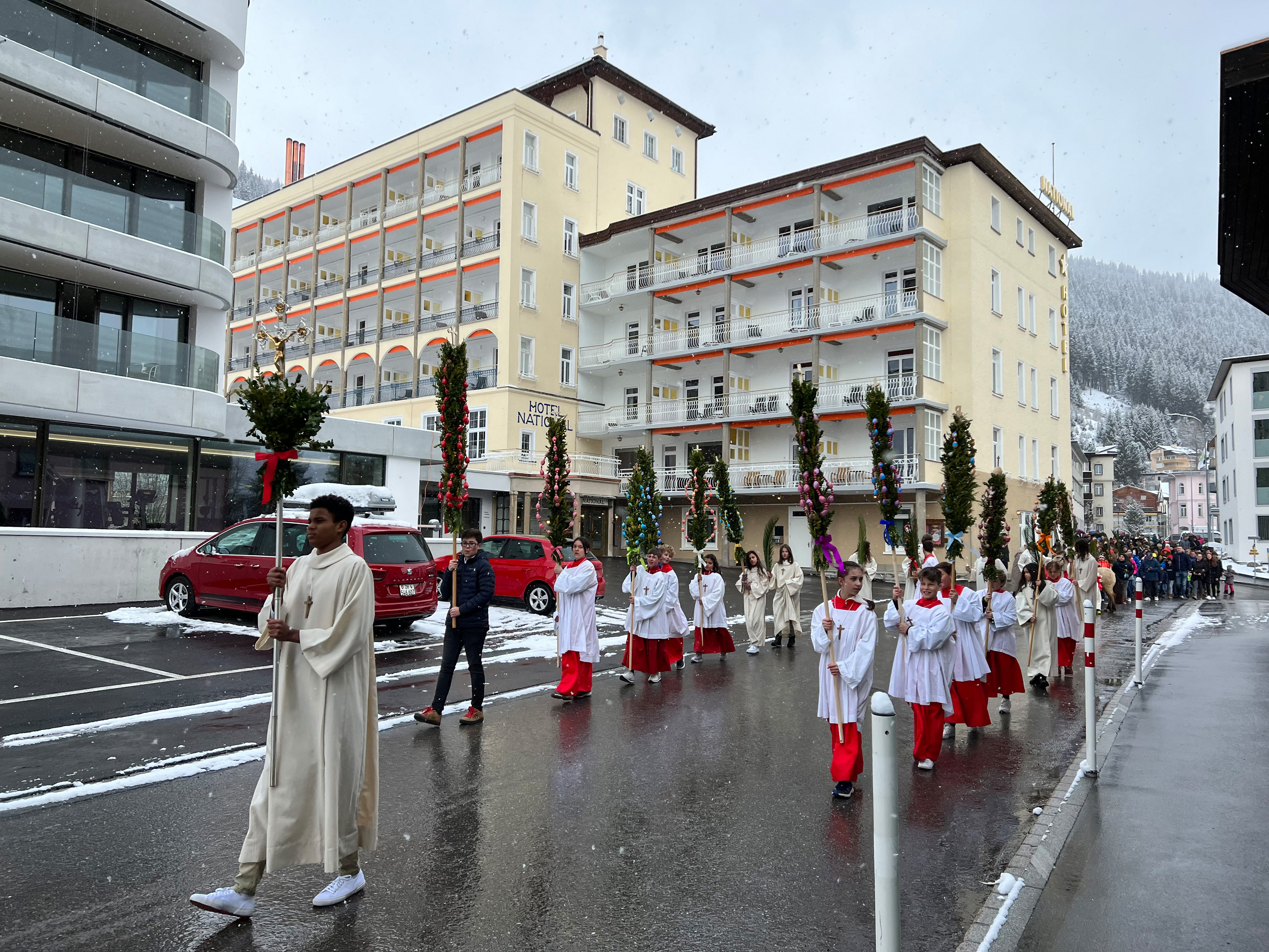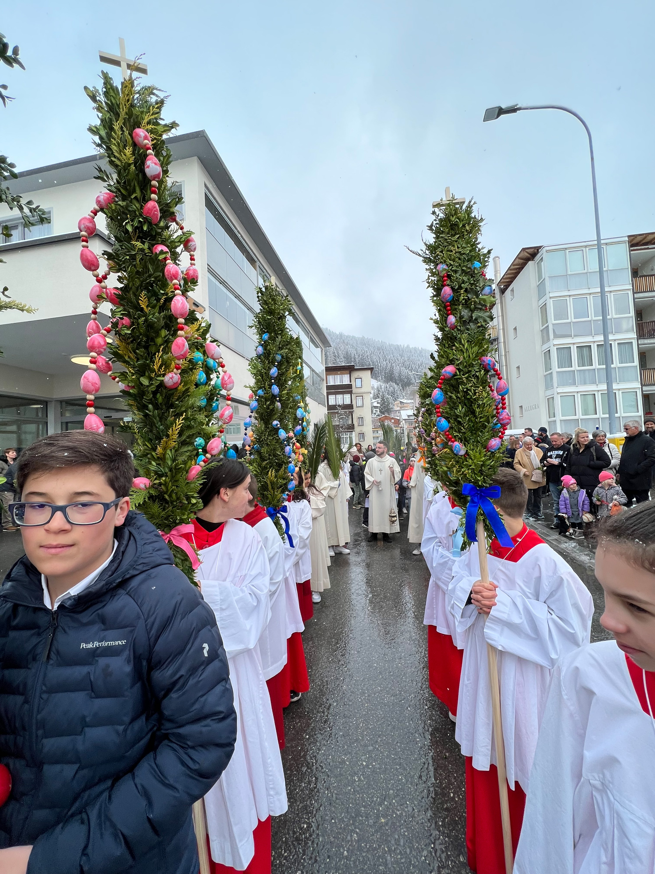 Farbenfrohe Palmgebinde, strahlende Gesichter, volle Kirchen: der Palmsonntag am vergangenen Wochenende lockte ausserordentlich viele Familien, Kinder, Jugendliche und Gläubige der katholischen Pfarrei Davos zur den drei Palmprozessionen und Festmessen. Alt und Jung konnten sich einstimmen auf das zentrale Geheimnis des christlichen Glaubens, das in der Heilige Woche mit dem Gründonnerstagabend, Karfreitag und Ostern (die Feier von Leiden, Tod und Auferstehung Jesu Christi) den Höhepunkt im Kirchenjahr erreicht.