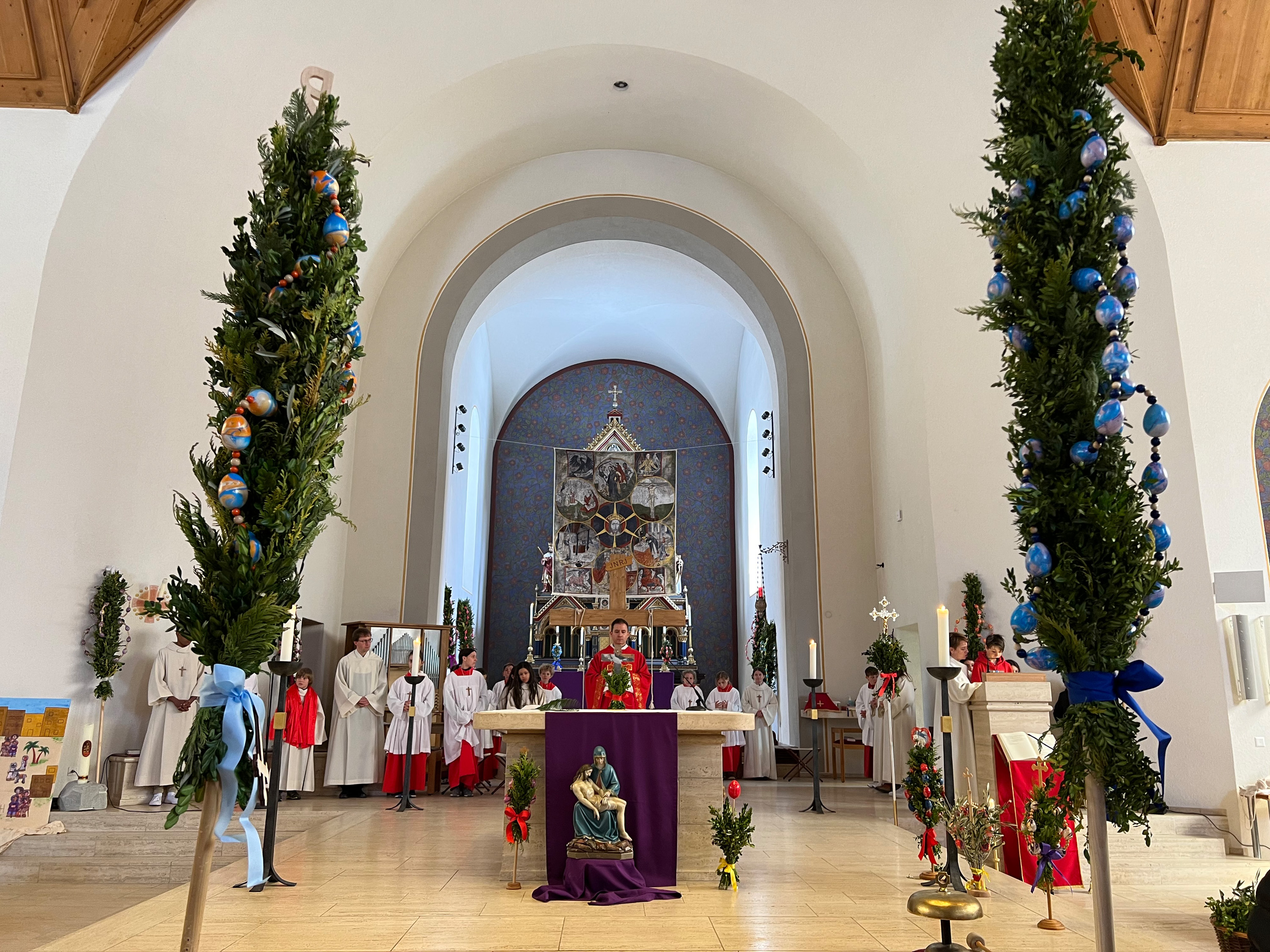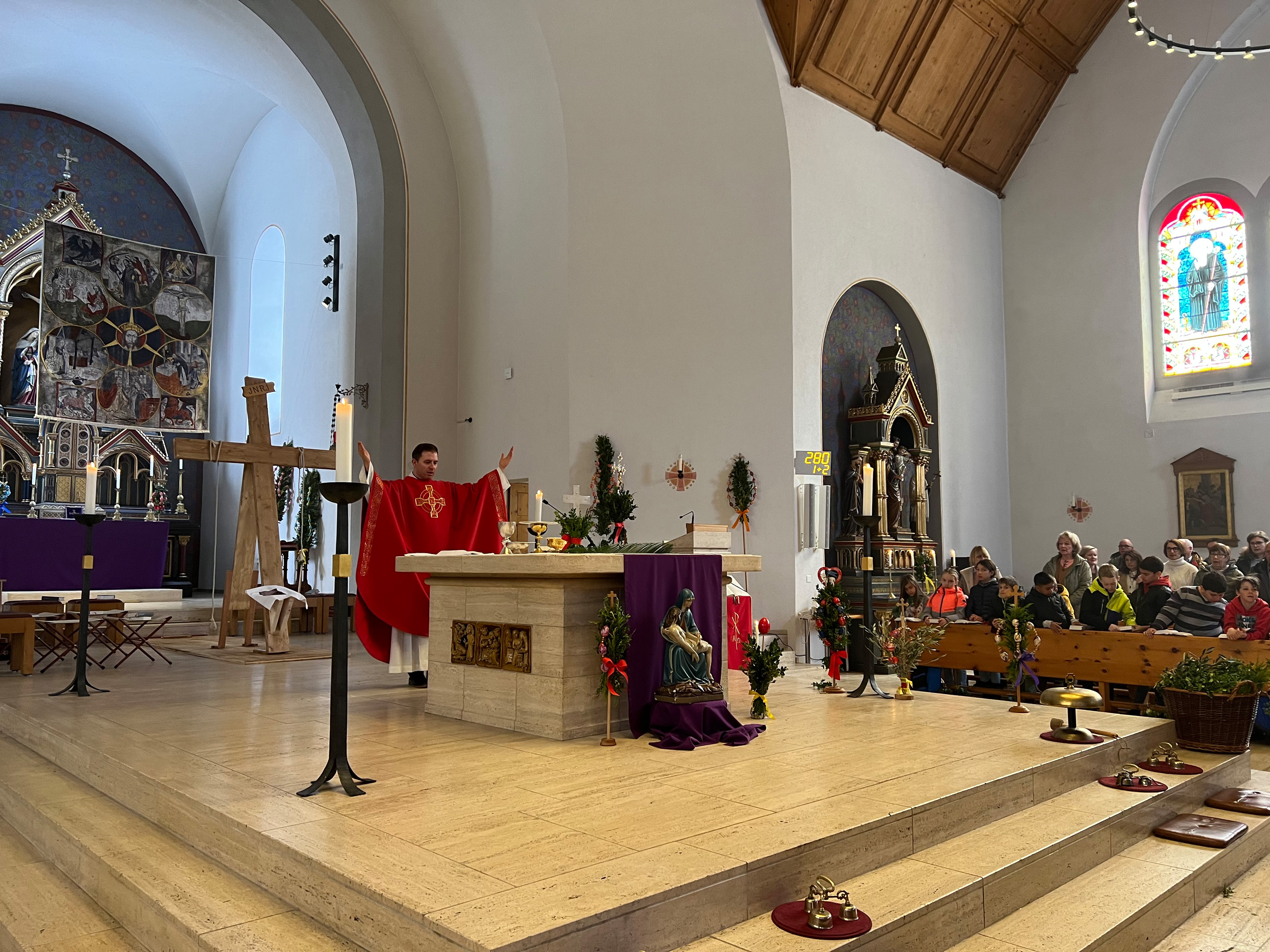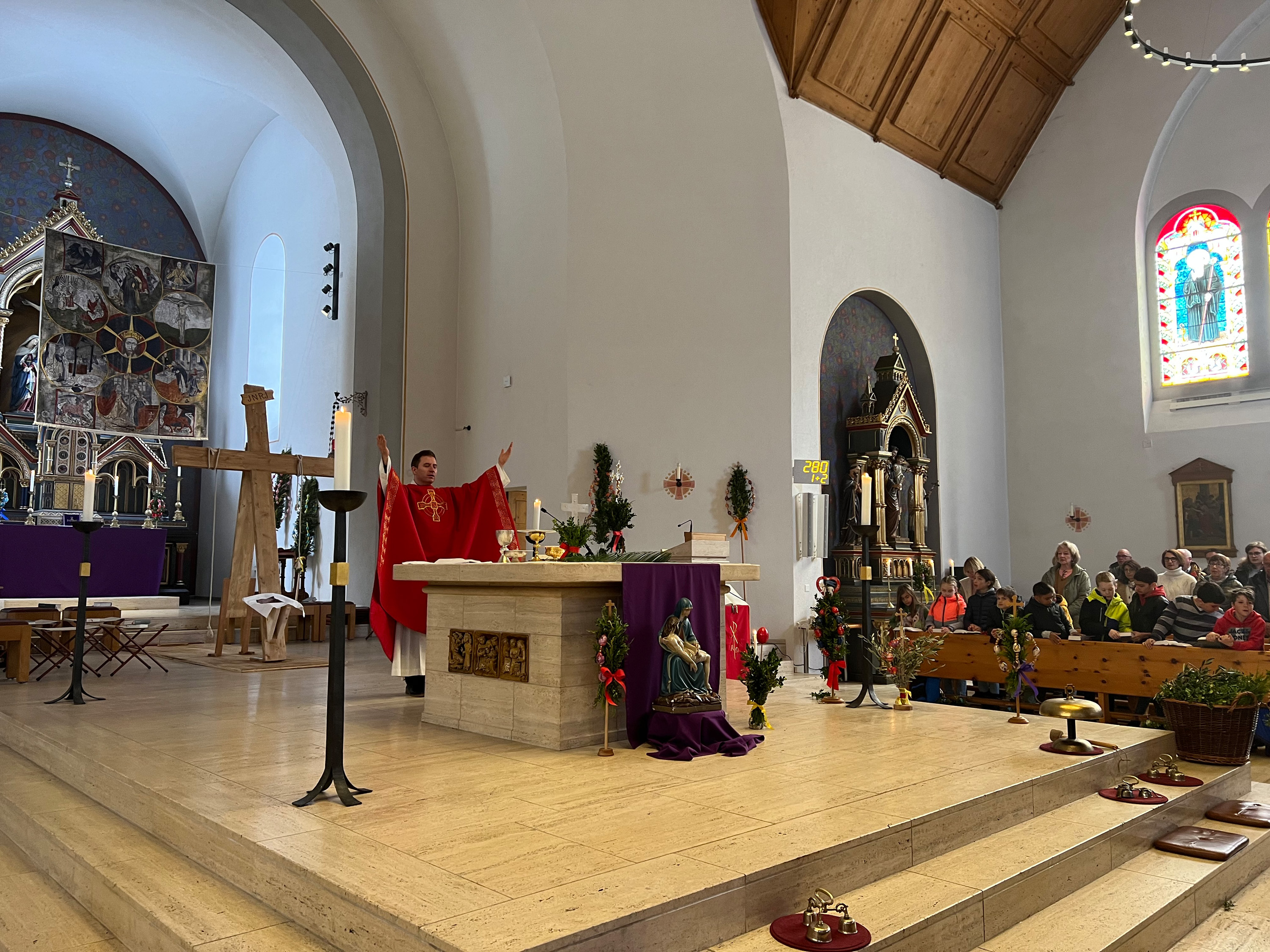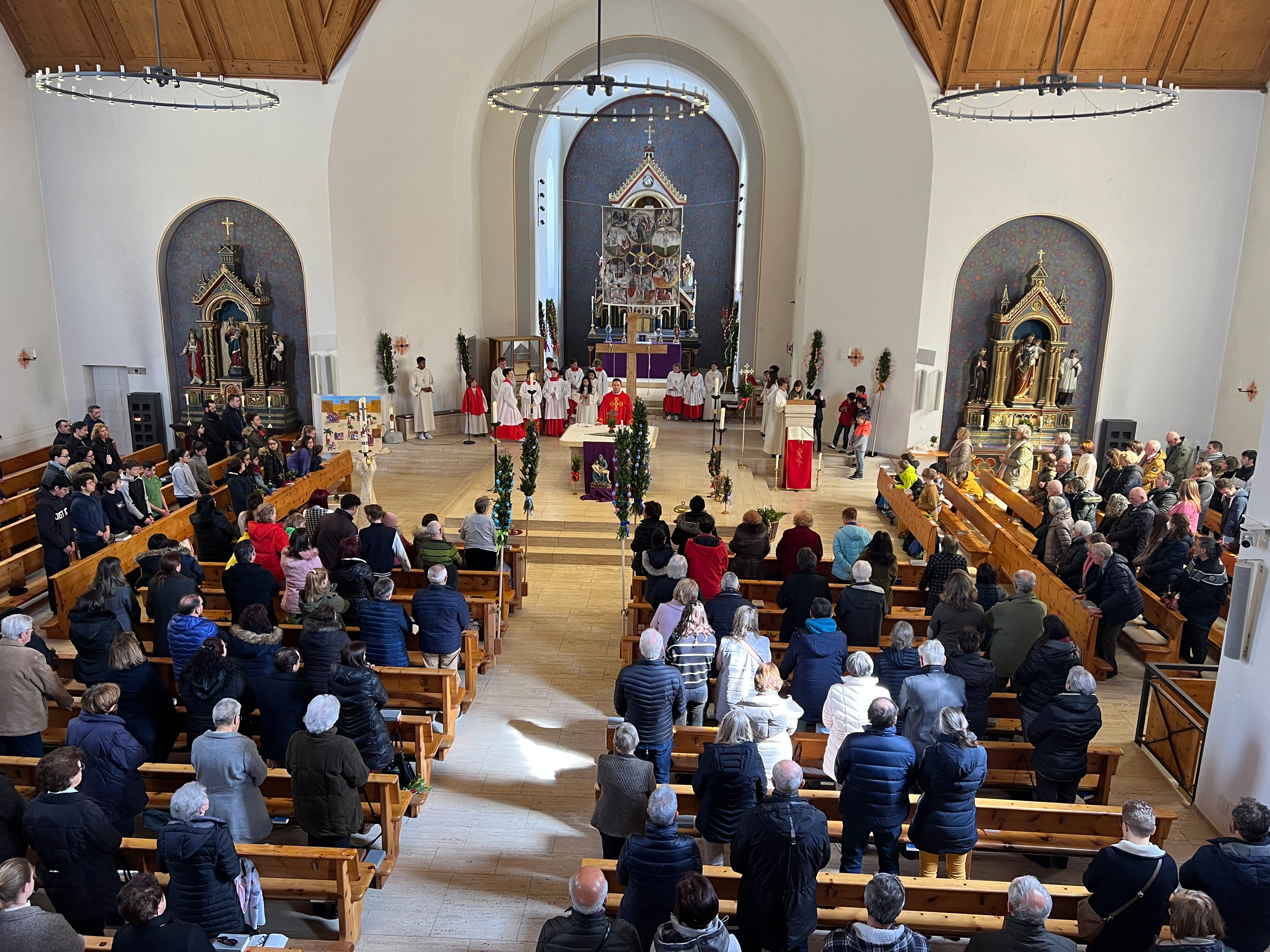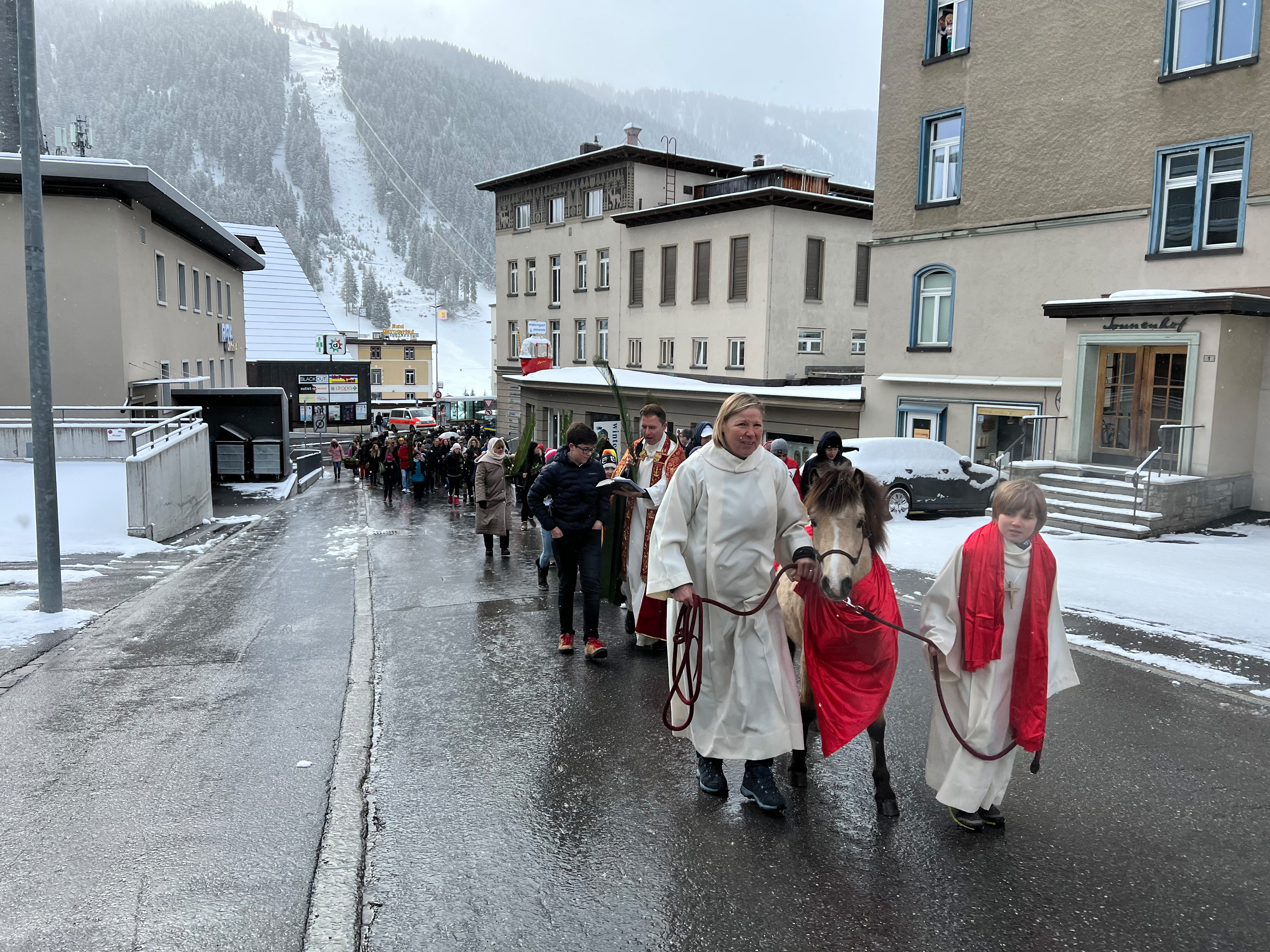 Farbenfrohe Palmgebinde, strahlende Gesichter, volle Kirchen: der Palmsonntag am vergangenen Wochenende lockte ausserordentlich viele Familien, Kinder, Jugendliche und Gläubige der katholischen Pfarrei Davos zur den drei Palmprozessionen und Festmessen. Alt und Jung konnten sich einstimmen auf das zentrale Geheimnis des christlichen Glaubens, das in der Heilige Woche mit dem Gründonnerstagabend, Karfreitag und Ostern (die Feier von Leiden, Tod und Auferstehung Jesu Christi) den Höhepunkt im Kirchenjahr erreicht.