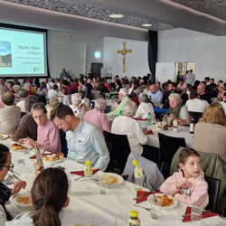 Da Leib und Seele zusammengehören, strömten nach der beglückenden Eucharistiefeier Alt und Jung ins Pfarreizentrum, um kulinarische Spezialitäten aus aller Welt geniessen zu können, die liebevoll von den Köchinnen und Köchen des OK-Teams vorbereitet wurden.